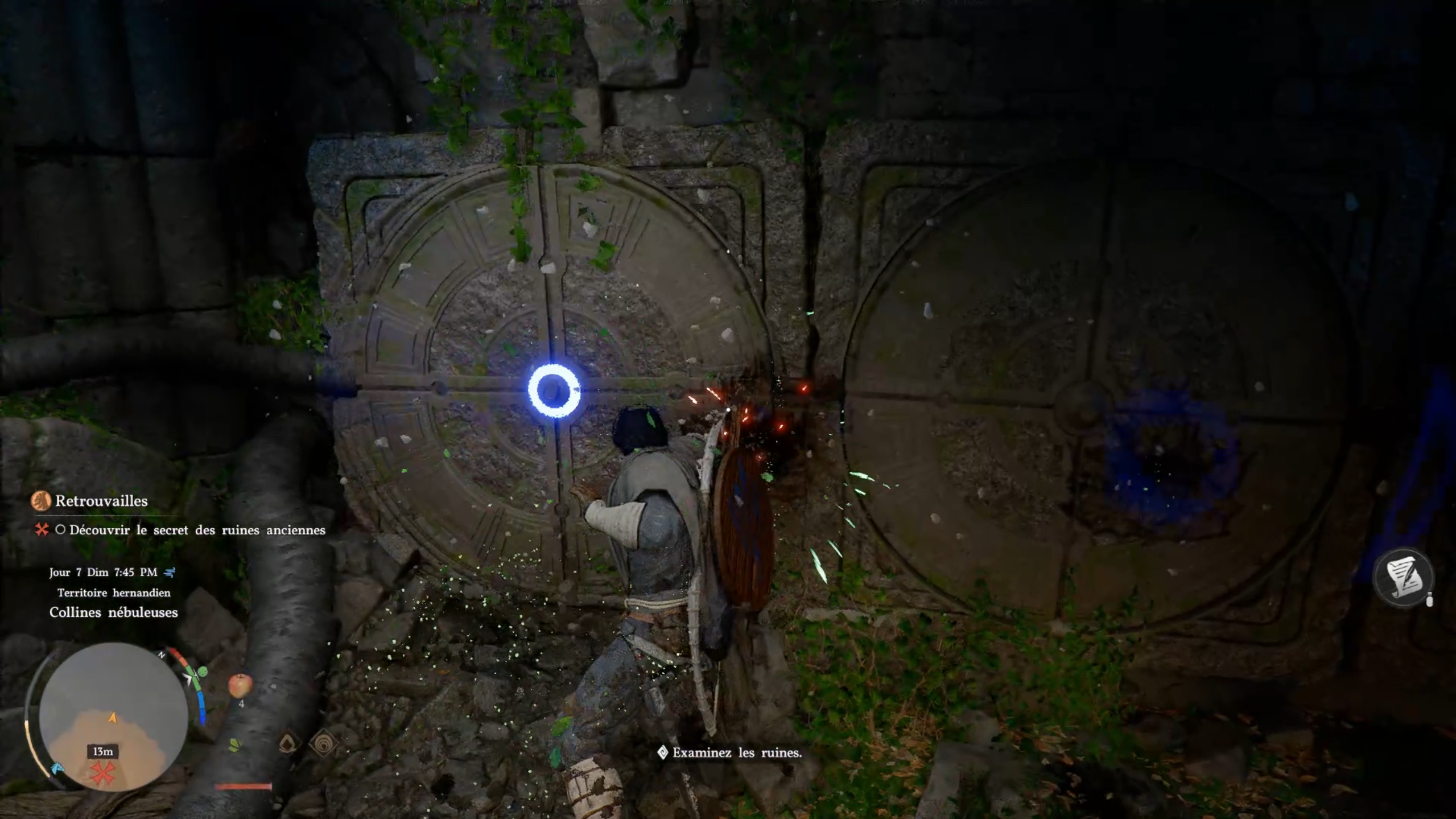 Sortez ensuite de la tour pour déclencher une cinématique. Suivez le chat vers le nord jusqu’à atteindre un mur. Placez-vous face au mur pour utiliser votre pouvoir et libérer un passage. Entrez à l’intérieur et utilisez le coup de paume sur le premier interrupteur, puis sur le troisième : vous avez alimenté la zone. Ressortez à l’extérieur pour récupérer un artefact et déclencher une cinématique avec l’enfant afin de terminer la quête.