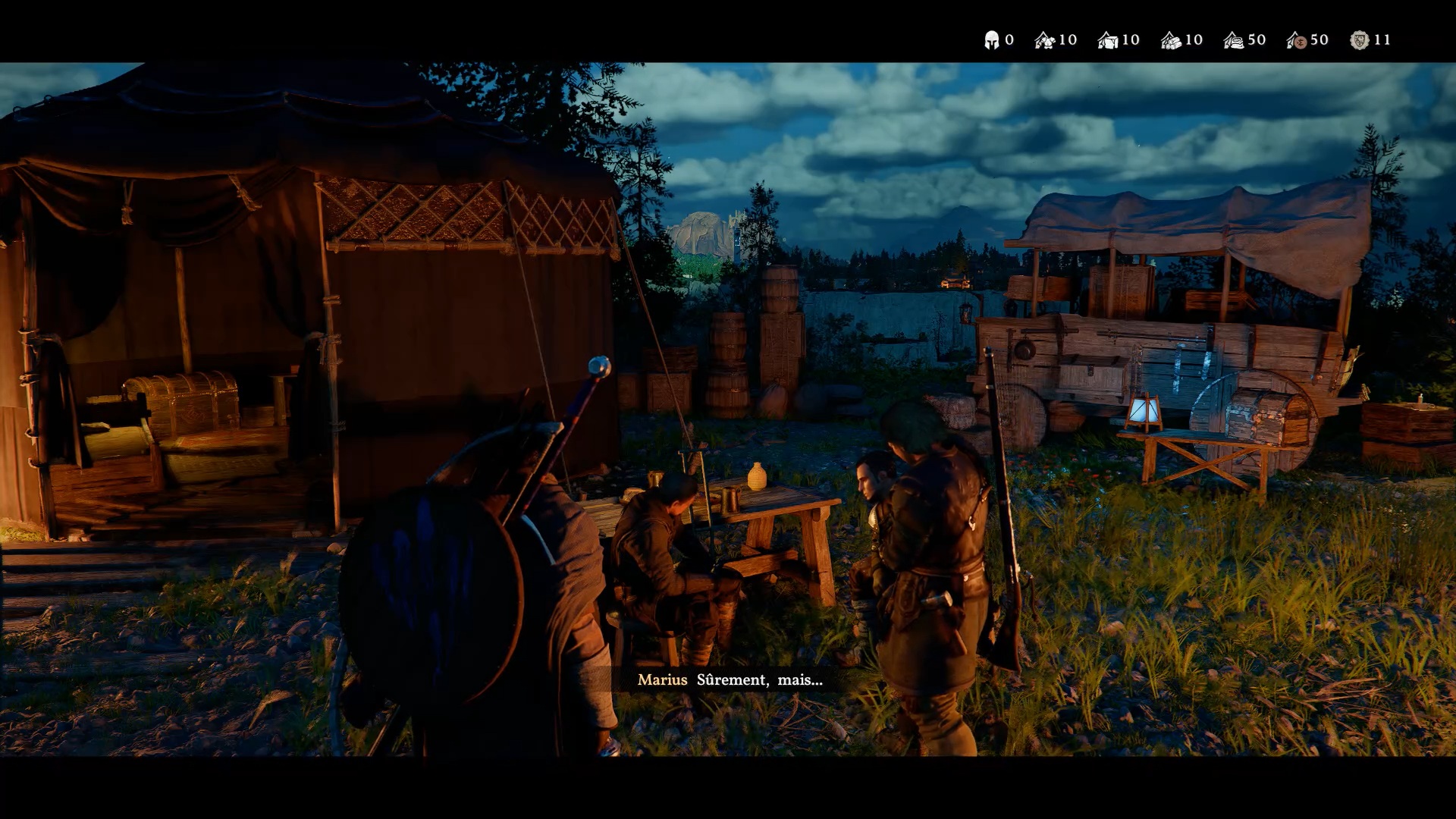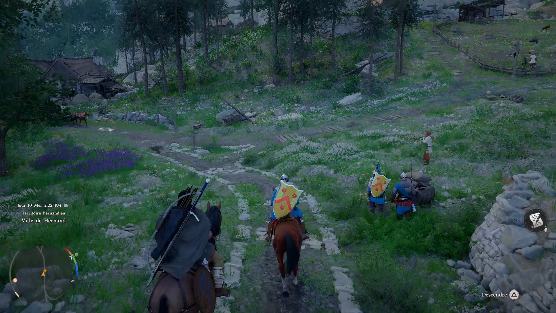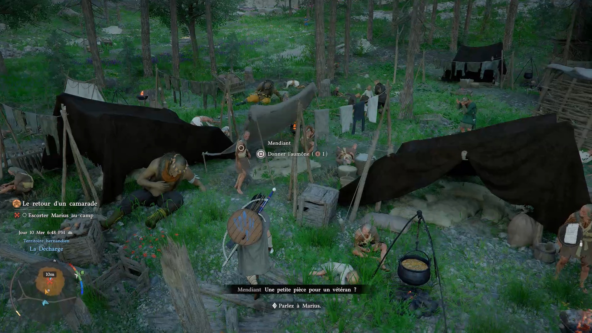 Suivez le point indiqué sur votre carte pour rejoindre Marius. Utilisez votre monture pour l’accompagner jusqu’au campement et terminer la quête.