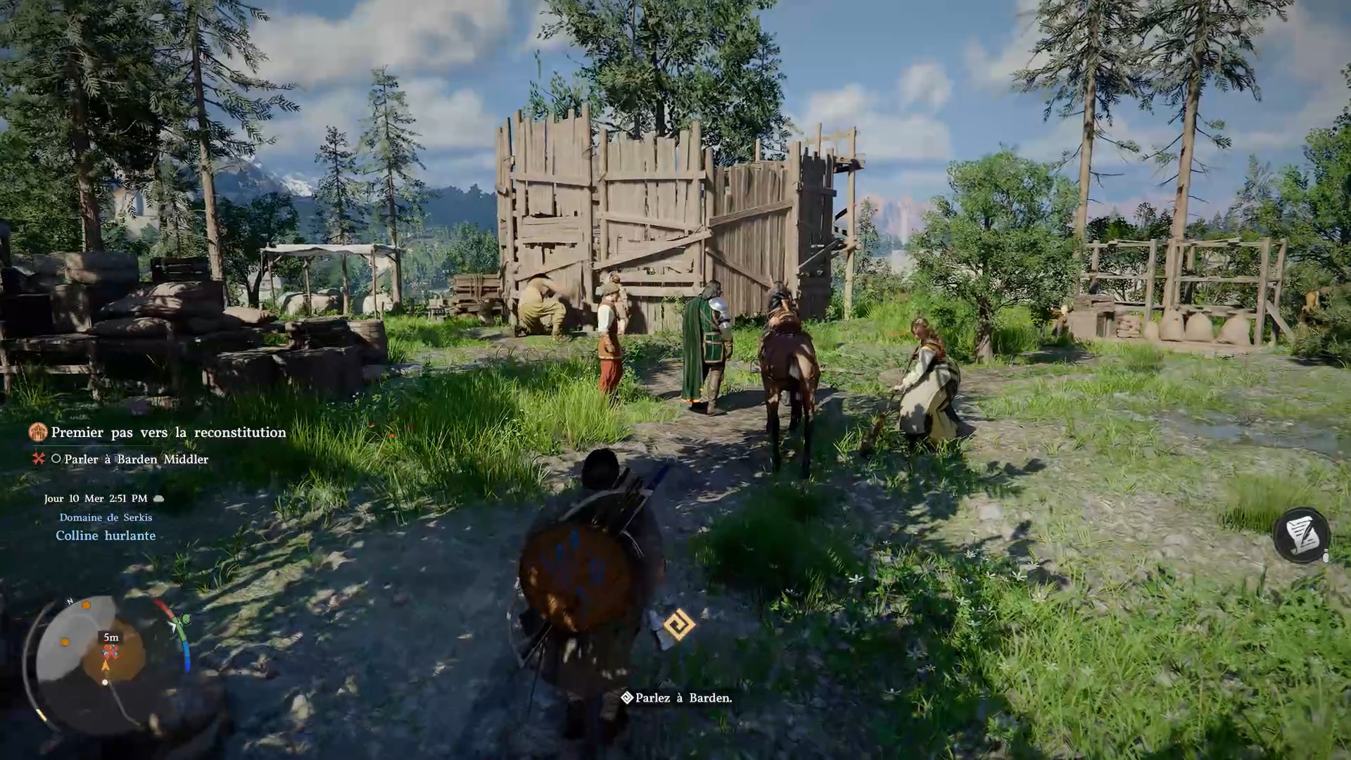 Suivez le marqueur sur votre carte pour rencontrer le marquis au château. Après la cinématique, suivez le soldat afin de rejoindre les terres qui vous ont été offertes. Discutez avec Barden pour terminer la quête.