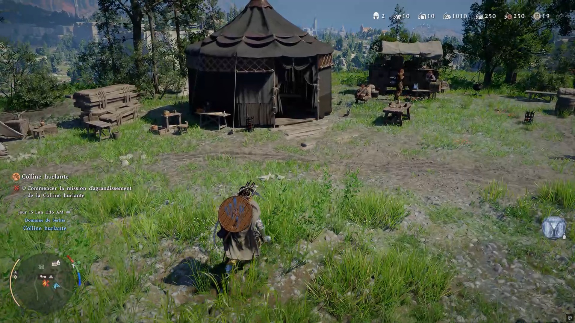 Retournez ensuite au campement pour procéder à son agrandissement. Rendez-vous sur place puis examinez la zone via la carte. Sélectionnez la mission d’agrandissement et affectez deux Crinières grises à la tâche pour l’étendre. Patientez jusqu’à la fin de la construction afin d’obtenir une nouvelle quête.