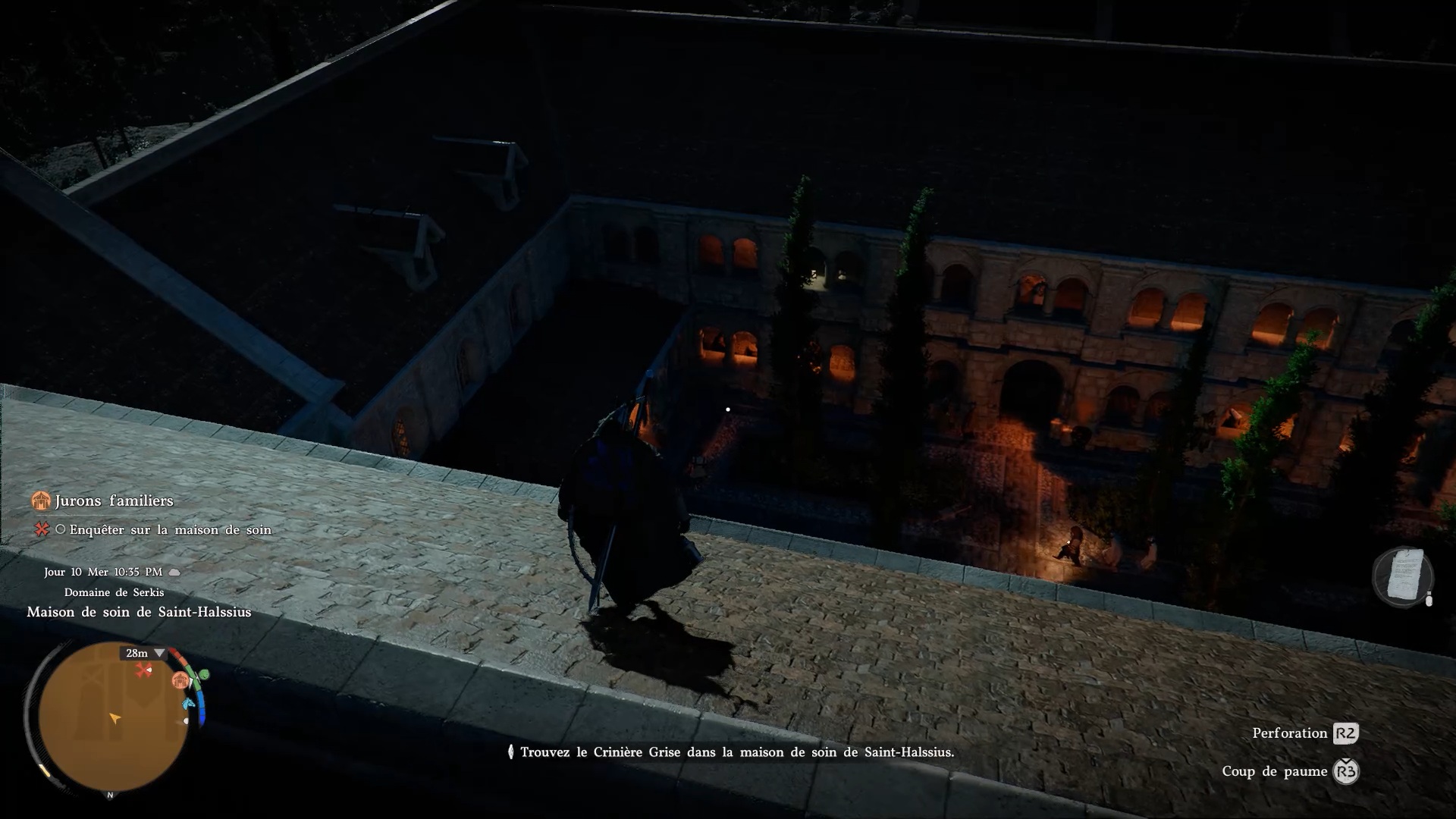 Infiltrez-vous en passant par la fenêtre du balcon de l’étage supérieur pour retrouver Marius. Suivez-le afin d’atteindre une charrette et fuir la maison de soin.