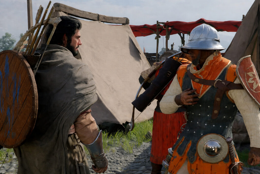 Après avoir brandit les étendards, rejoignez la position des soldats indiquée sur votre carte pour leur porter assistance. Sur place, vous trouverez un soldat à terre : récupérez son corps et ramenez-le au campement indiqué.