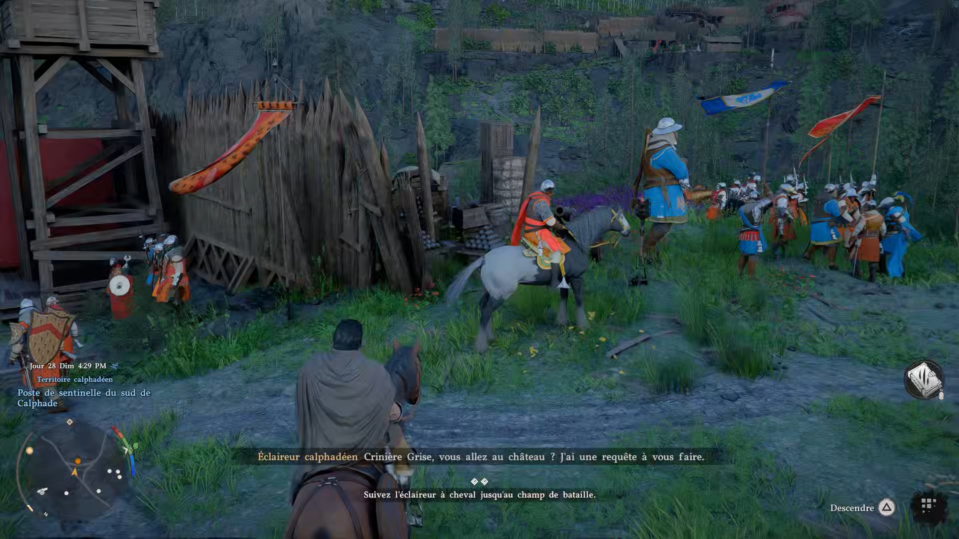 Rejoignez les troupes, puis suivez l’éclaireur. Brandissez l’étendard sur le socle à proximité pour terminer la quête.