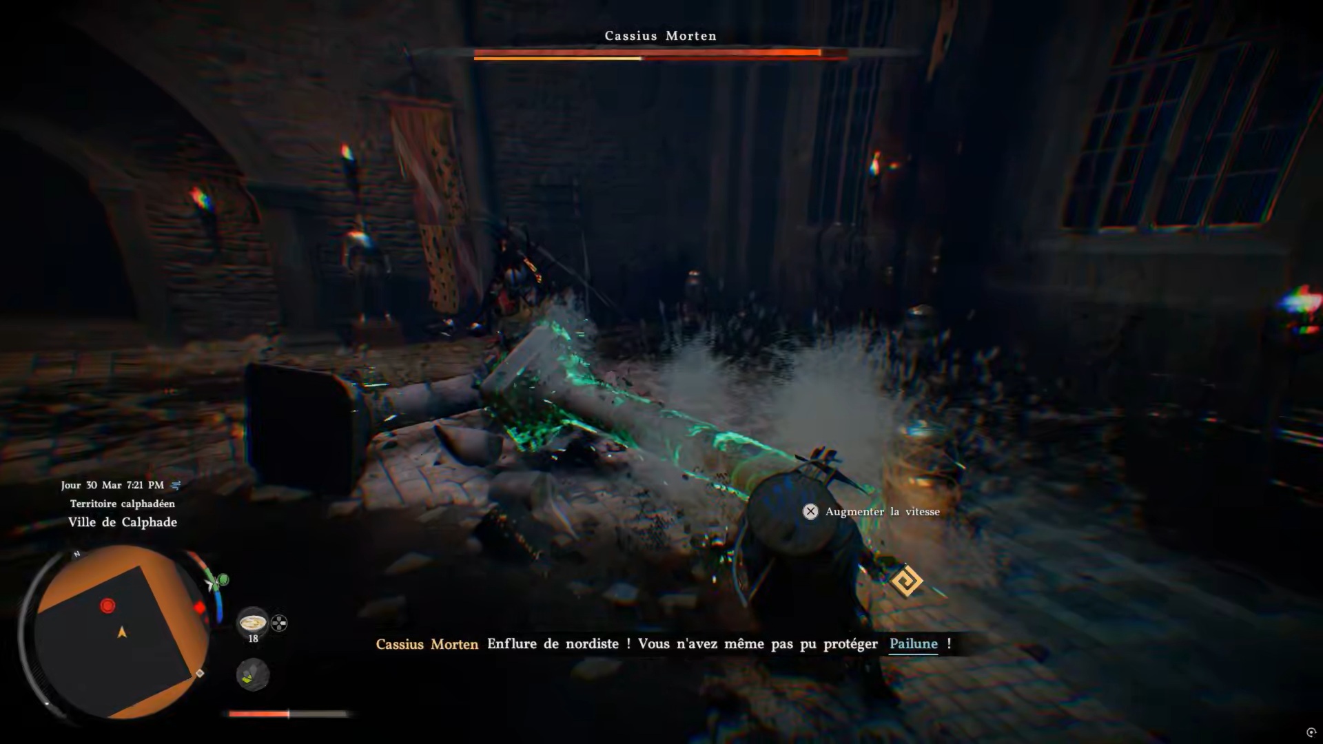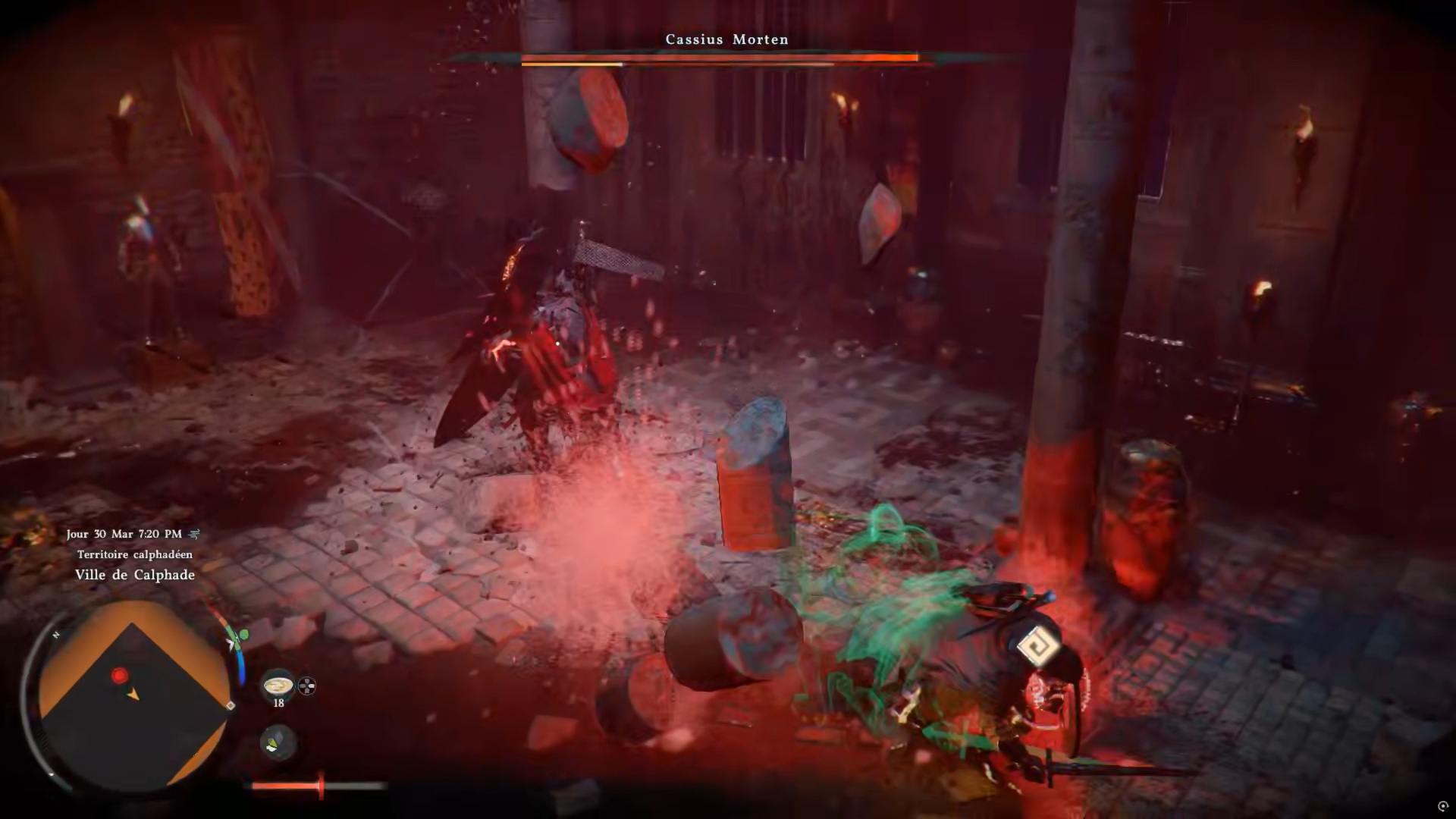 Foncez vers la position indiquée pour déclencher un combat contre Cassius Morten. Normalement, vous n’avez pas besoin de ravitaillement supplémentaire. Contentez-vous d’esquiver ses attaques imparables, puis frappez-le avec des attaques lourdes. Attirez-le vers les piliers pour les renverser, puis utilisez vos pouvoirs pour les récupérer et le frapper avec. Après une seule phase, le combat se termine.