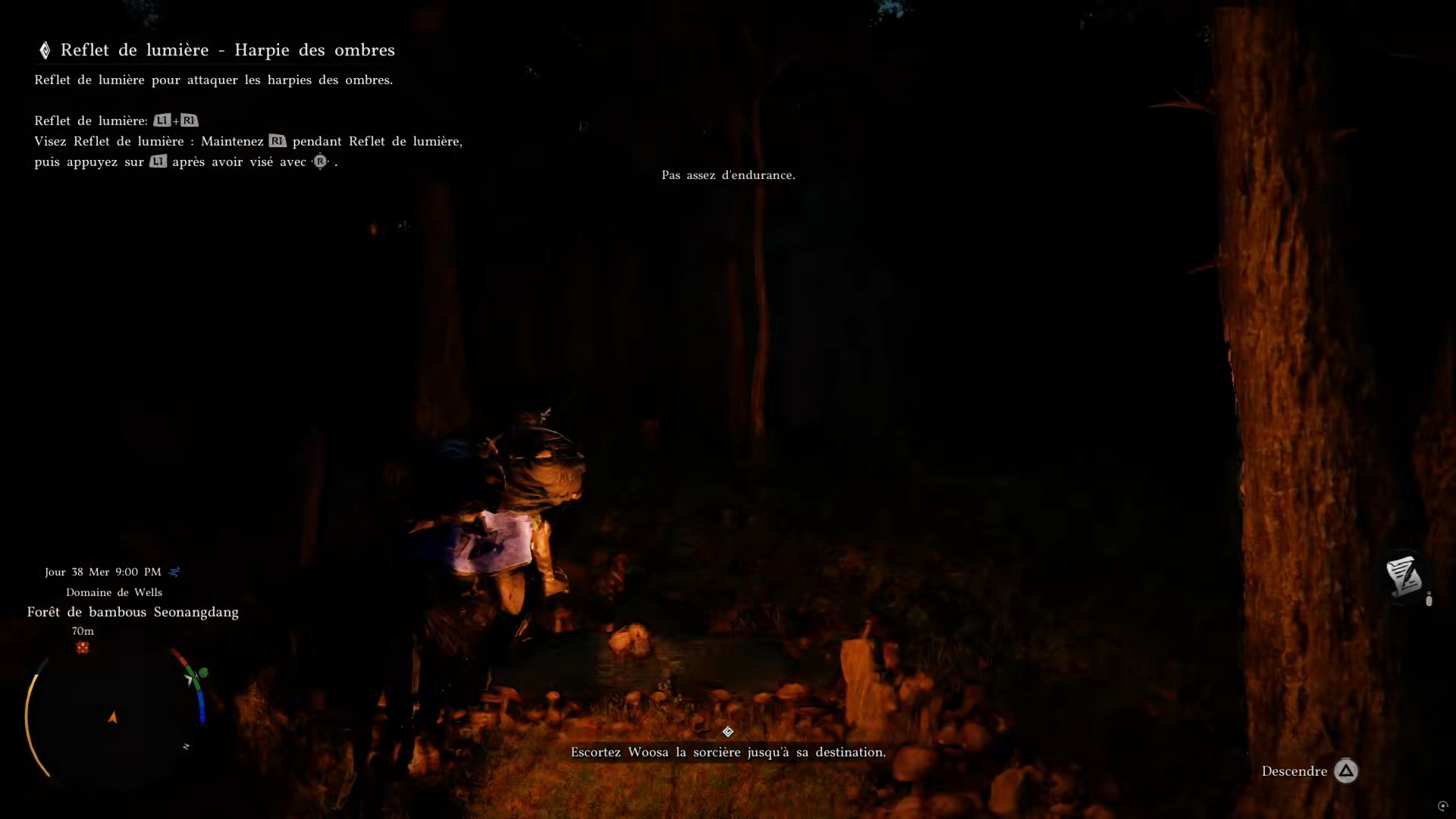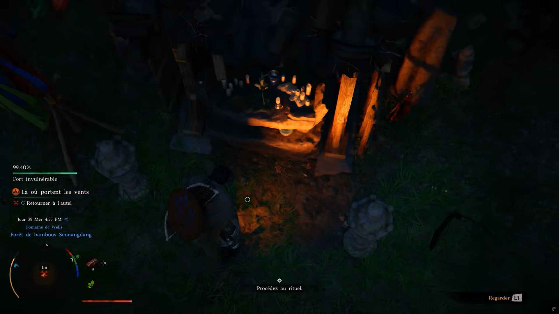 Retournez à l’autel indiqué sur votre carte pour déposer l’encensoir et obtenir la position de la sorcière dans une forteresse. Rendez-vous à la forteresse puis foncez vers la position indiquée pour déclencher un combat de boss contre Grégor. Le combat est relativement simple : utilisez uniquement les esquives pour éviter ses attaques, puis placez des attaques lourdes à chaque ouverture afin de le vaincre. Utilisez le cheval pour partir avec la sorcière de Woosa.