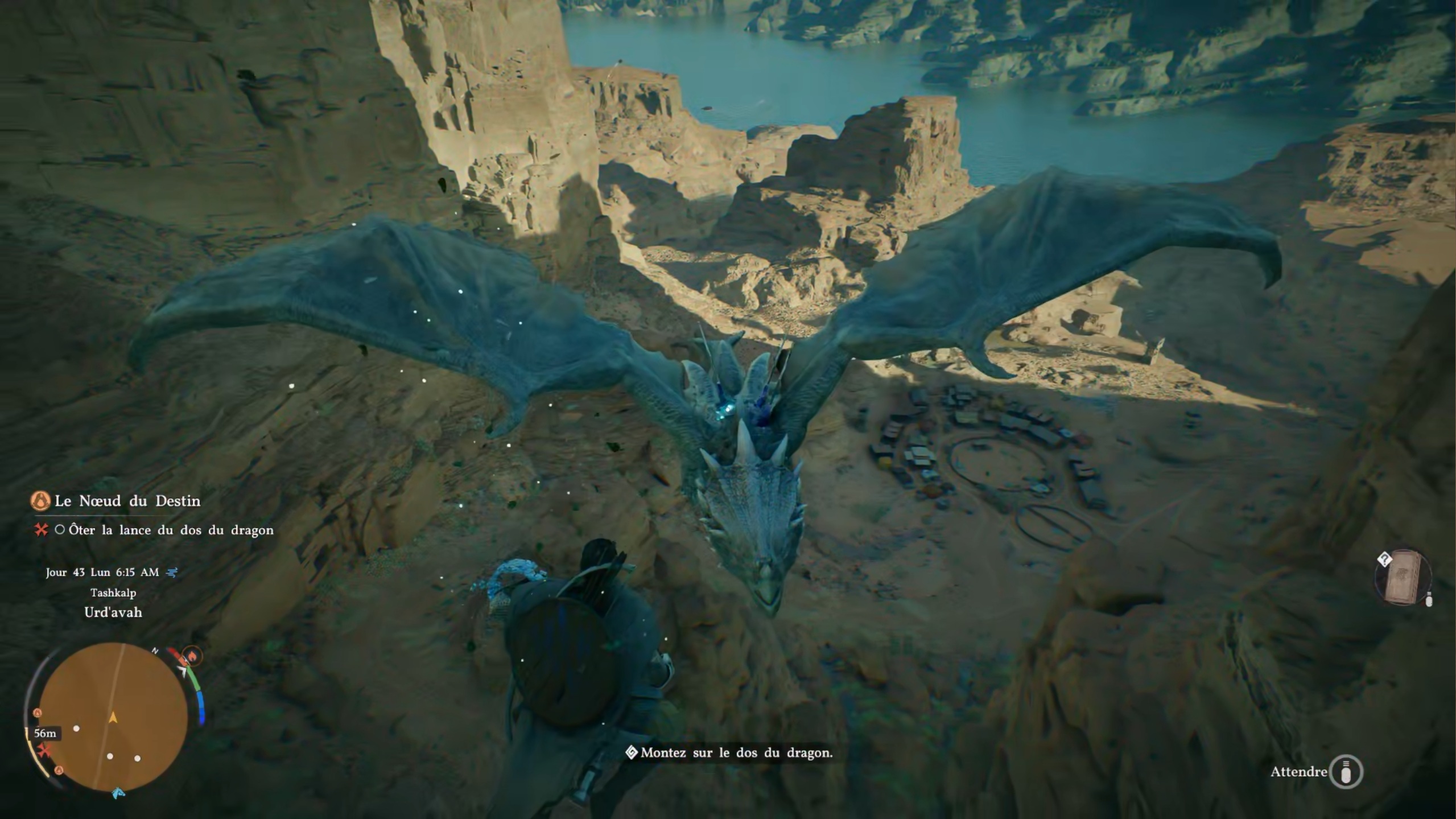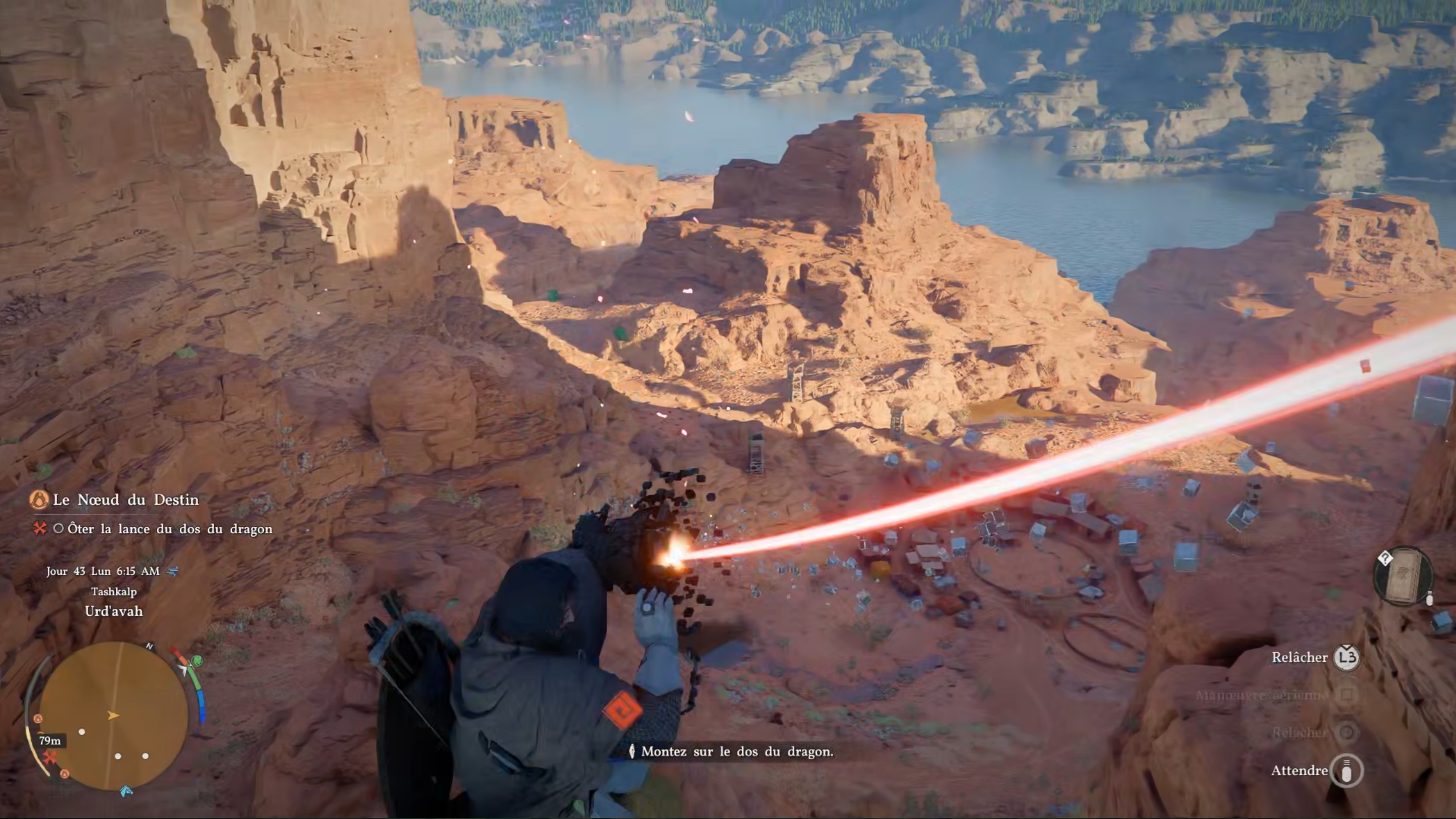Dans la quête « Cicatrice de lance », suivez le marqueur sur votre carte pour trouver un dragon. Rejoignez ensuite le pont à proximité, puis tentez de vous jeter sur le dragon. Pour cela, vous pouvez utiliser la commande de raccourci afin d’attendre le bon moment, puis vous propulser à l’aide de la force axiomatique. Utilisez rapidement la touche liée à la manœuvre aérienne pour monter sur lui. Restez suffisamment accroché afin de pouvoir soigner la bête à l’aide d’un coup de paume. Une fois soigné, la quête est terminée.