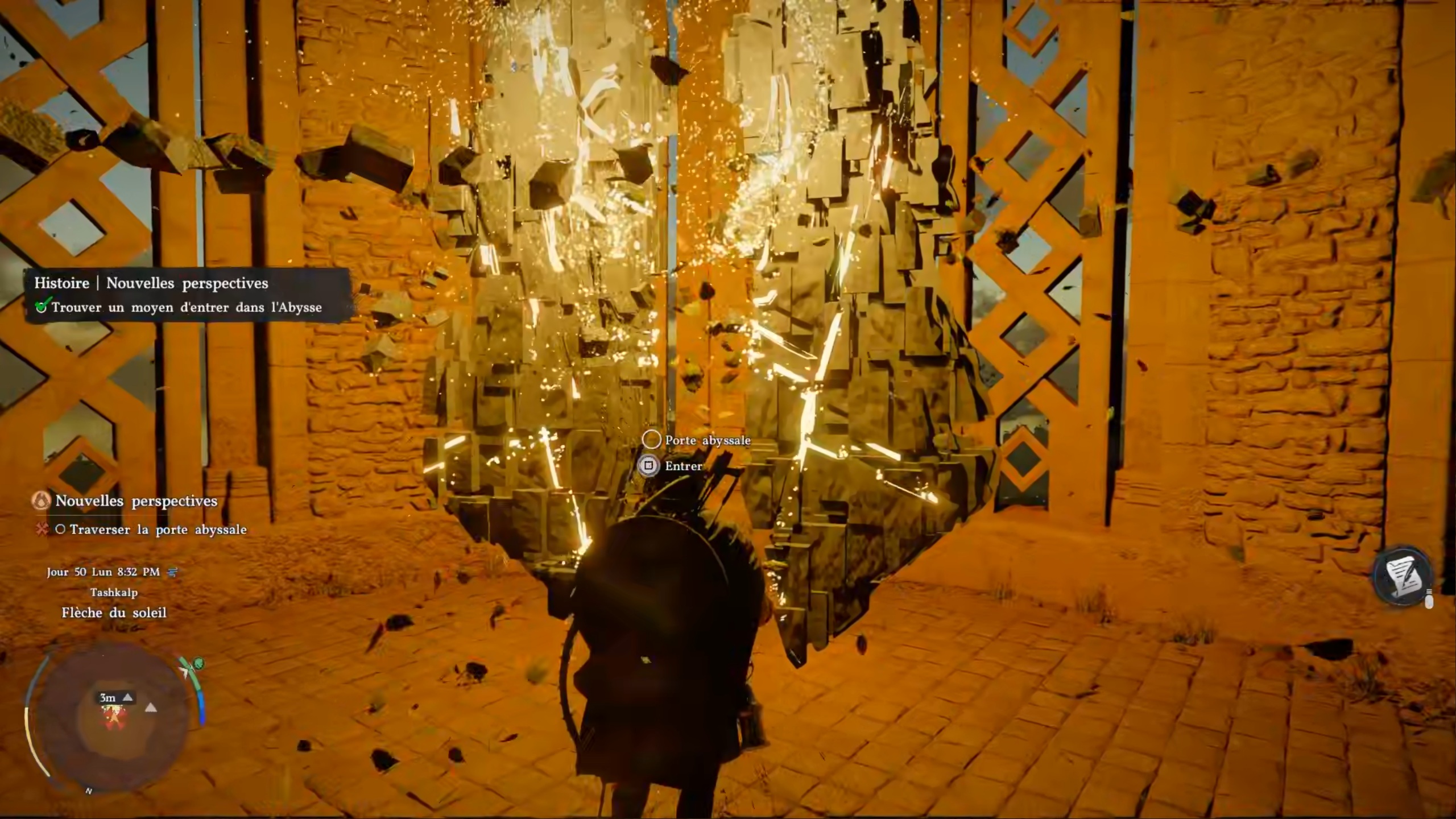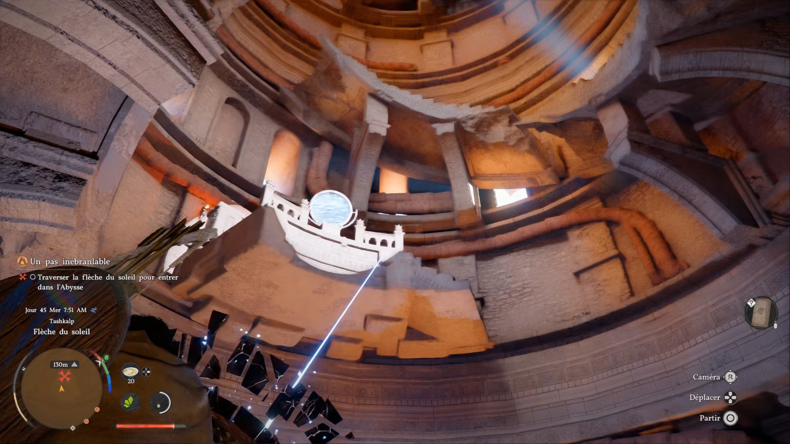 Dans cette nouvelle quête, utilisez la flèche du soleil pour entrer dans l’abysse. Suivez les repères sur votre carte afin d’activer la route céleste menant à un téléporteur. De l’autre côté, utilisez les plateformes volantes pour atteindre l’île voisine. Vous pouvez également utiliser la plateforme centrale pour changer de côté.