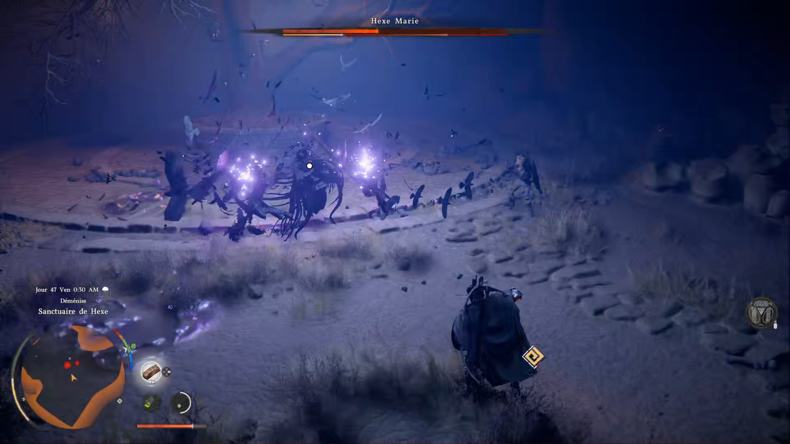 Un combat de boss se déclenche : vous voilà face à la sorcière maléfique. Comme à chaque affrontement, nous vous recommandons de faire le plein de bouillon clair et de comprimés de palme. Une fois prêt, utilisez des attaques lourdes pour réduire son endurance et lui infliger de lourds dégâts. Esquivez ses attaques durant les deux phases afin d’éviter les dommages et venir à bout du combat.