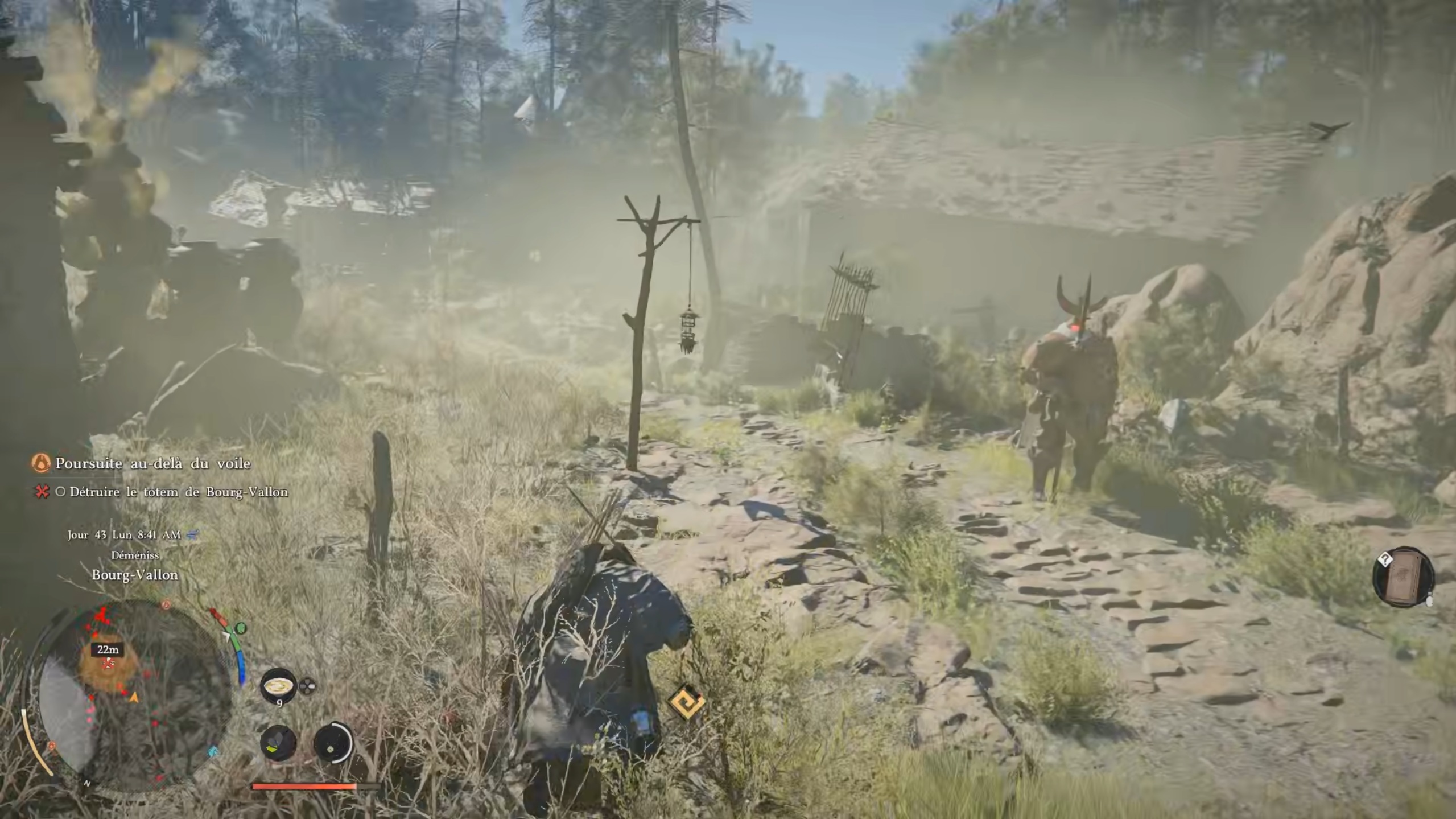 Dans la quête « Poursuite au-delà du voile », suivez le marqueur sur votre carte pour trouver un totem. Utilisez l’attaque circulaire pour le détruire et terminer la quête.