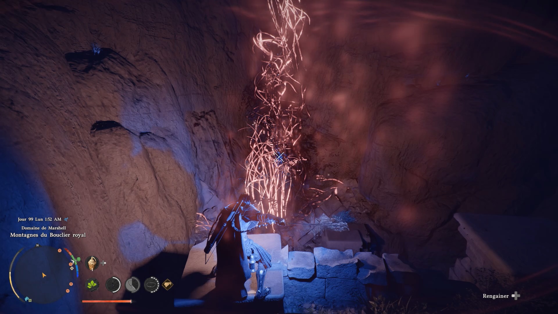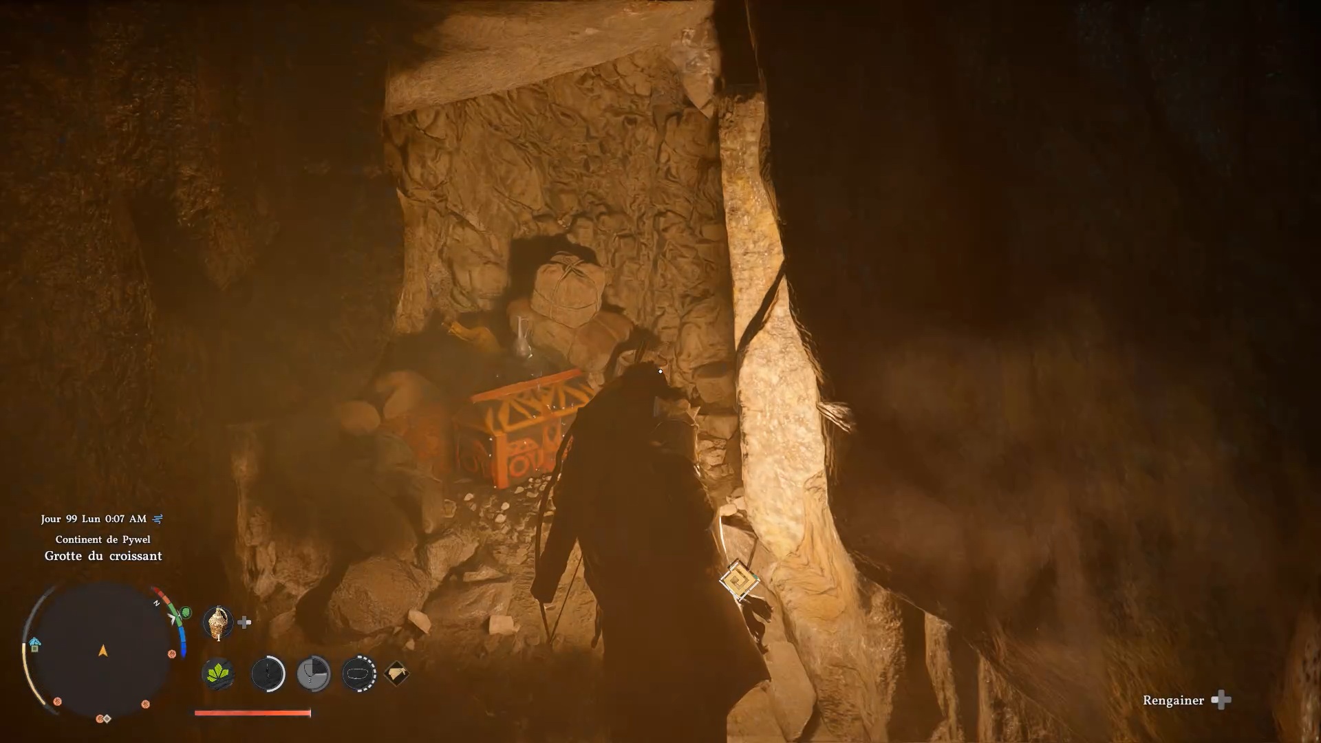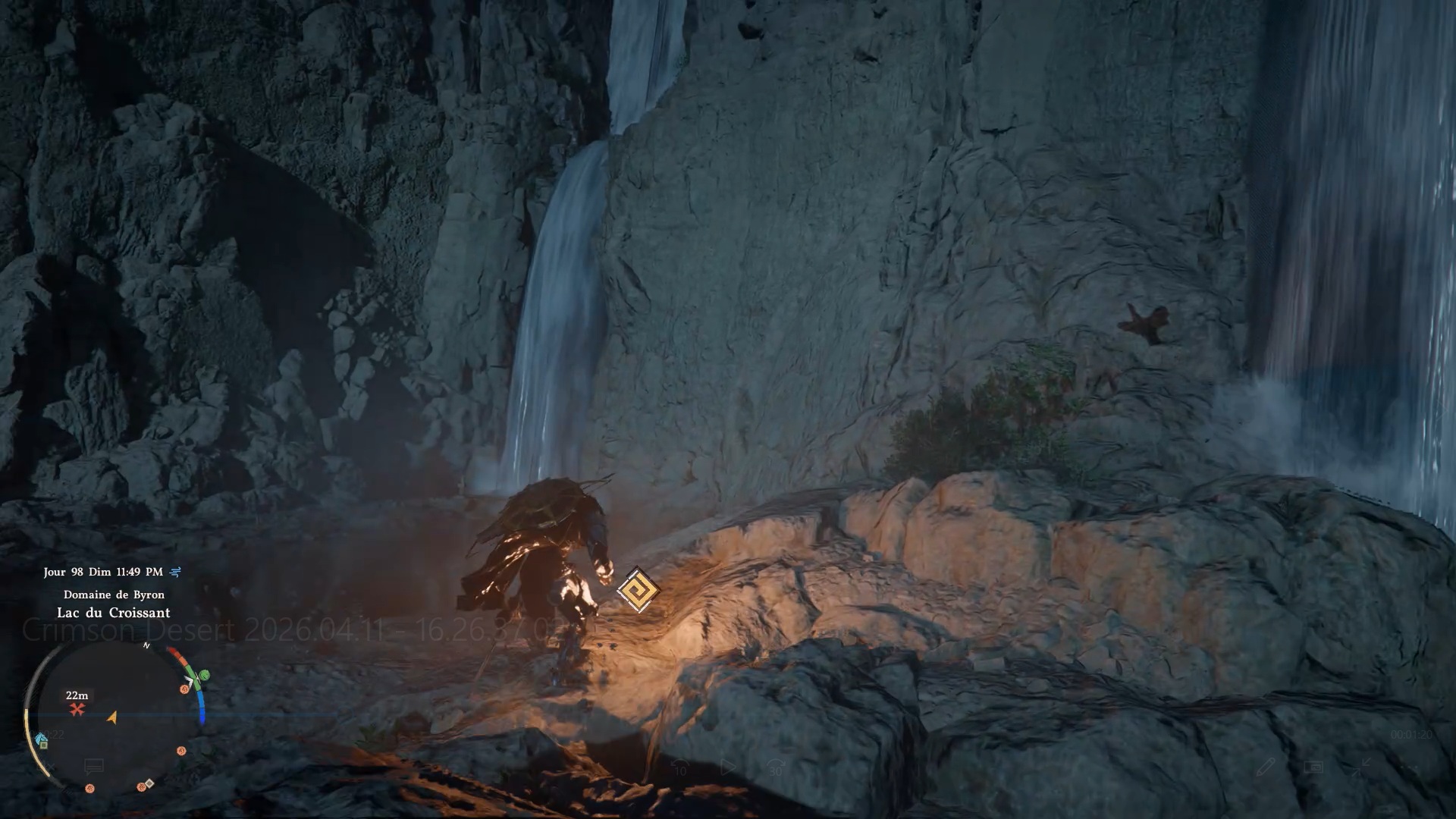 Les bottes en cuir de banquet d’automne se situent derrière une cascade au nord de la région « Demeniss » et de « Kingshield Mountains ». À cet emplacement, vous trouverez plusieurs cascades : dirigez-vous vers celle tout à gauche, reconnaissable à une statuette composée de trois pierres. Une fois devant, approchez-vous de l’eau et utilisez la compétence « Perforation » pour traverser le mur d’eau. Vous accéderez alors à une grotte cachée, où se trouve le coffre contenant ces bottes.