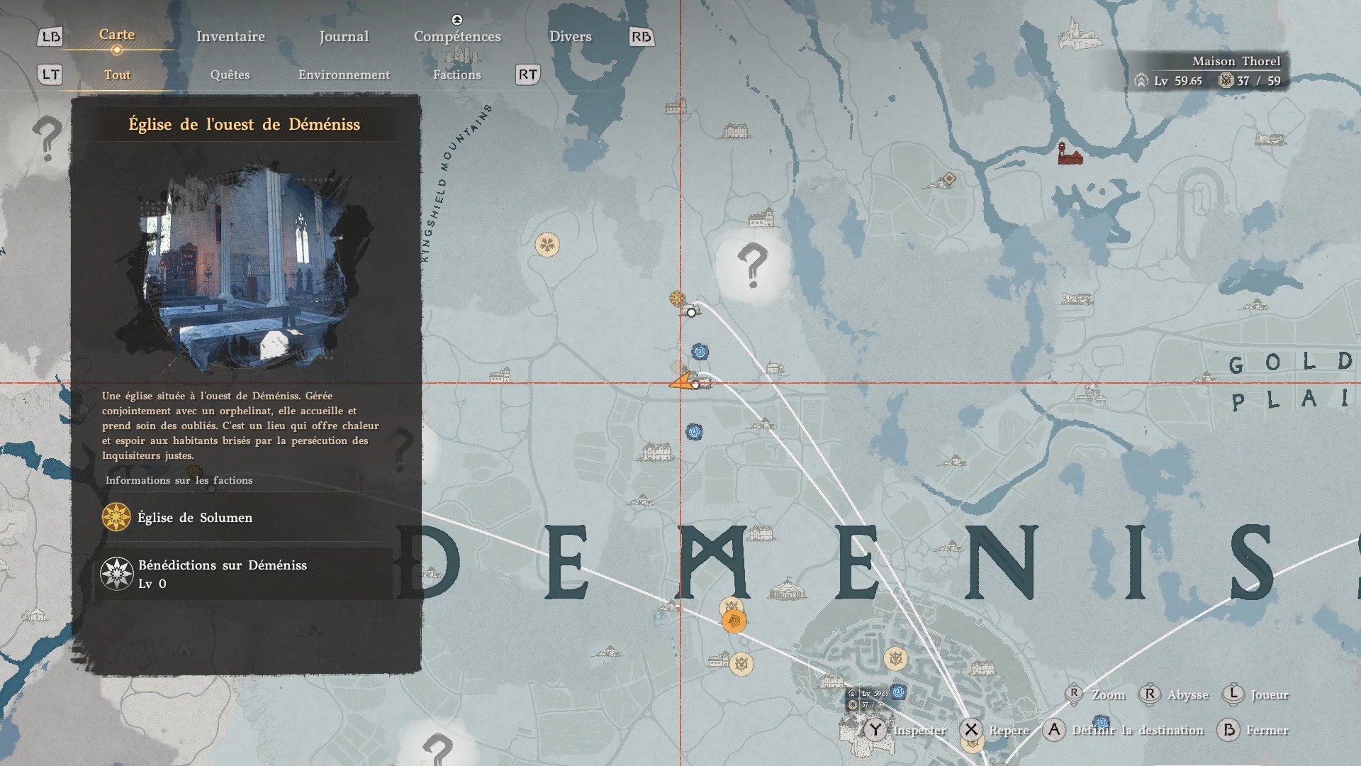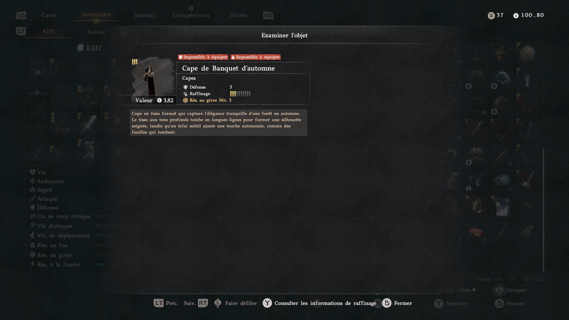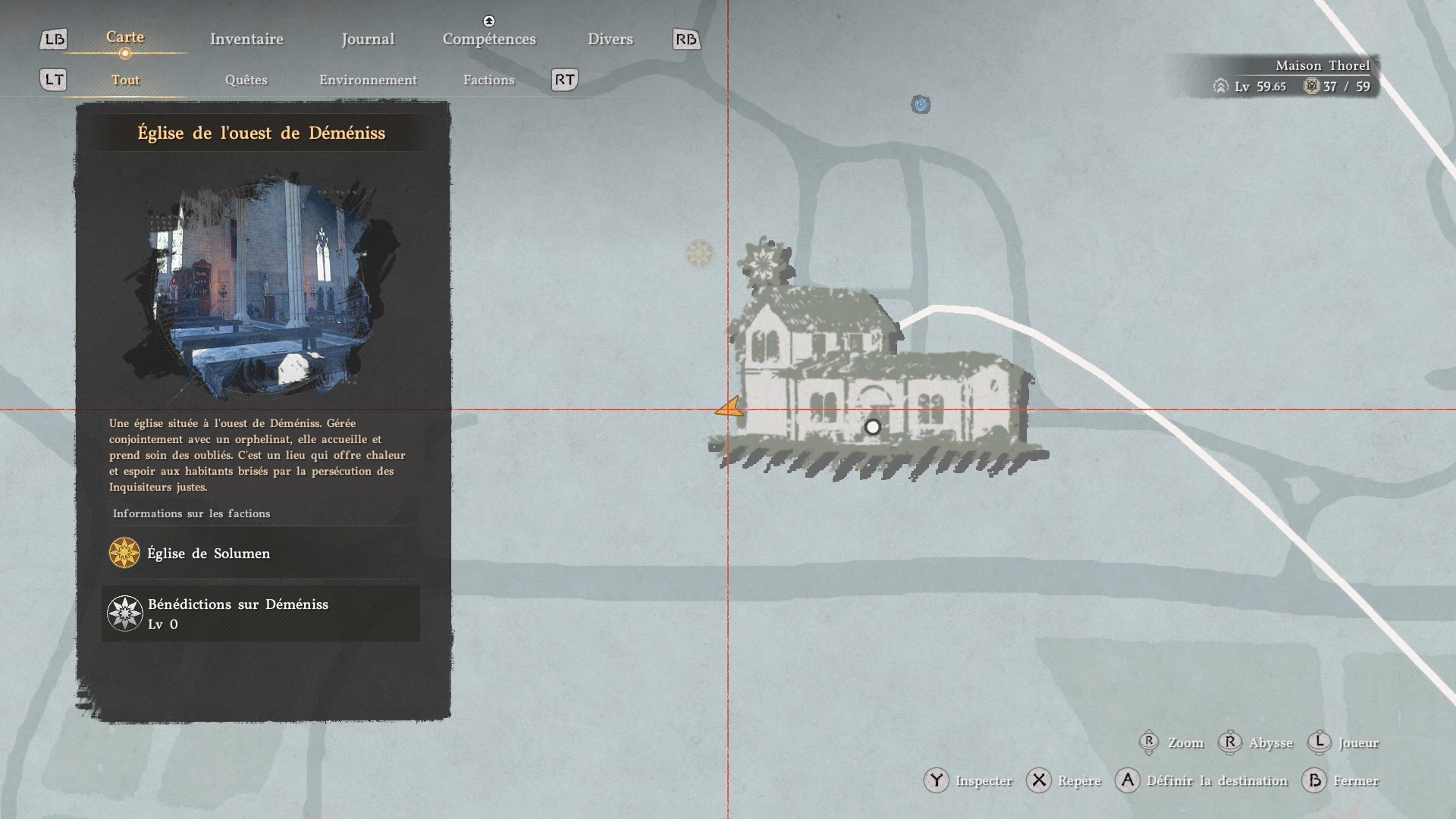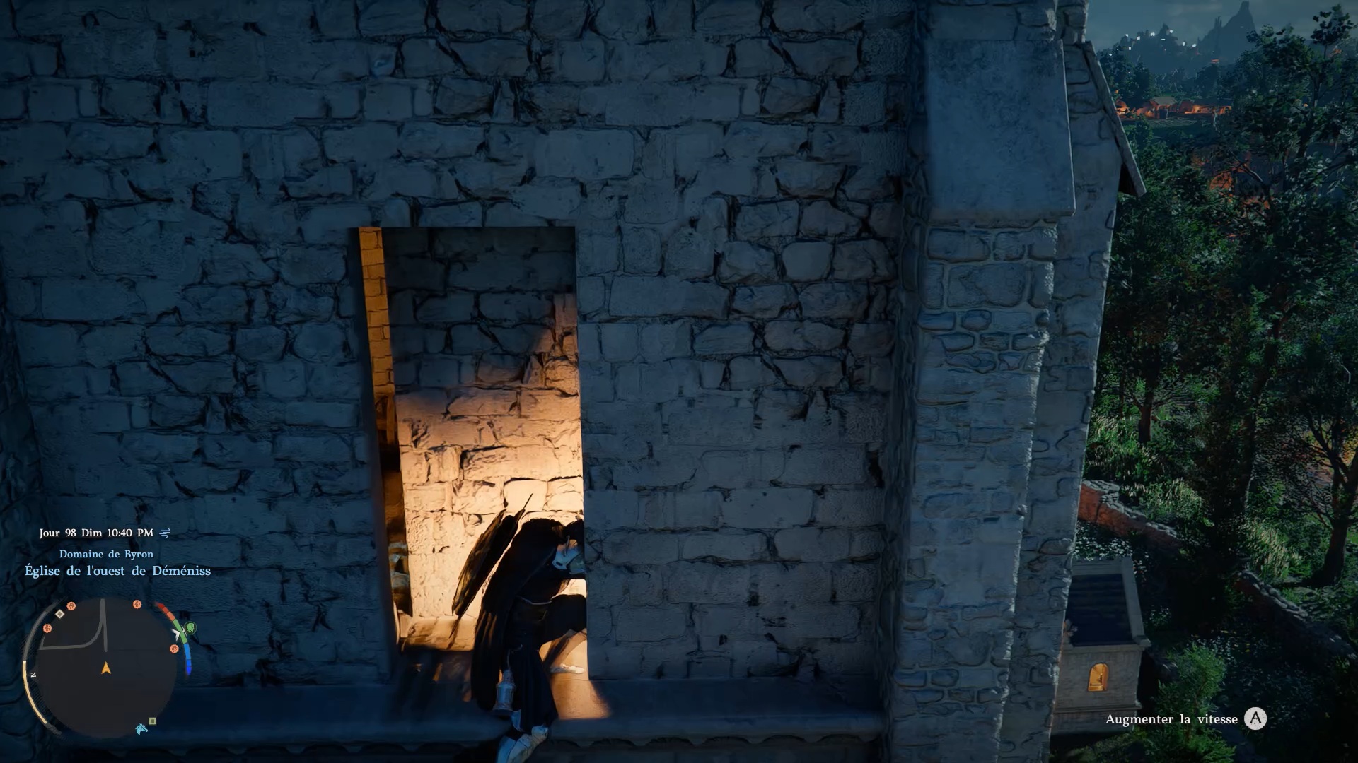 La cape de banquet d’automne se situe dans l’église de l’ouest de « Déméniss », au sud-ouest de la ville. Grimpez sur le toit de l’église, puis dirigez-vous au pied de la tour, au niveau du toit. Au centre de la façade de la tour, appuyez contre le mur pour faire apparaître un passage secret.