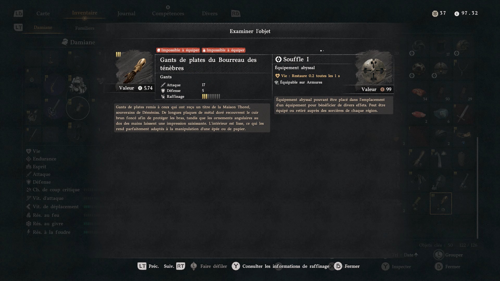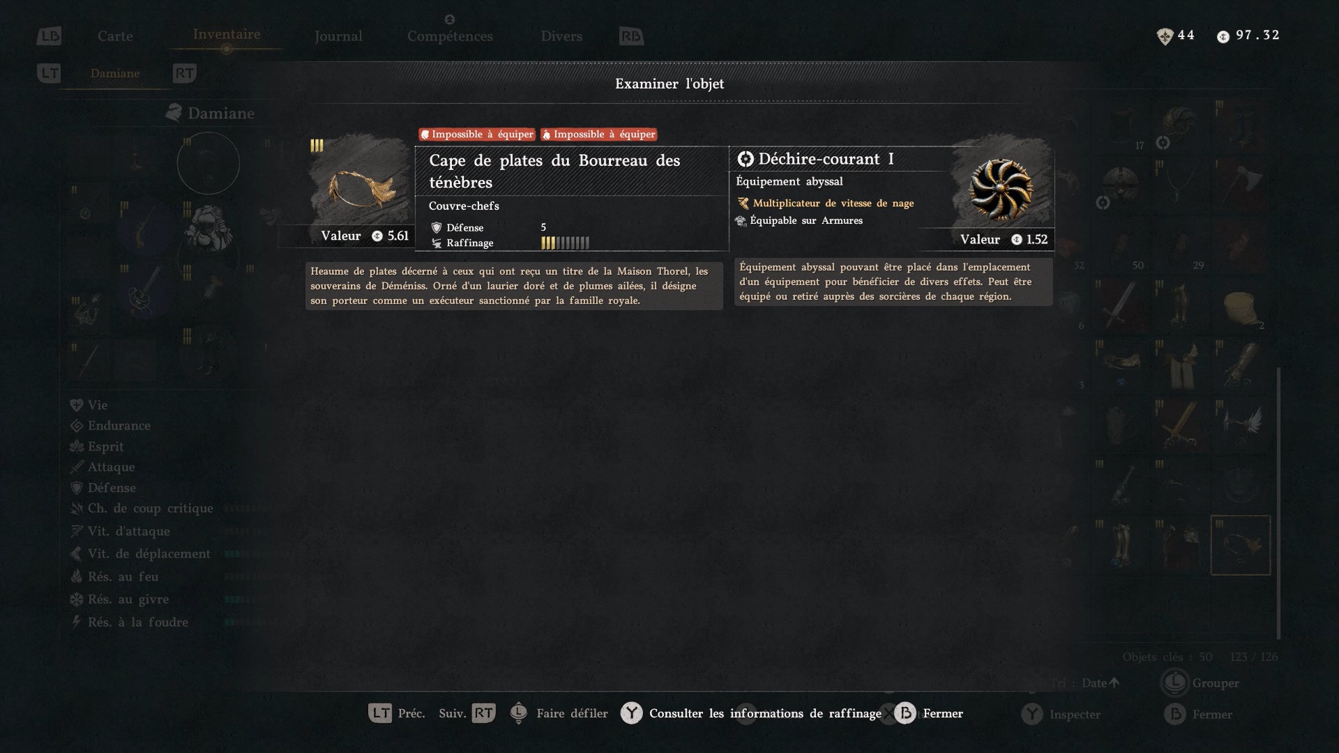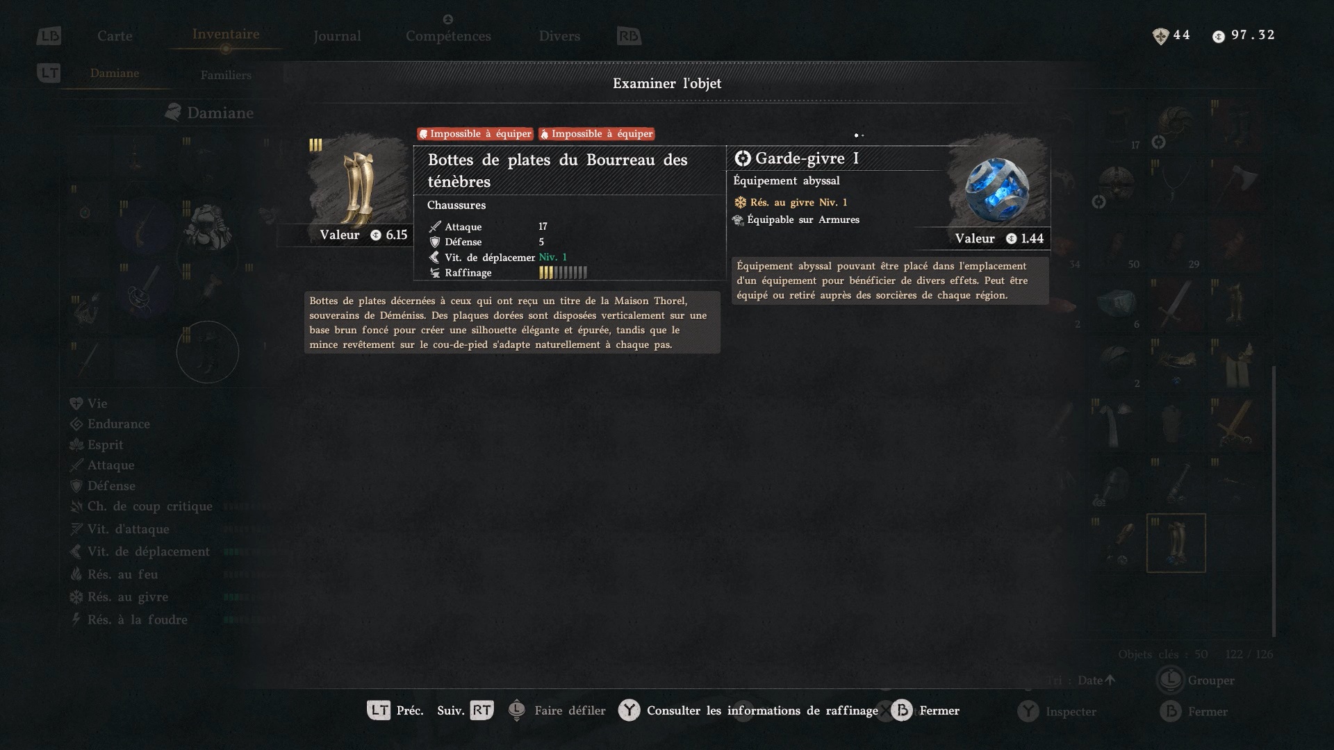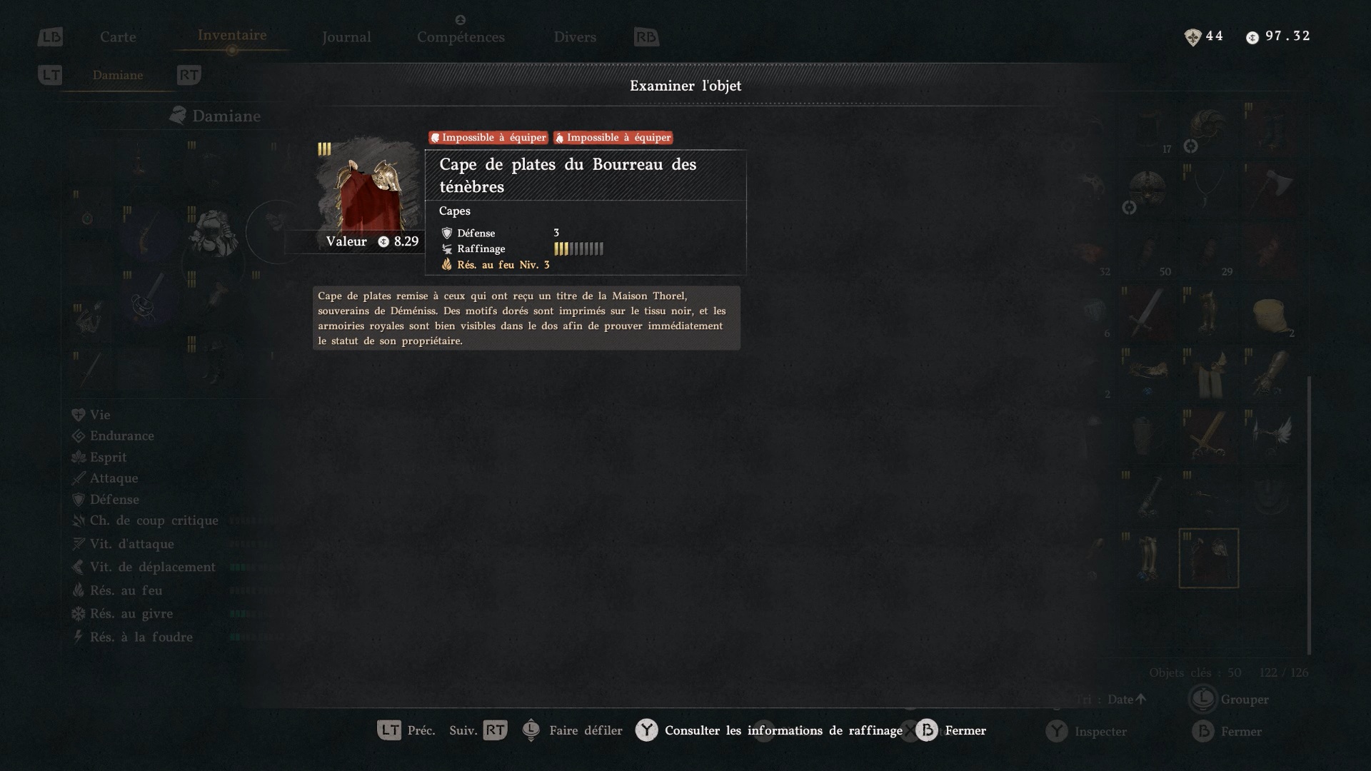 Emplacement de l’armure de Chevalier du Bourreau des ténèbres de Damiane