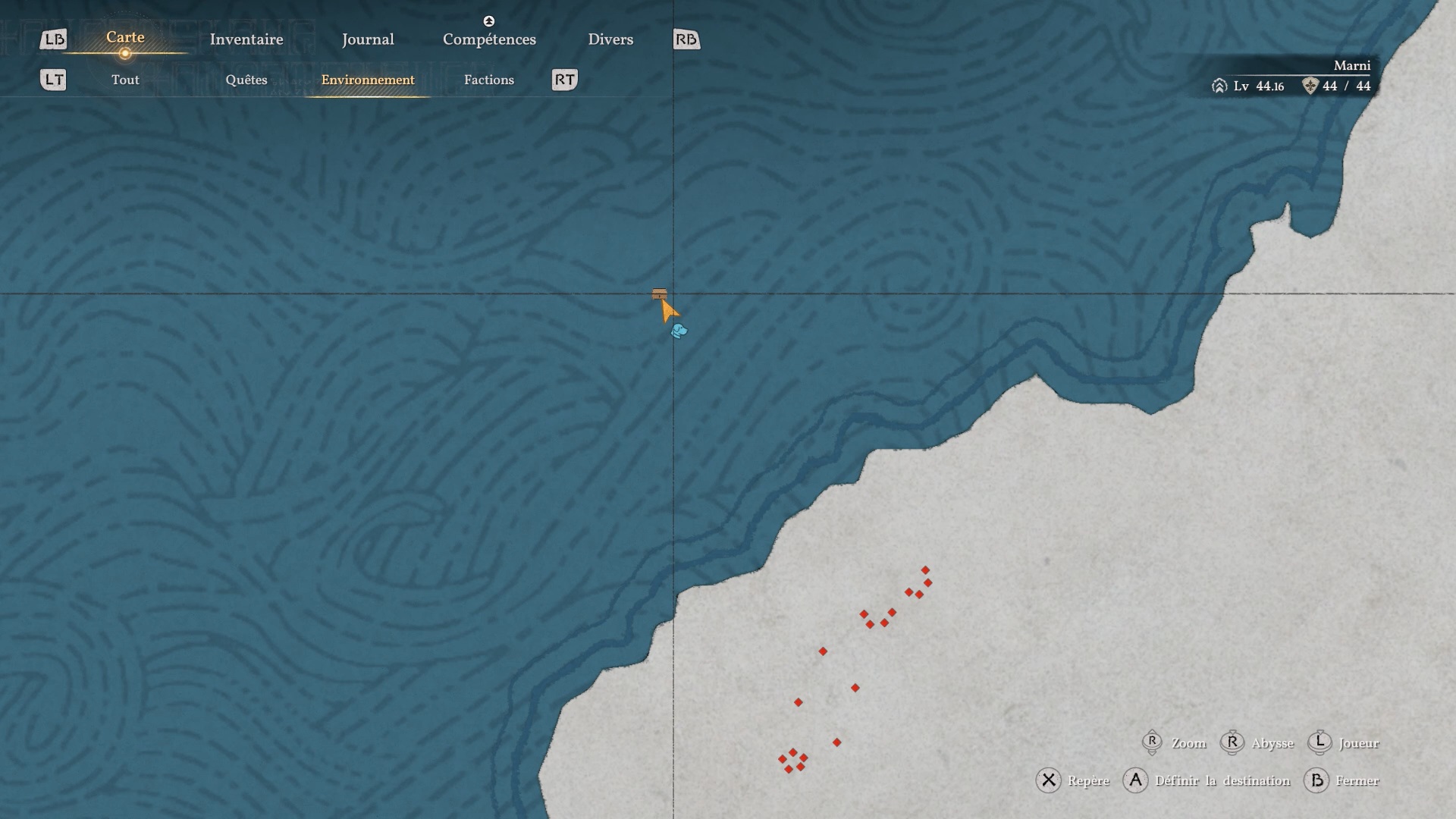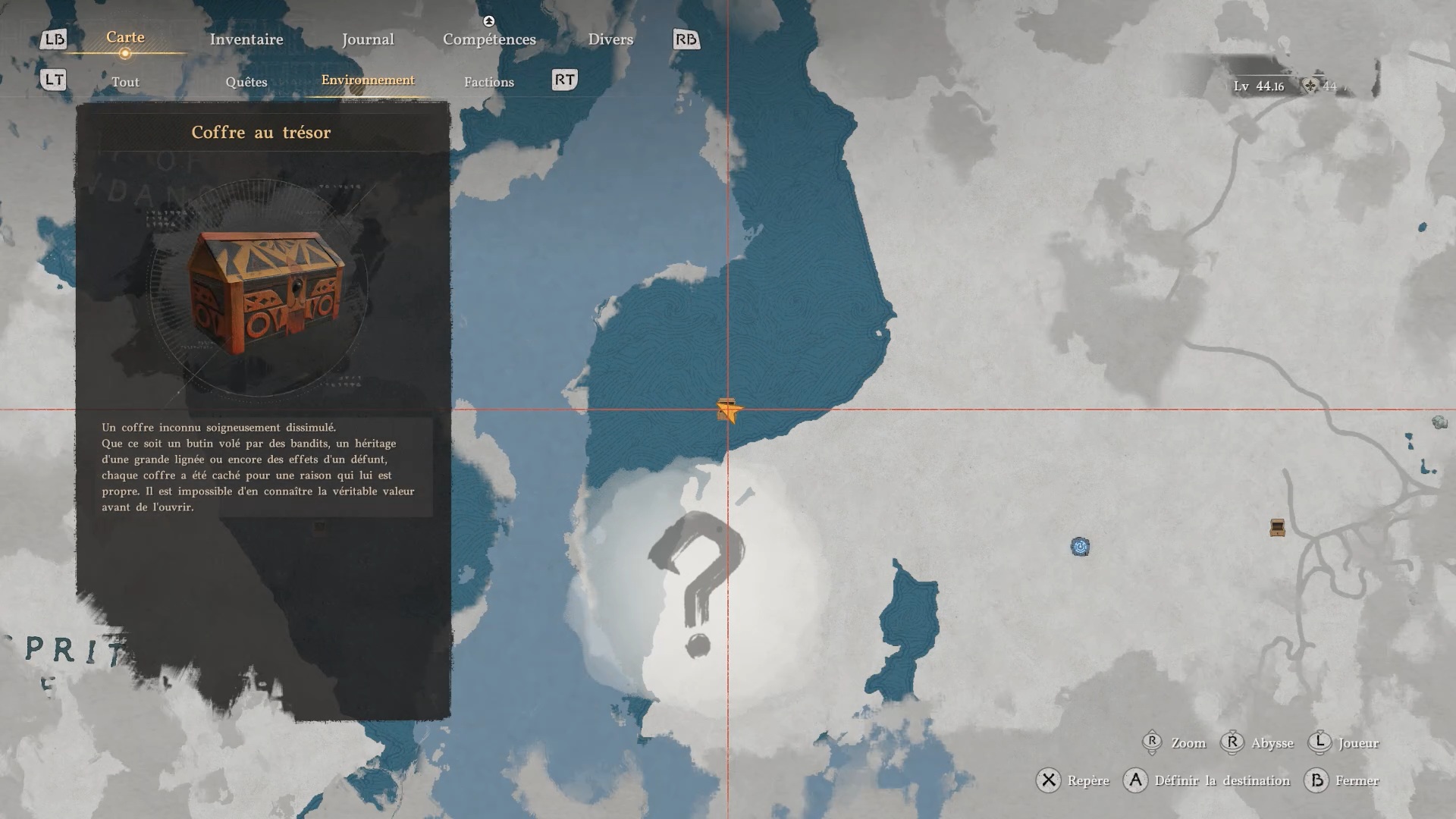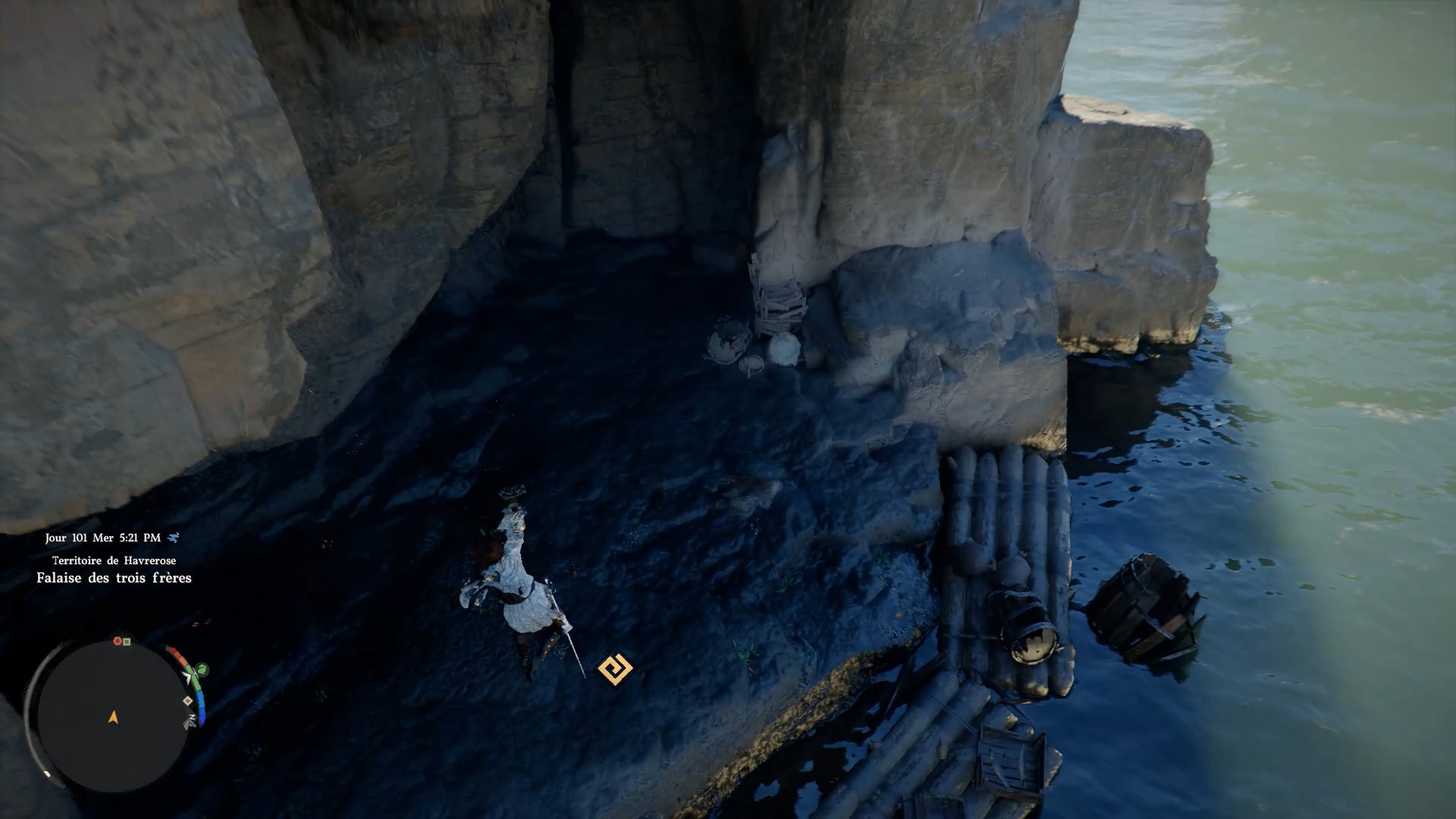 Les bottes de plates du Bourreau des ténèbres se trouvent dans une grotte à l’ouest de « Dewhaven » et de « Delesyia ». À l’emplacement indiqué, vous verrez deux grandes montagnes de rocher sur l’eau près d’un camp ennemi : dirigez-vous vers celle de droite pour trouver l’entrée d’une grotte en son centre, où se situe le coffre contenant les bottes.