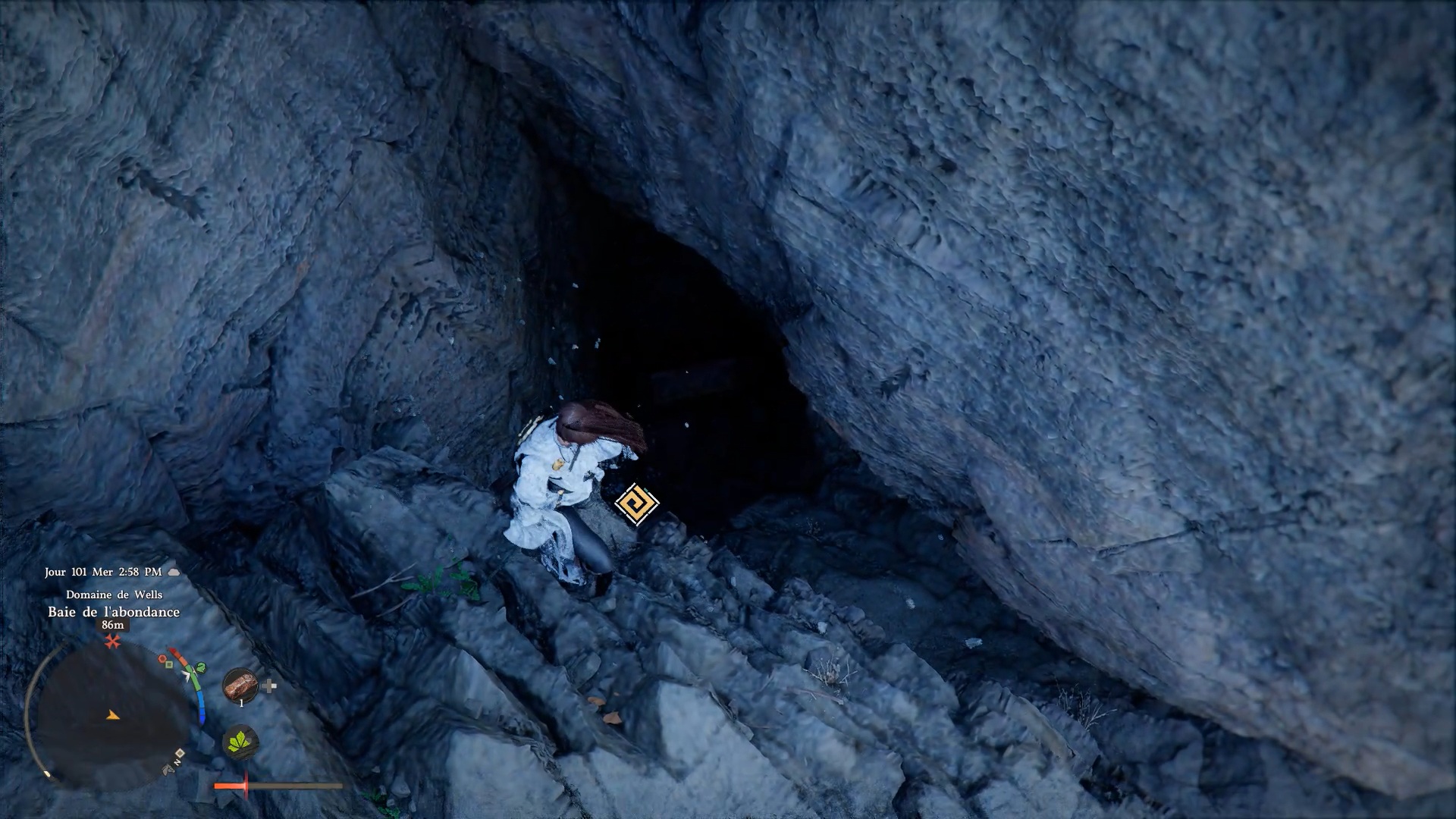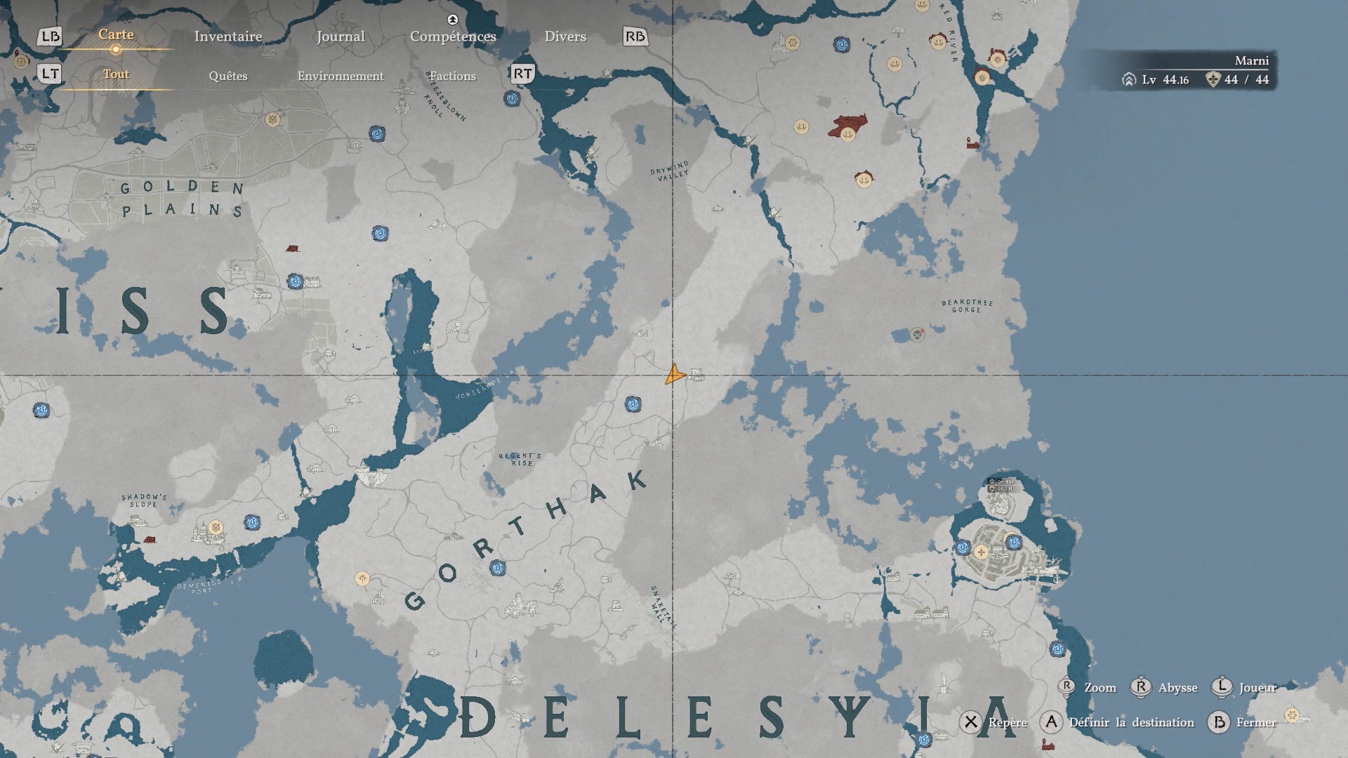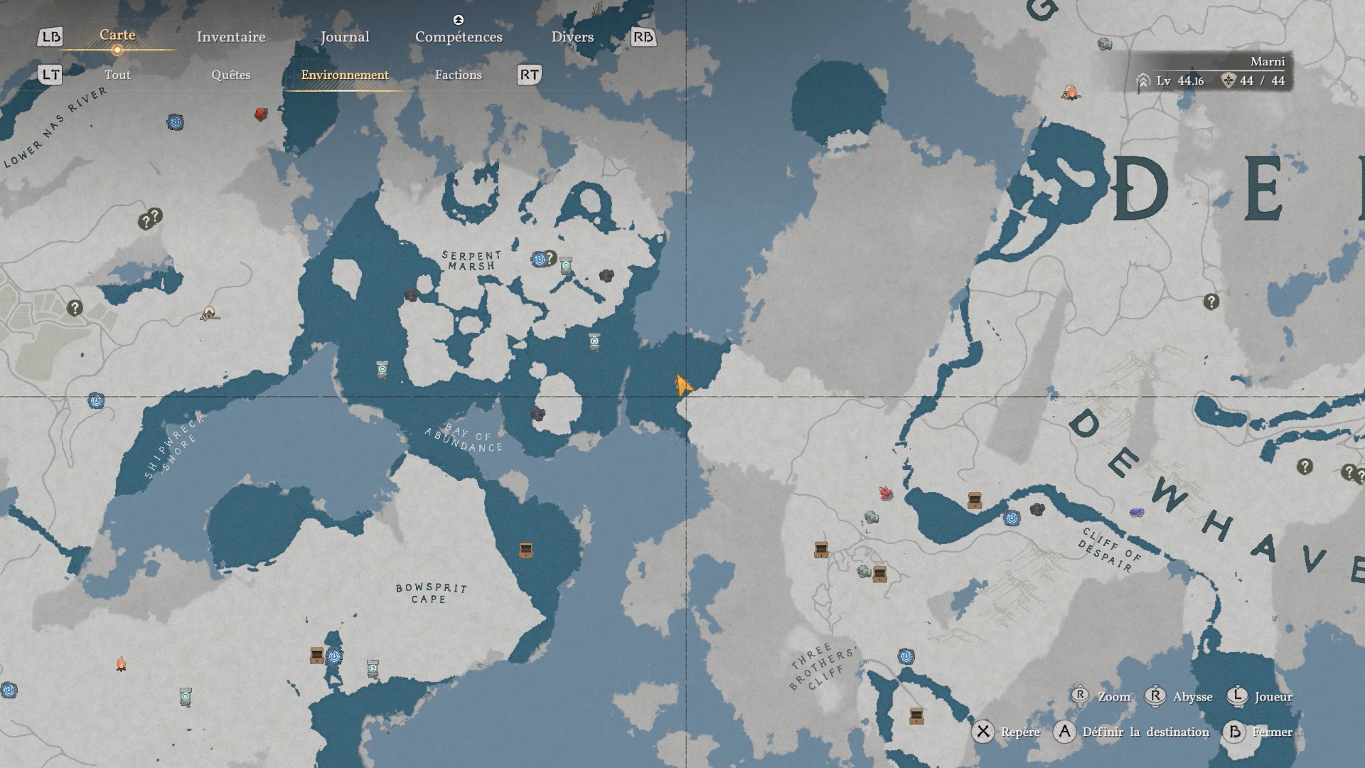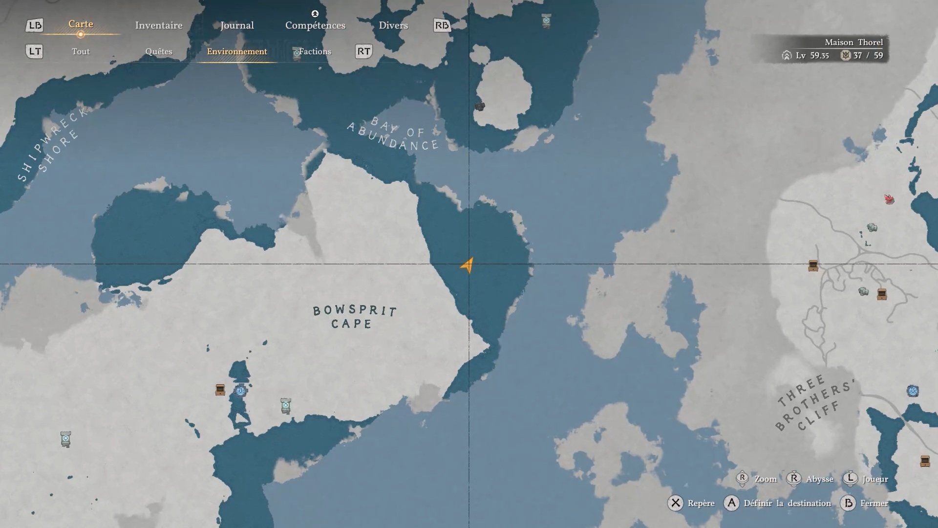 Les gants de plates du Bourreau des ténèbres se situent dans un trou au cœur des montagnes rocheuses, à l’est de « Bowsprit Cape » et à l’ouest de « Delesyia ». Dirigez-vous vers l’emplacement indiqué pour repérer une ouverture dans la roche, puis sautez à l’intérieur afin de trouver le coffre contenant les gants.