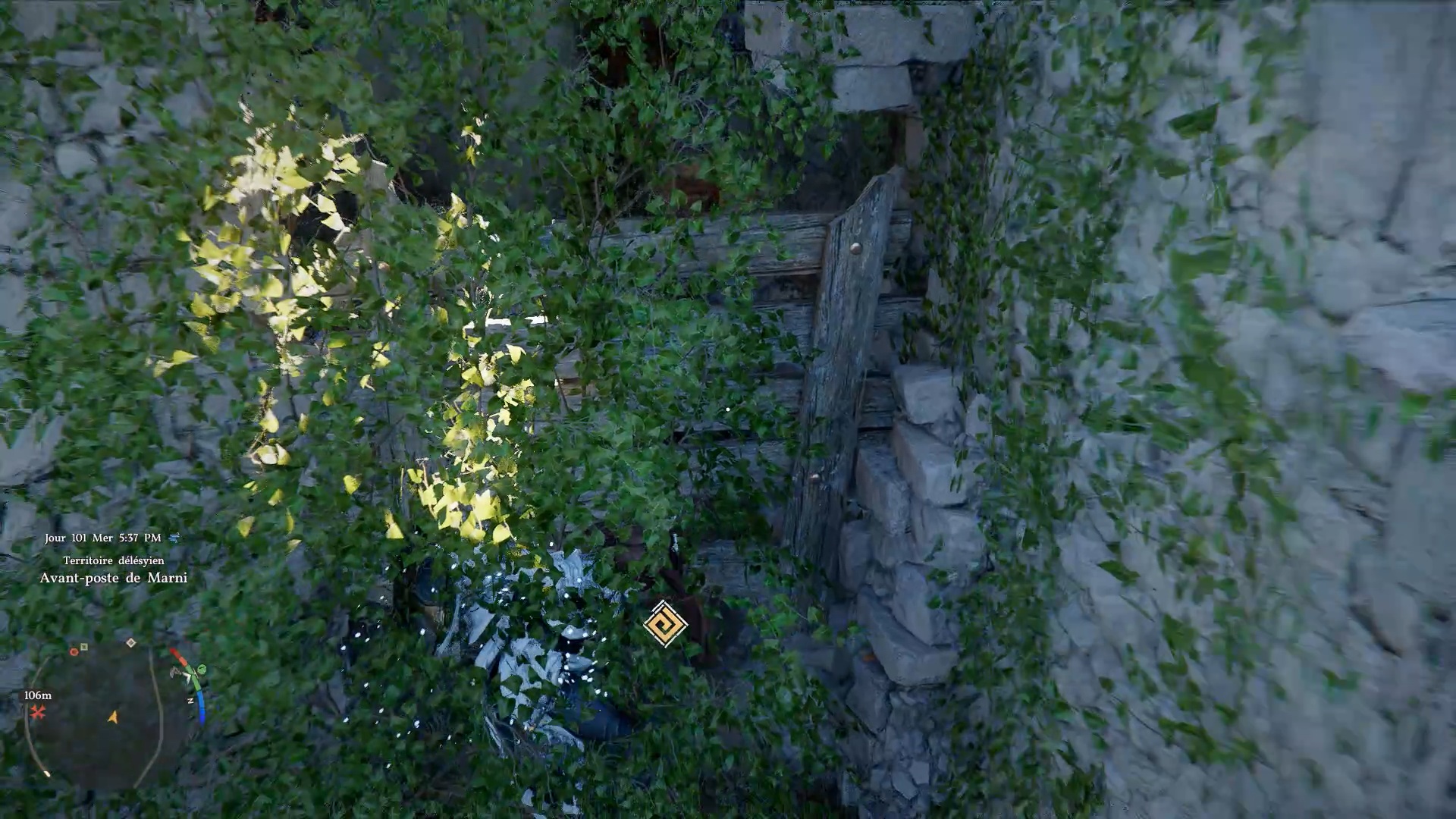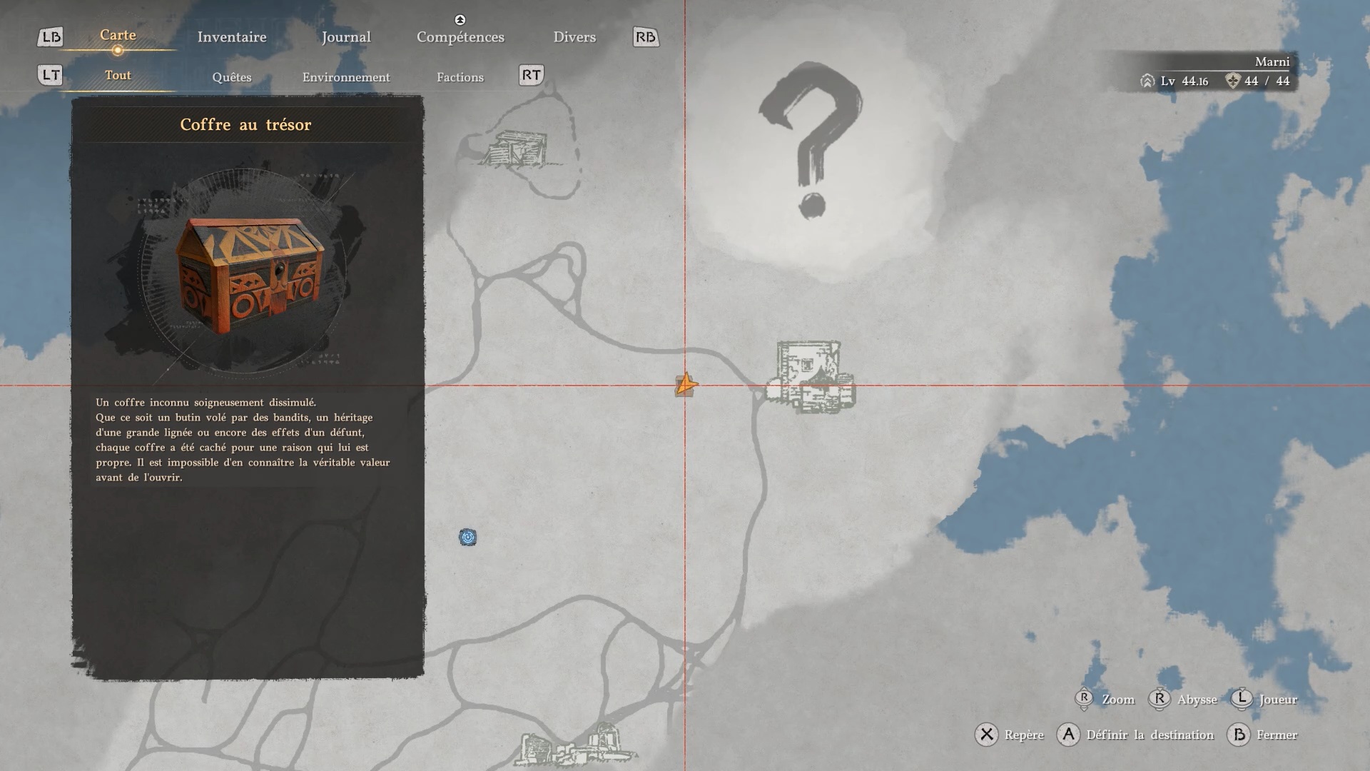 Le heaume de plates du Bourreau des ténèbres se situe dans un coffre à l’ouest de l’avant-poste de Marni, au nord de « Gorthak » et de « Delesyia ». Dans les ruines à l’ouest de l’avant-poste, dirigez-vous vers le point indiqué pour repérer un amas de feuilles sur le côté droit du centre des ruines. Derrière ces feuilles, se trouve un passage bloqué par des planches en bois. Brisez-les pour accéder au coffre contenant la cape.