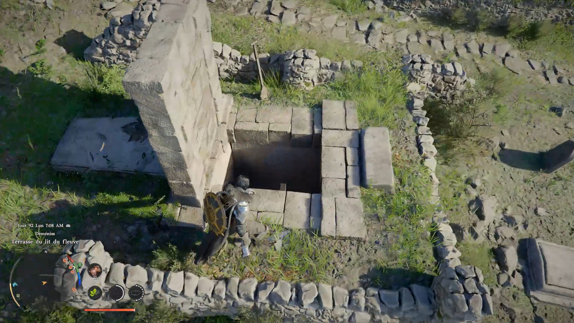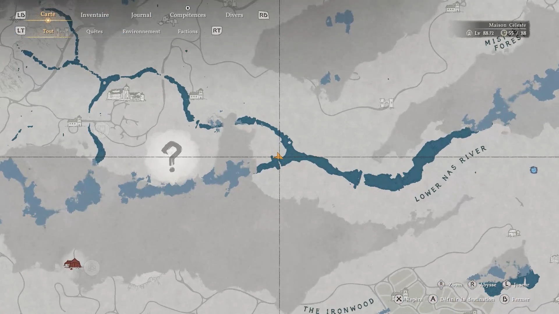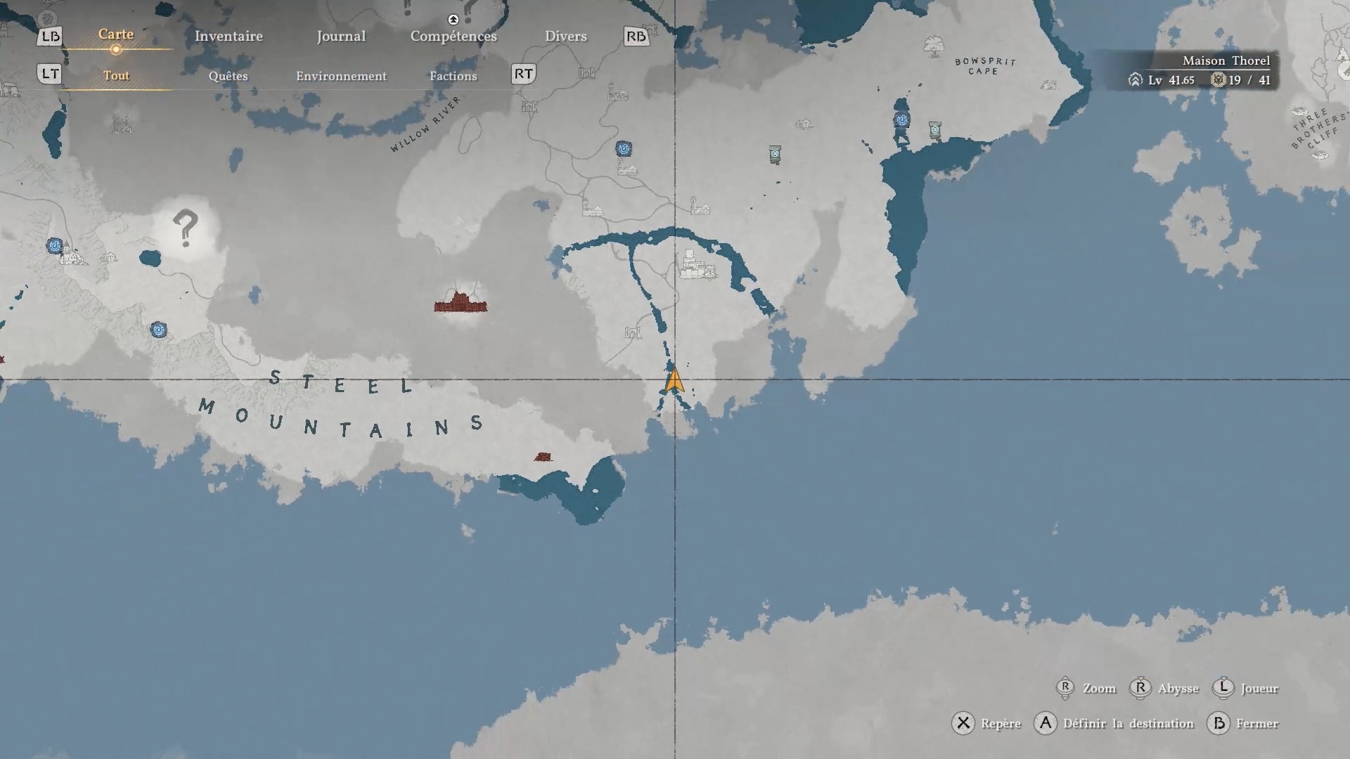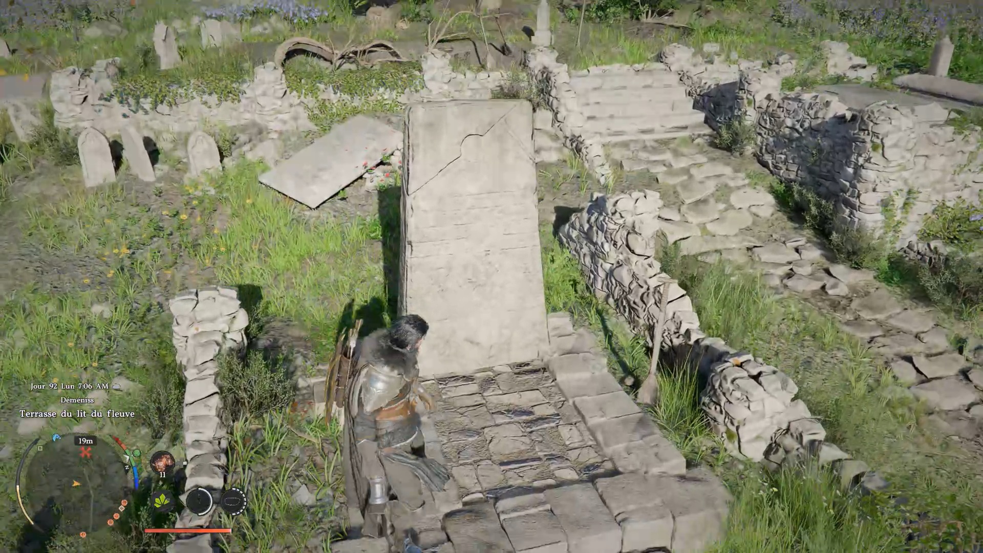 La cape de plates de l’âme maudite se situe à l’est des « Ruines déménissiennes », au sud-ouest de « Demeniss » et à l’est de « Anvill Hill ». Dirigez-vous au nord-est des ruines pour repérer une tour en ruine adossée à un pan de mur. Vous devez grimper sur la façade, en visant une zone carrée en briques, différente du reste du mur. Une fois en position, agrippez-vous avec la commande « Résister », puis utilisez la compétence « coup de paume » pour ouvrir un passage et atteindre le coffre contenant la cape.