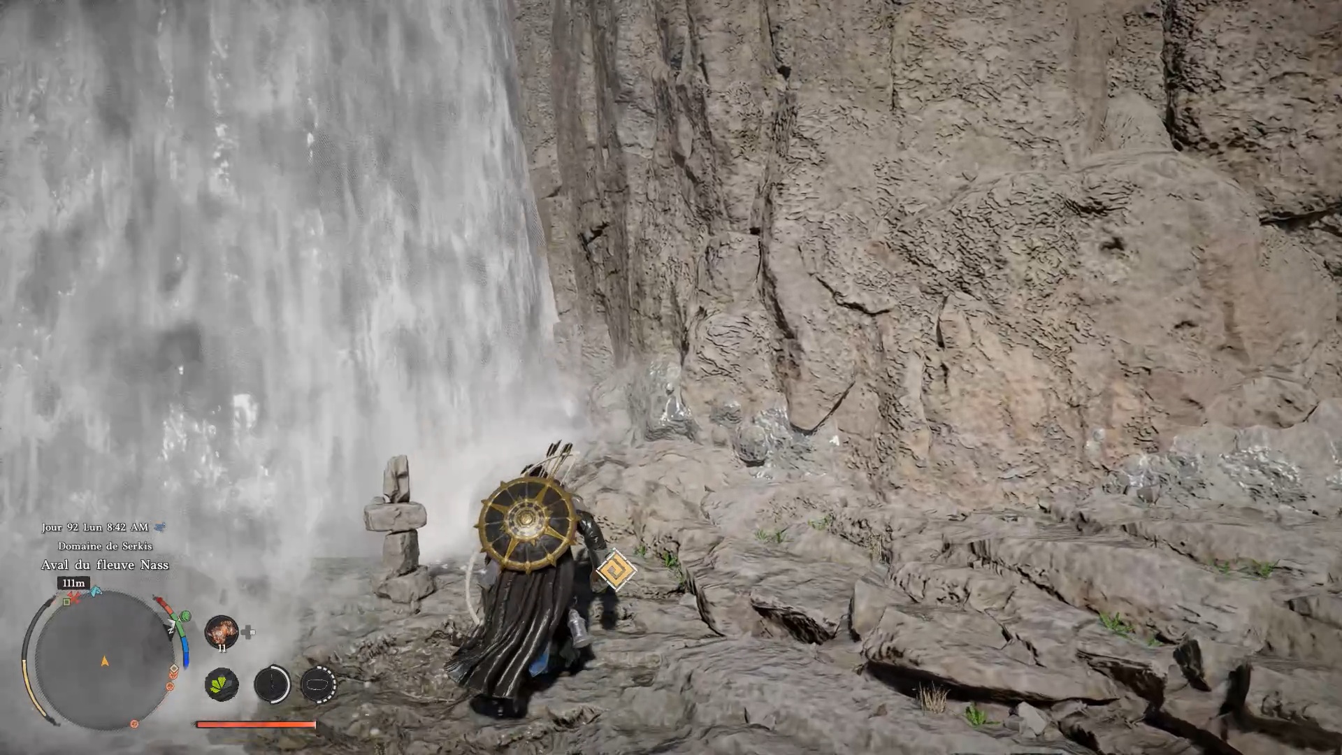 Les bottes de plates de l’âme maudite se situent derrière une cascade au sud de la région « Demeniss », à l’est de « Lower Nas River ». Une fois devant la cascade, approchez-vous de l’eau et utilisez la compétence « Perforation » pour traverser le mur d’eau. Vous accéderez alors à une grotte cachée, où se trouve le coffre contenant ces bottes. Pour progresser dans la grotte, utilisez le « coup de paume » afin de détruire les rochers sur votre chemin.