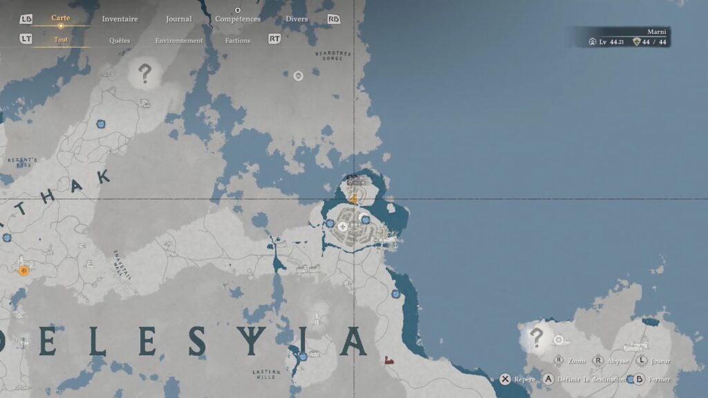 Pour obtenir les gants de plates de Cœur Gelé, dirigez-vous au nord-est de « Delesyia », au niveau du port de Délesyie. Face au navire du port, vous trouverez un étal avec une pierre à aiguiser. À proximité, repérez un passage bloqué par des planches dans le mur. Accroupissez-vous, puis frappez les planches pour libérer le passage menant au coffre contenant les gants.