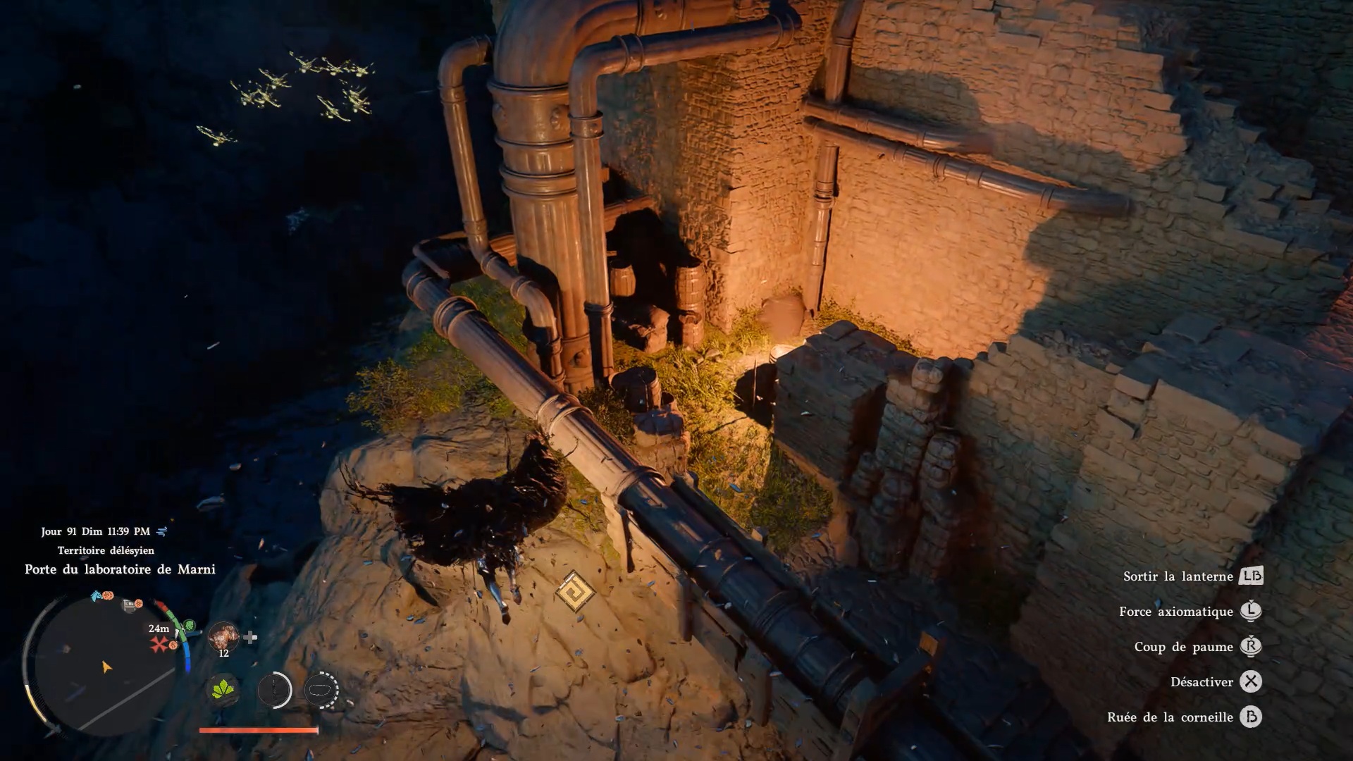 Les bottes de plates de Cœur Gelé se situent à l’ouest de la porte du laboratoire de Marni. Le laboratoire se trouve au nord-est de « Delesyia », près de « Mont Benus ». Depuis l’entrée, dirigez-vous vers l’ouest pour repérer un gros tuyau relié à la façade du laboratoire. Grimpez sur la façade le long de ce tuyau pour atteindre une zone en hauteur, où vous verrez un carré de briques distinct du reste du mur. Une fois au centre du carré, agrippez-vous avec la commande « Résister », puis utilisez la compétence « coup de paume » pour ouvrir un passage et accéder au coffre contenant les bottes.