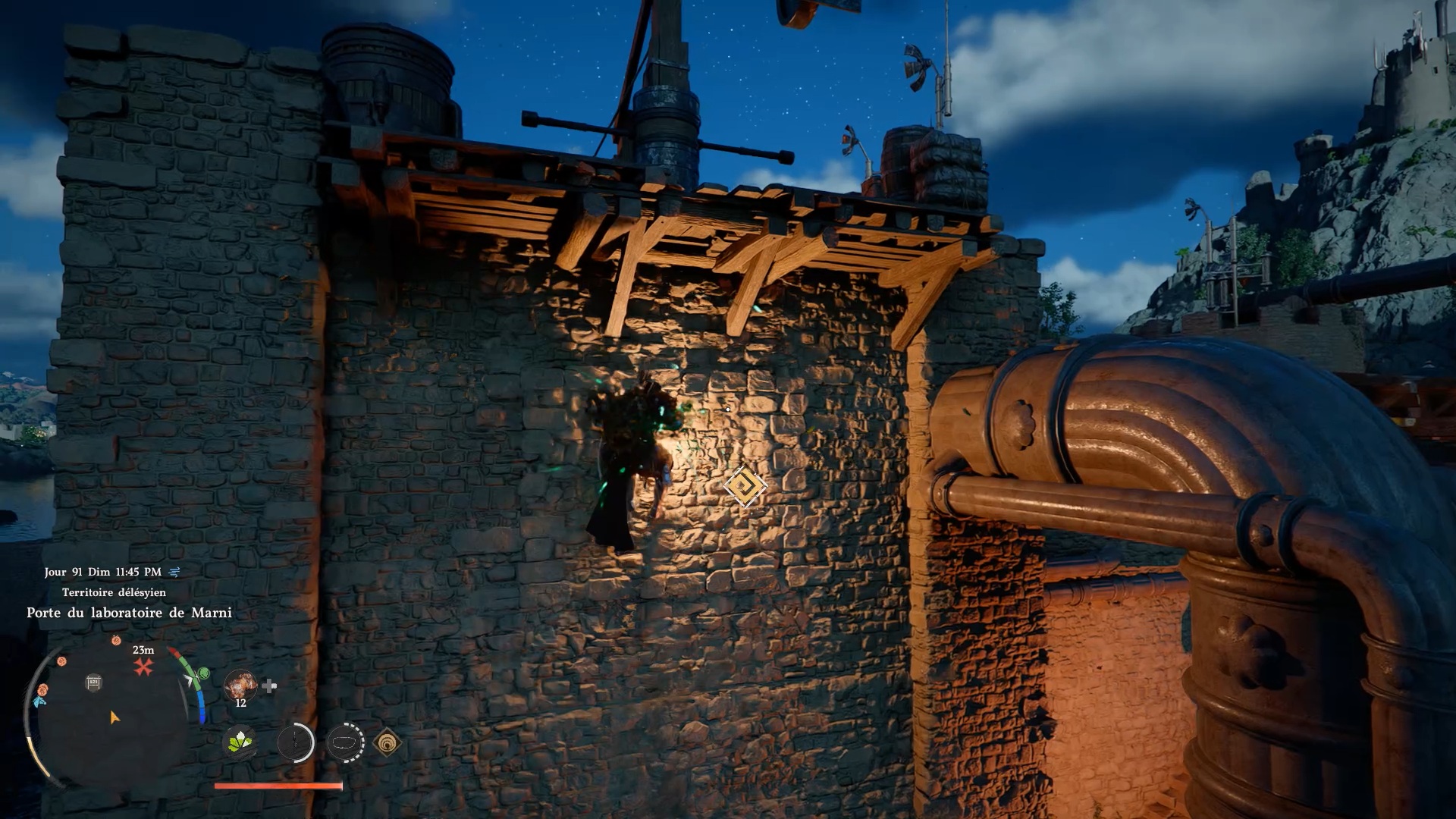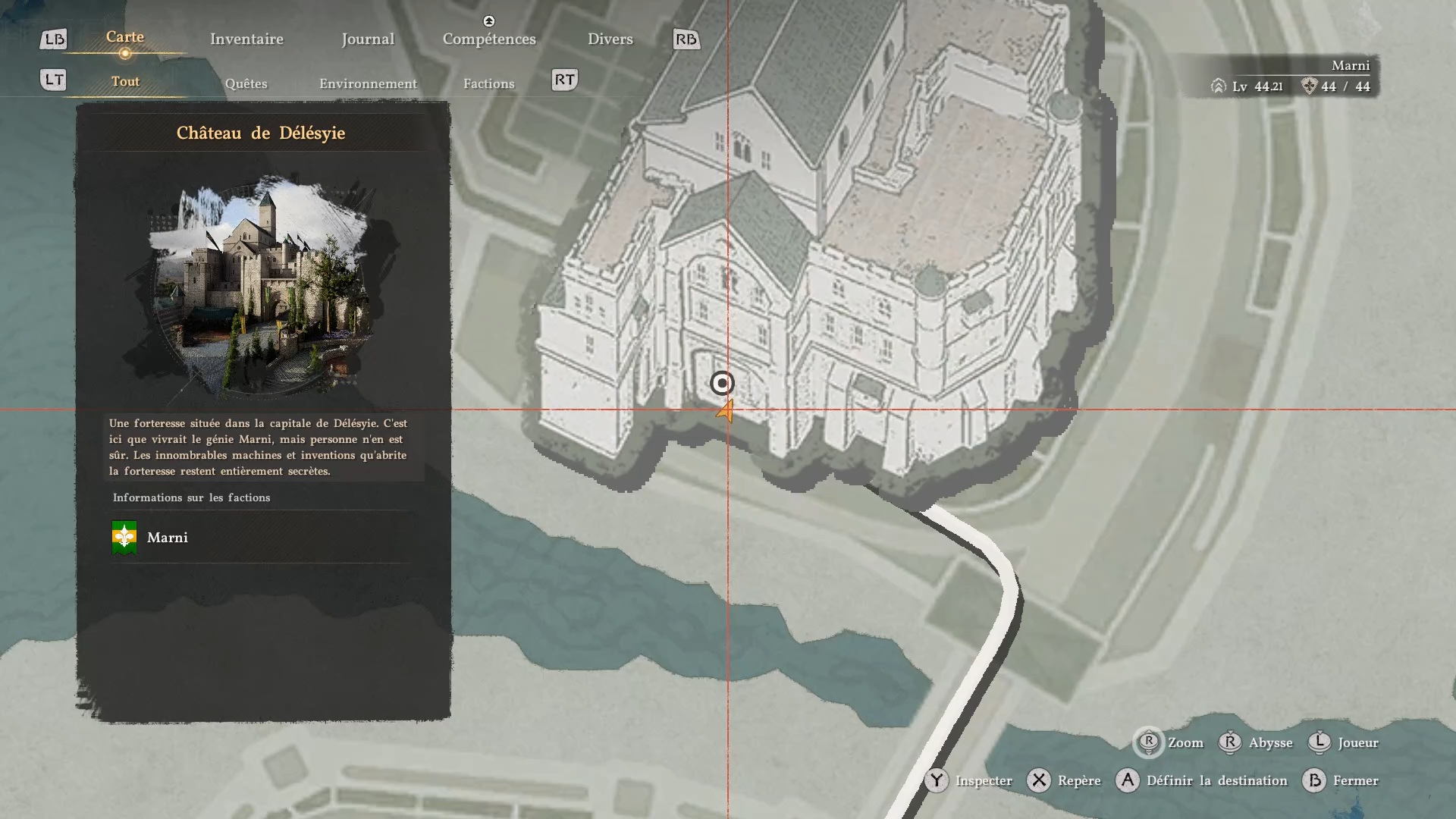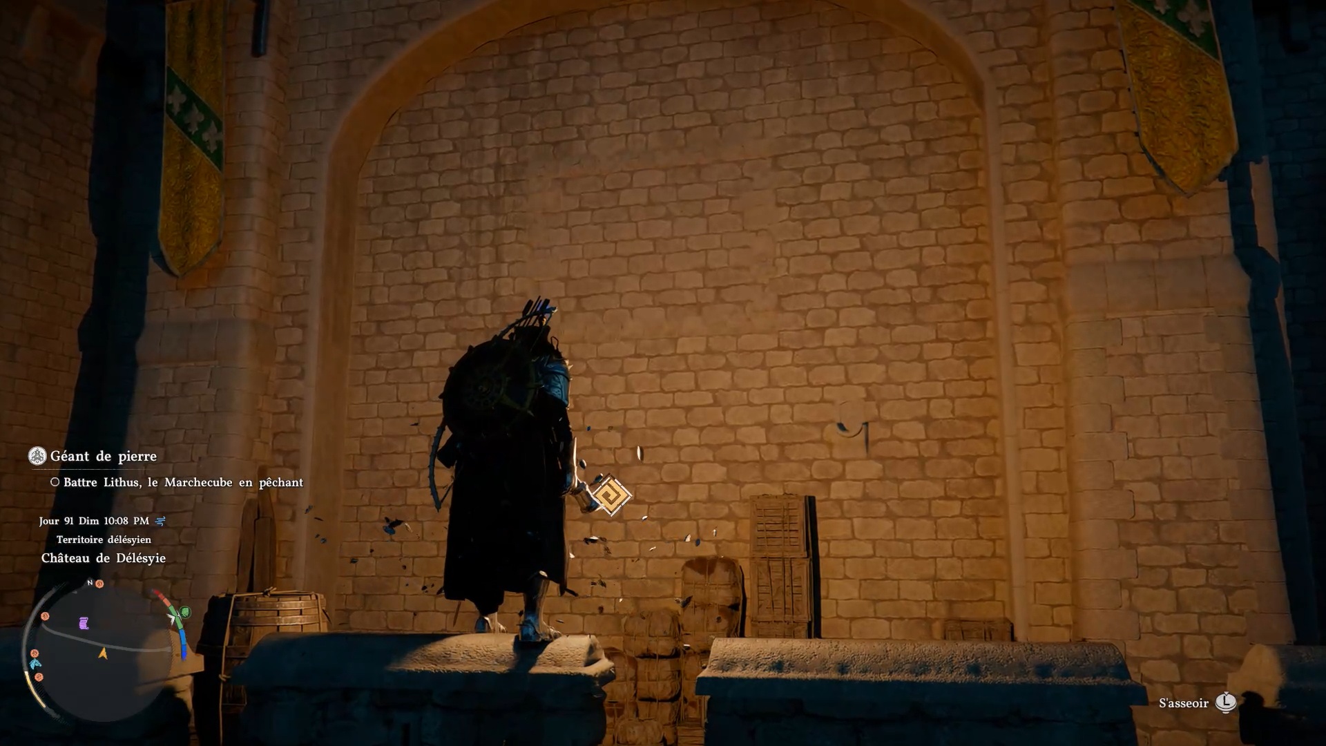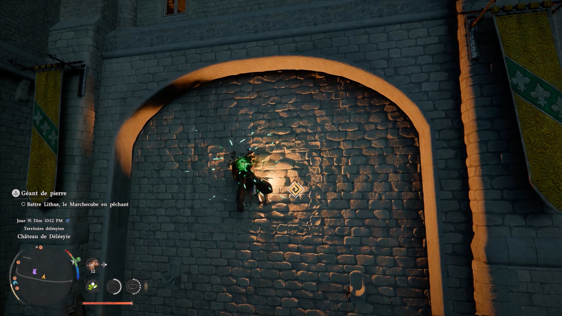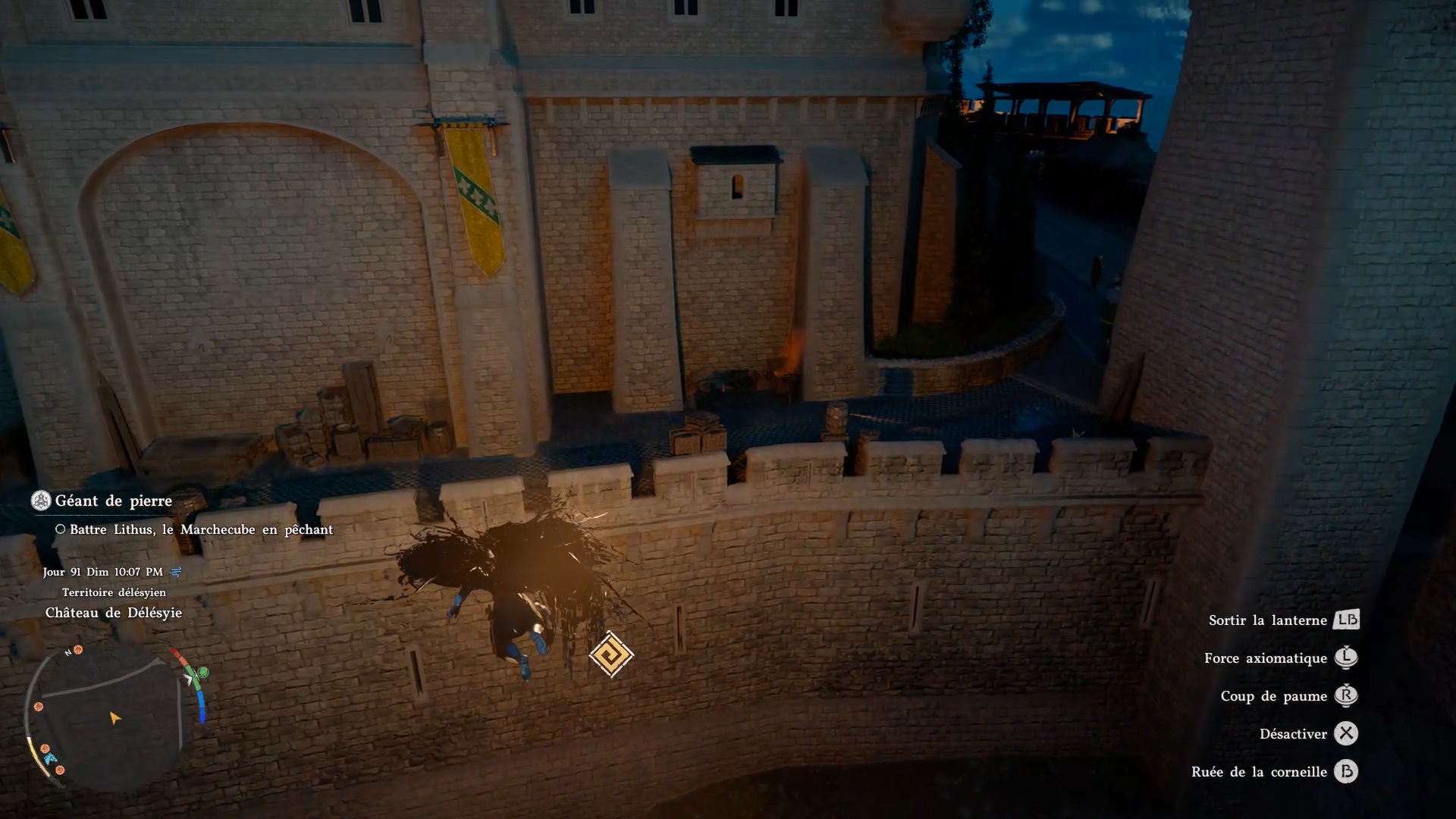 L’armure de plates de Cœur Gelé se situe dans un passage secret sur la façade du château de « Délesyie », au sud de l’entrée. Le château est au nord de la ville de « Délesyie ». Dirigez-vous vers l’entrée comme indiqué sur nos images, puis grimpez sur la façade pour repérer un carré de briques distinct du reste du mur. Une fois au centre de cette zone, agrippez-vous avec la commande « Résister », puis utilisez la compétence « coup de paume » afin d’ouvrir un passage secret. Vous pourrez alors accéder au coffre contenant l’armure.