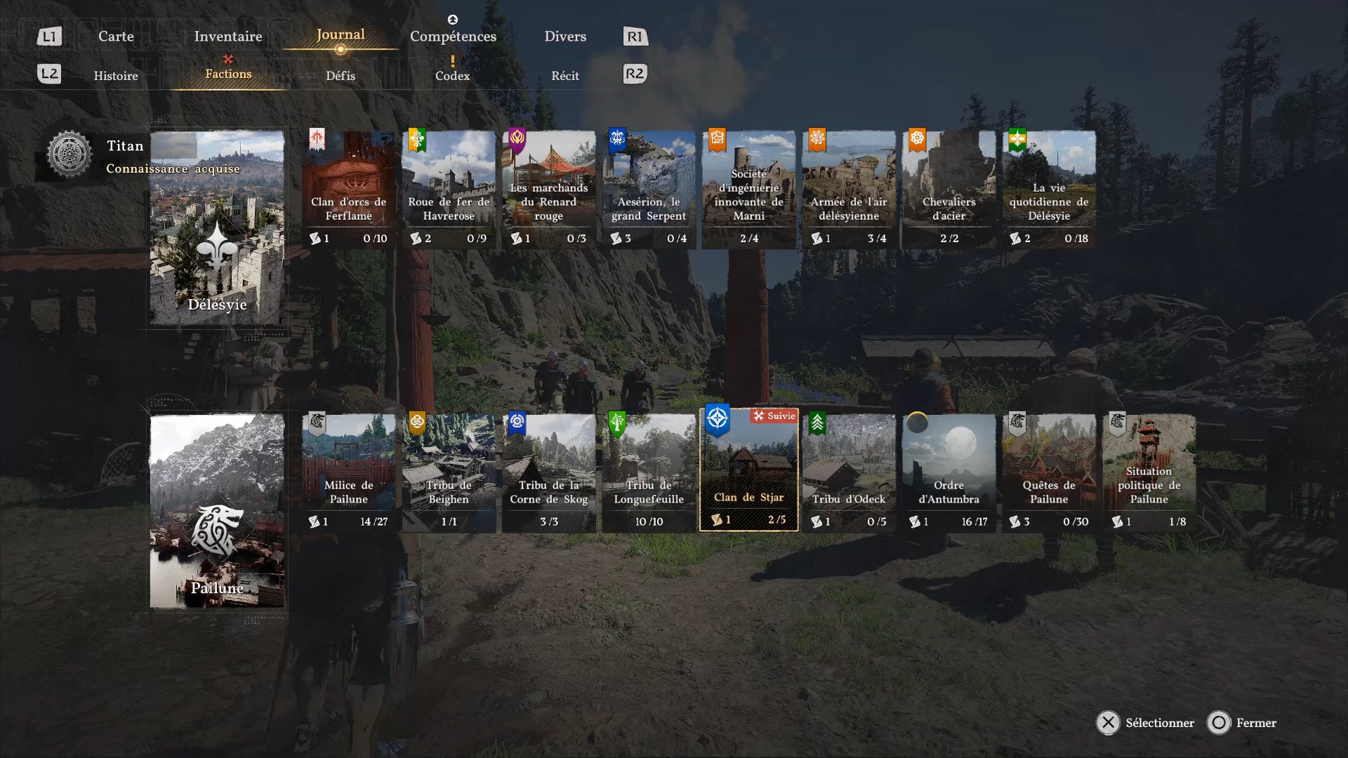 Vous obtenez l’armure de plates de la Foudre en vainquant le boss « Titan » durant la mission « Dieu déchu » de la faction « Clan de Stjar ». Cette mission est accessible au cours de la quête « Maître de la foudre ». Pour débloquer les quêtes de cette faction, vous devez obligatoirement compléter les quêtes de faction de « Pailune » :