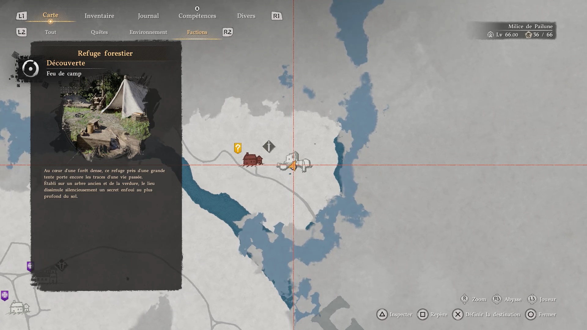 Le casque de plates d’Éclair se situe au refuge forestier, tout au nord de « Pailune ». Entrez dans la tente du refuge pour trouver un trou dans le sol menant au coffre contenant le casque.