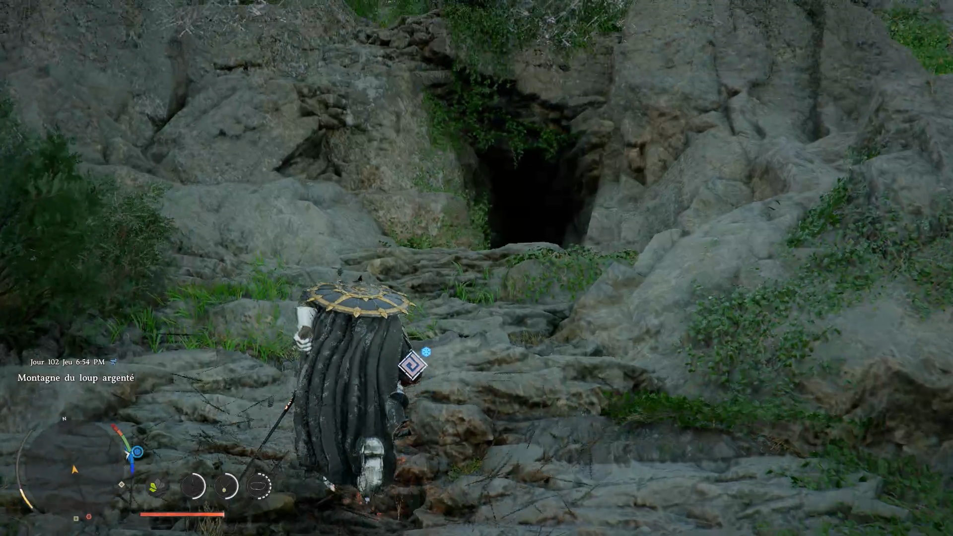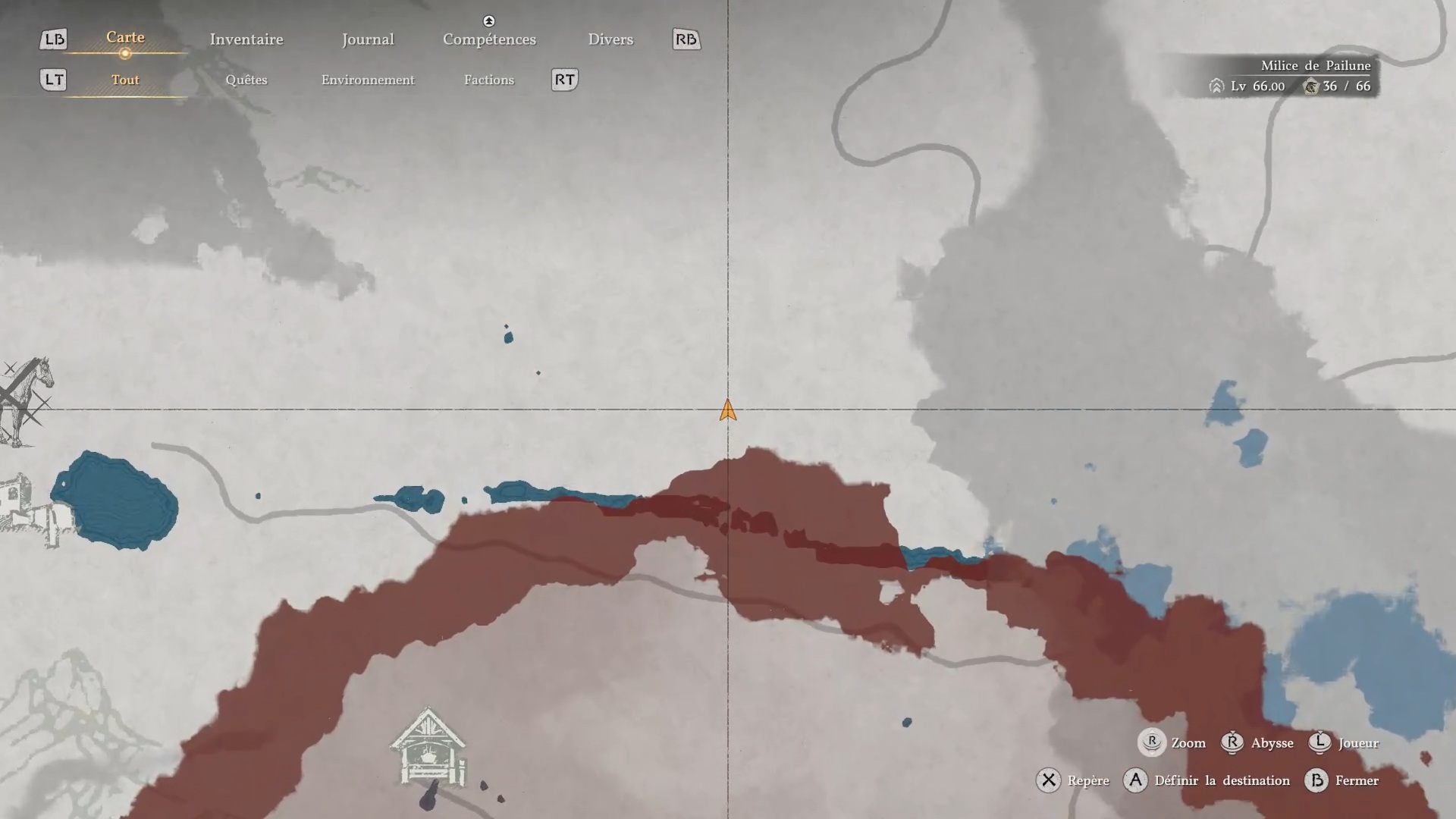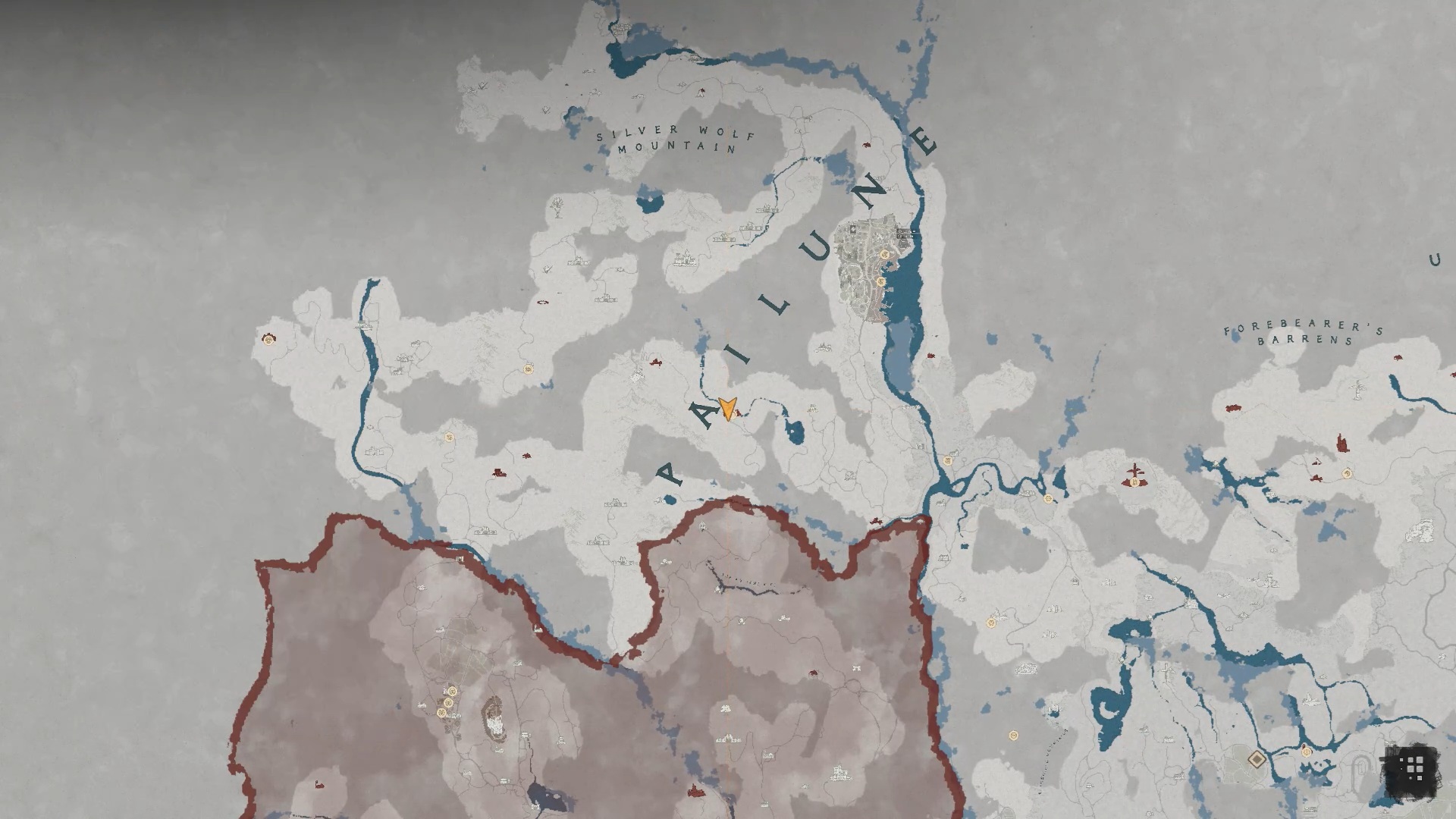 Le heaume de plates des Ailes gelées se trouve dans la « Grotte des Anciens », au sud de « Pailune ». À proximité du cours d’eau, à l’emplacement indiqué sur la carte, vous trouverez une entrée de grotte dans les rochers. Entrez à l’intérieur pour trouver le coffre contenant le heaume.