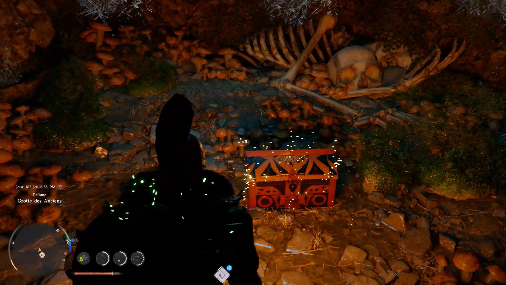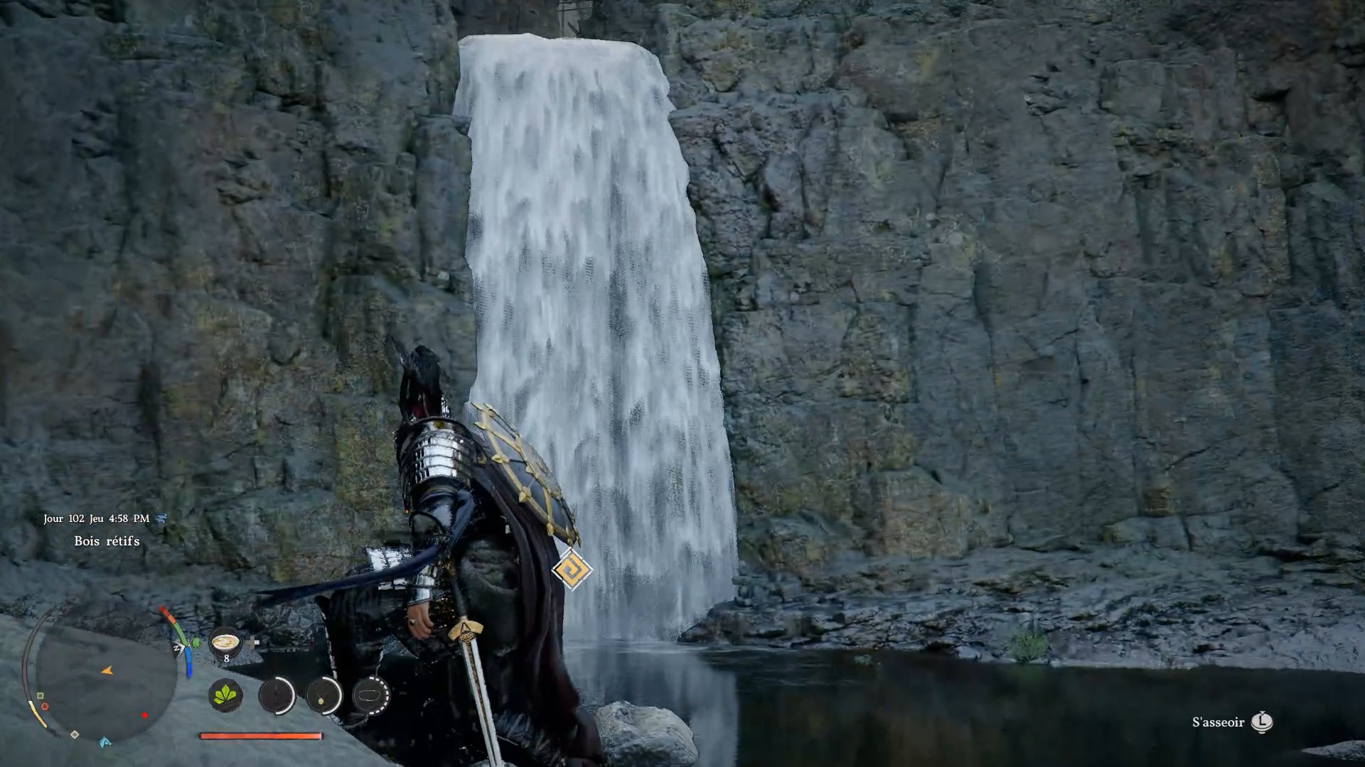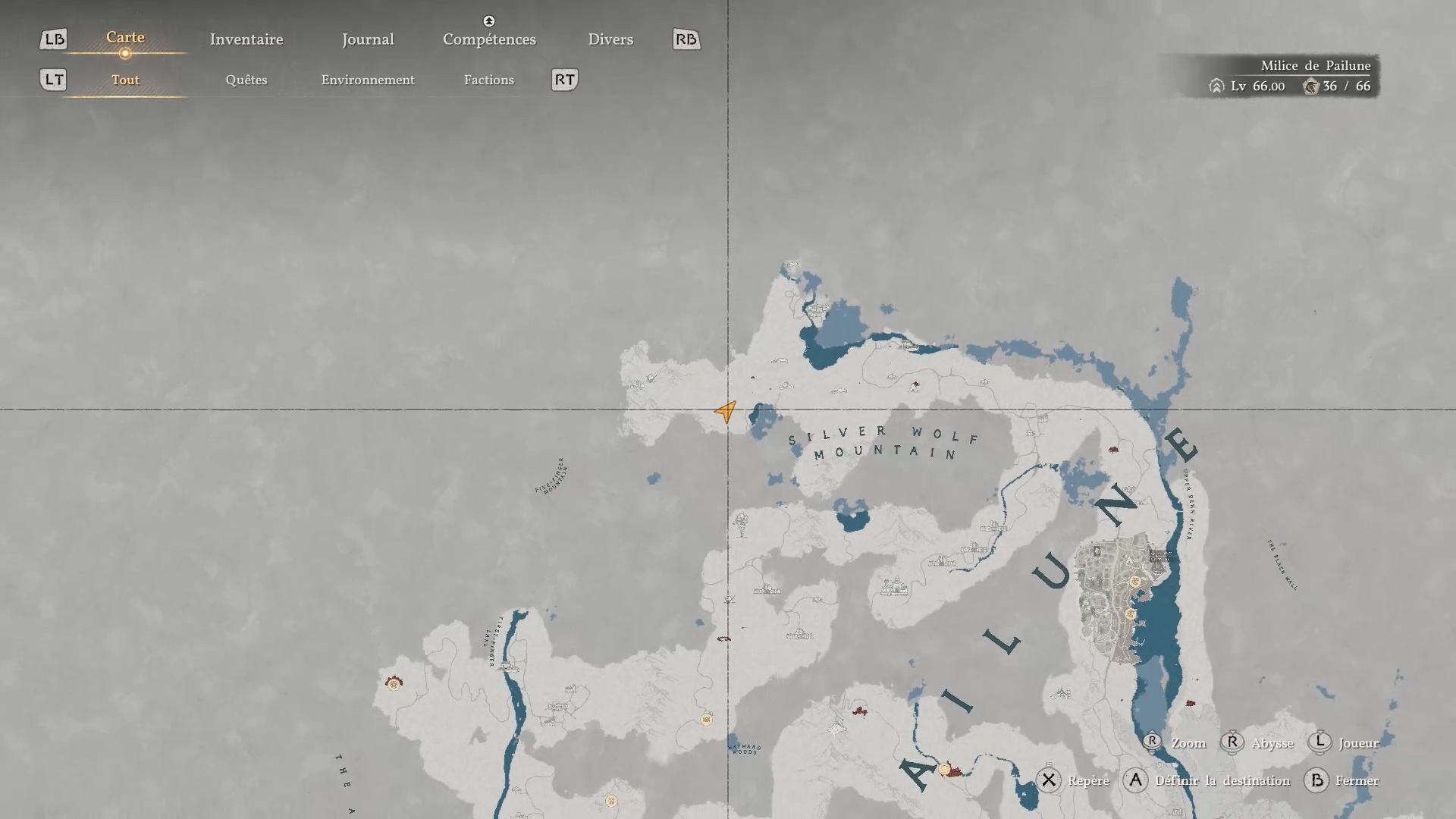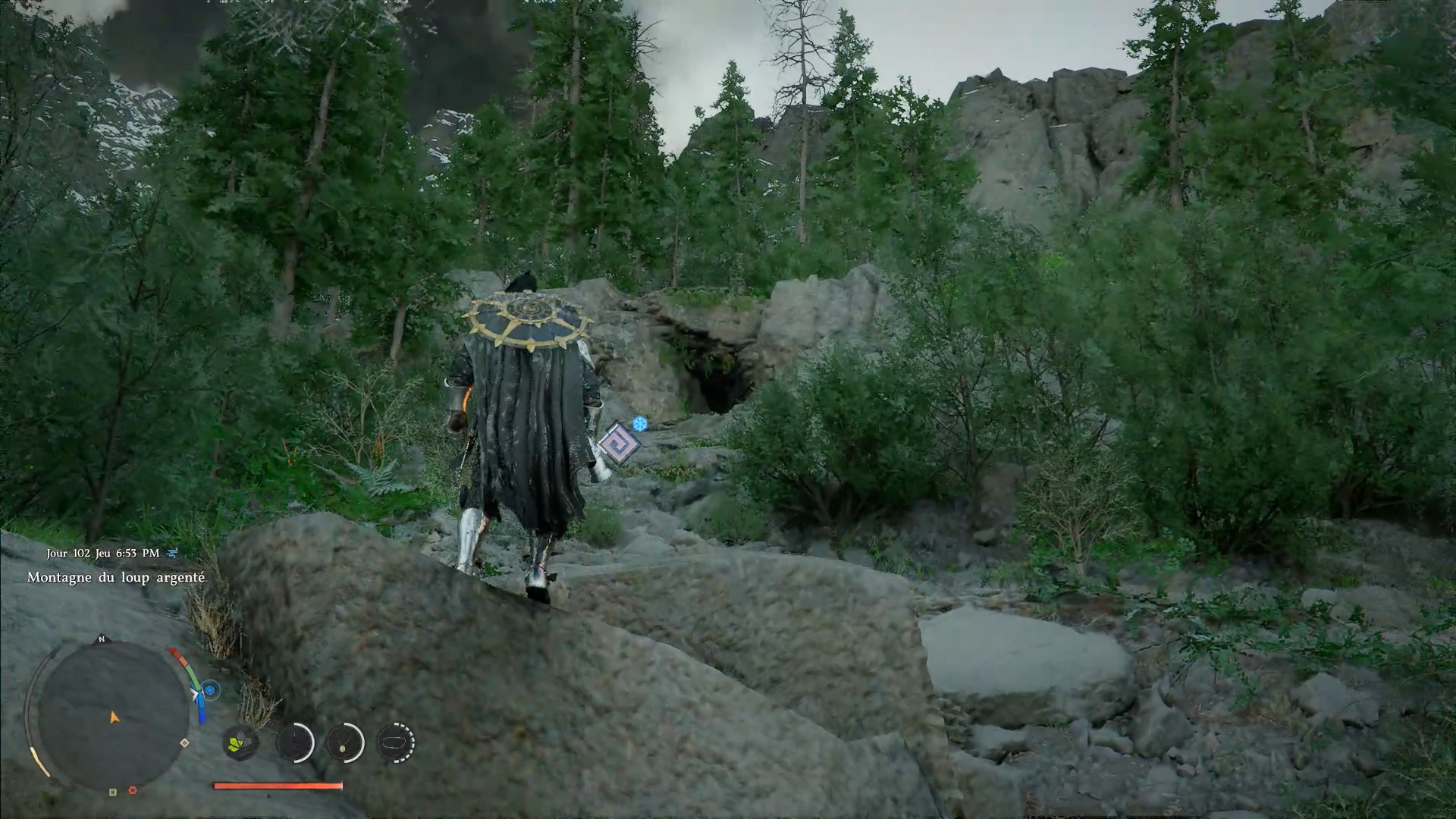 Le heaume de plates des Ailes gelées se trouve dans la « Grotte des Anciens », au sud de « Pailune ». À proximité du cours d’eau, à l’emplacement indiqué sur la carte, vous trouverez une entrée de grotte dans les rochers. Entrez à l’intérieur pour trouver le coffre contenant le heaume.