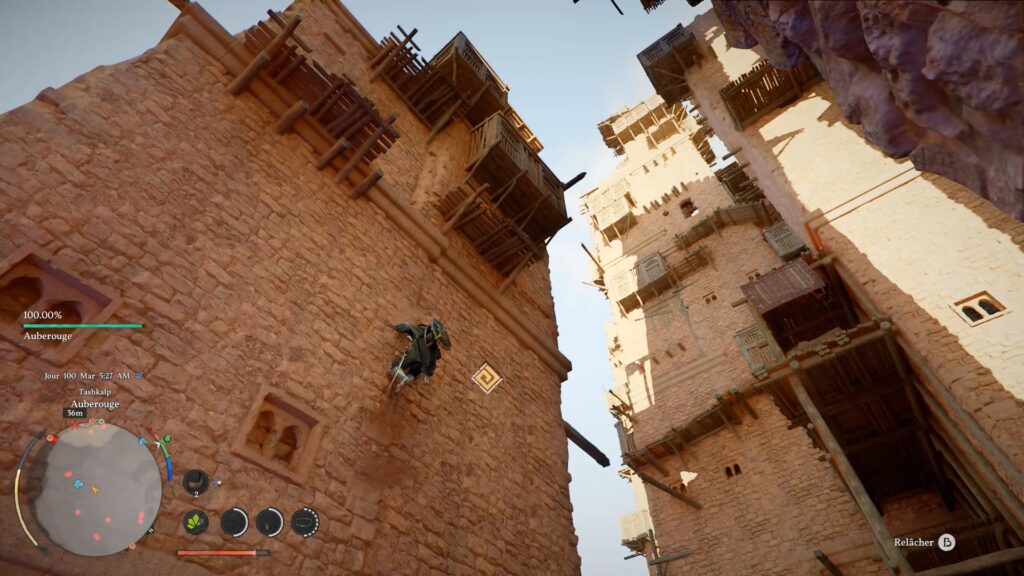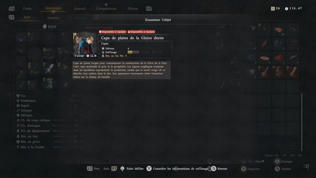 La cape de plates de la gloire dorée se situe au sud de « Crimson Desert » et de « Tashkalp », dans la zone « Auberouge ». Dans cette zone, grimpez sur la tour la plus haute pour trouver le coffre contenant la cape.