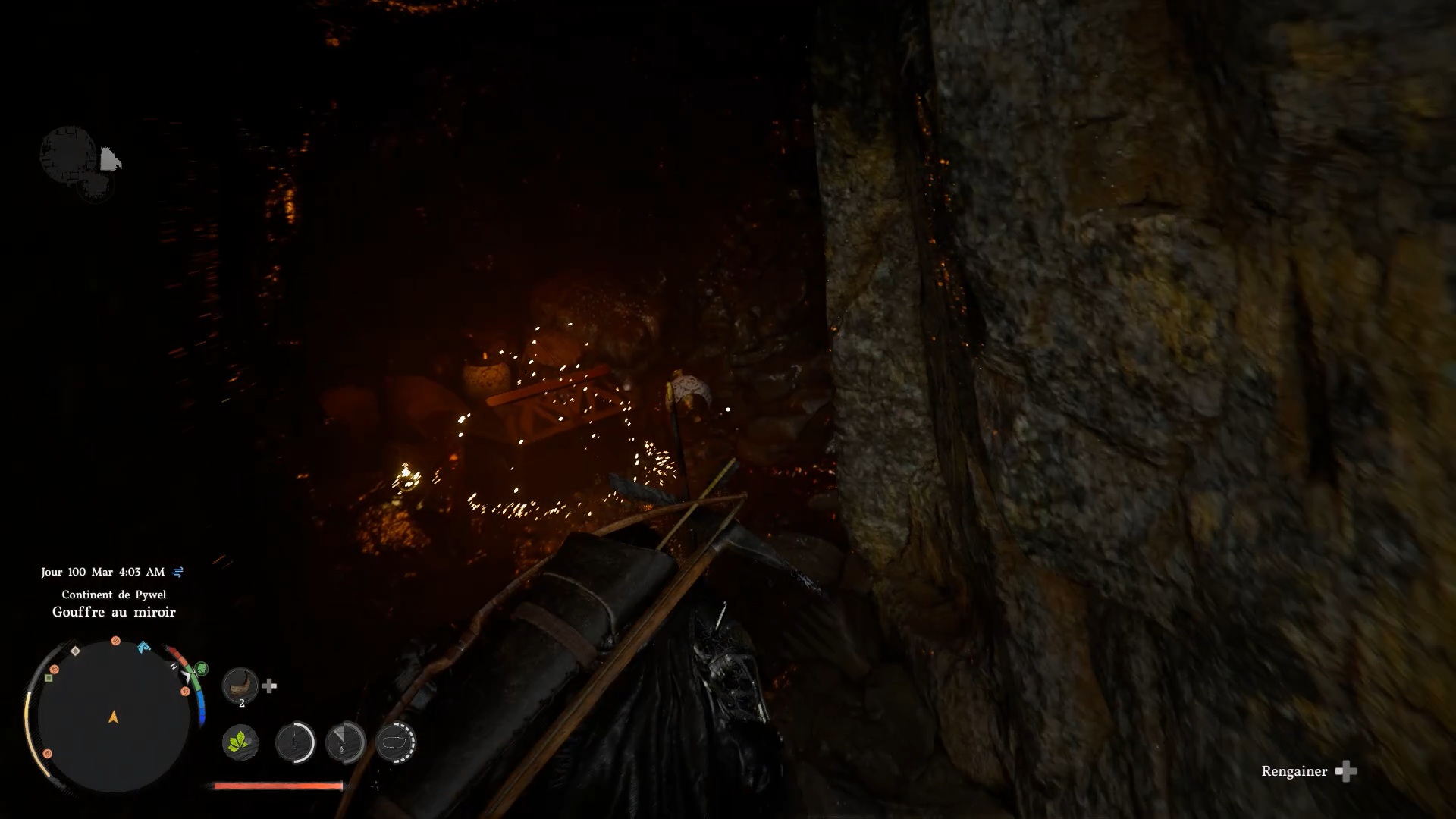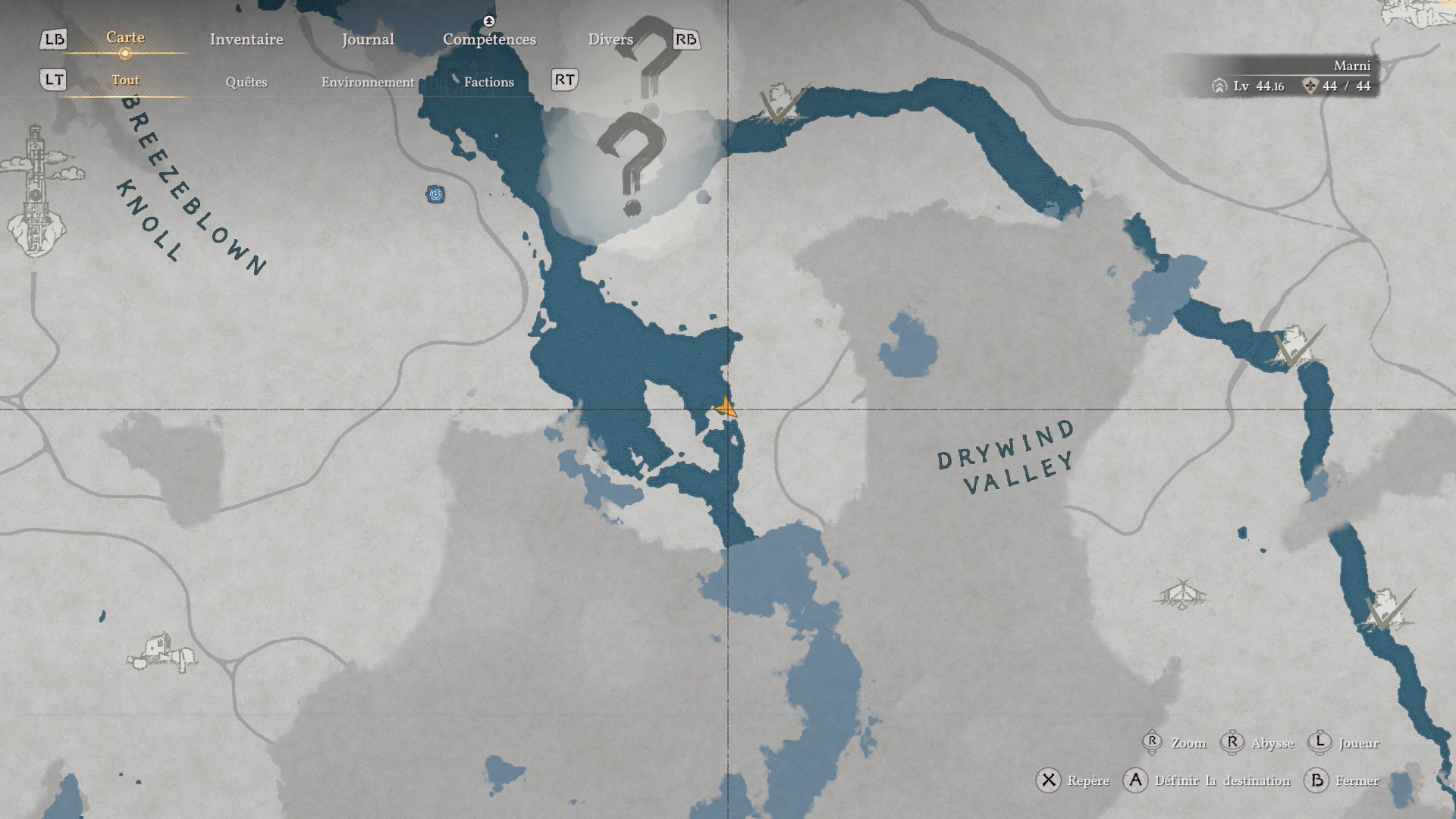 Le heaume de plates de la gloire dorée se situe dans la grotte du Gouffre au Miroir, derrière une cascade au nord-est de «Demeniss» et à l’ouest de «Drywind Valley» . Dans la zone indiquée, vous trouverez plusieurs cascades : dirigez-vous vers celle de droite, reconnaissable à une statuette composée de trois pierres à ses pieds. Une fois devant, approchez-vous de l’eau et utilisez la compétence « Perforation » pour traverser le mur d’eau. Vous accéderez alors à une grotte cachée, où se trouve le coffre contenant ce heaume.