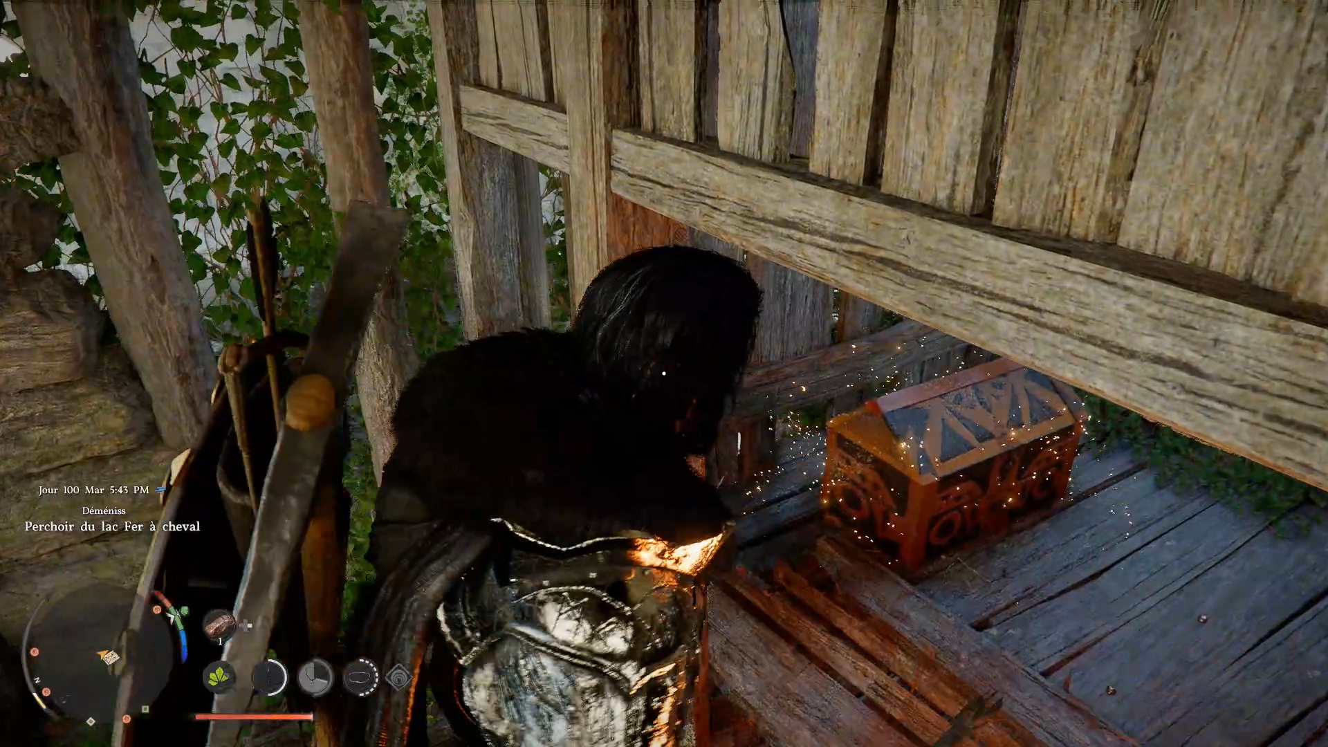 Les bottes en cuir du Vagabond de la foi se situent dans un coffre au Perchoir du lac Fer à cheval, à l’est de « Demeniss » et au nord de « Gorthak ». Une fois devant la cabane sur l’eau, dirigez-vous vers sa base, près de l’eau, pour repérer un passage bloqué par des planches en bois. Utilisez un « coup de paume » pour les briser et accéder au coffre contenant les bottes.
