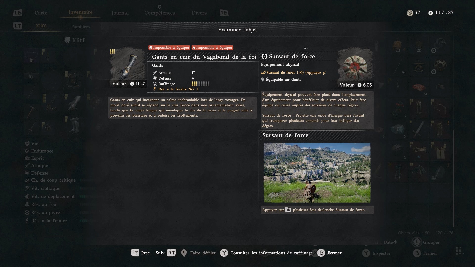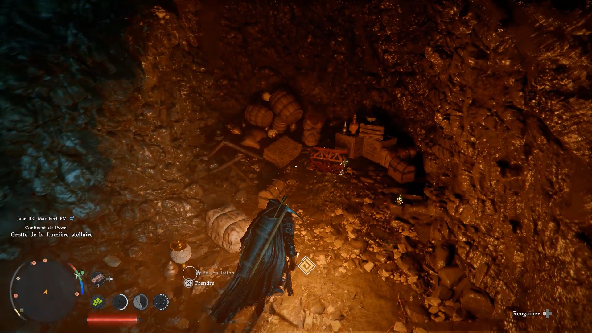 Les gants en cuir du Vagabond de la foi se situent derrière une cascade au sud-est de la région « Demeniss », au nord-ouest de « Gorthak ». À cet emplacement, vous trouverez deux cascades : dirigez-vous vers celle de gauche, reconnaissable à une statuette composée de trois pierres. Une fois devant, approchez-vous de l’eau et utilisez la compétence « Perforation » pour traverser le mur d’eau. Vous accéderez alors à une grotte cachée, où se trouve le coffre contenant ces gants.
