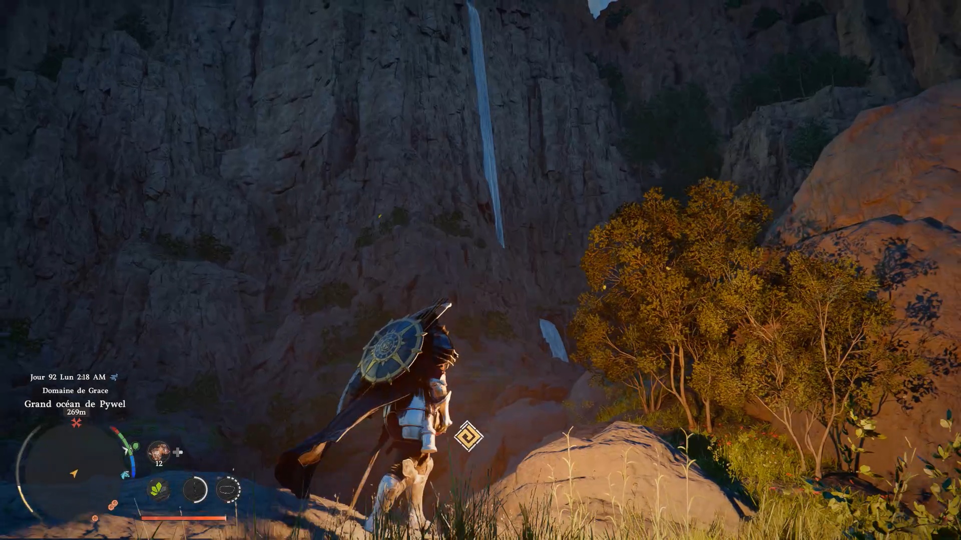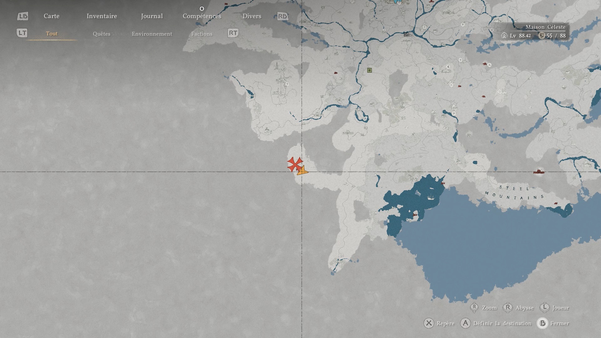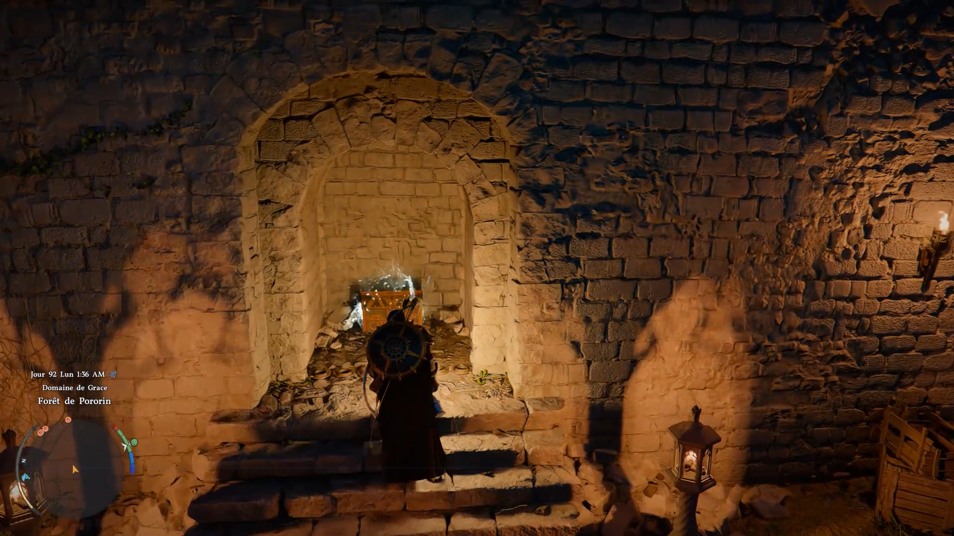La cape en cuir des Roseaux du Couchant se situe dans un coffre au niveau du Domaine de Grace, au nord-ouest de « Steel Mountains ». À l’emplacement indiqué, vous trouverez un coffre situé derrière une grille. De chaque côté de celle-ci se trouvent deux lanternes. Allumez-les pour débloquer l’accès au coffre contenant la cape.