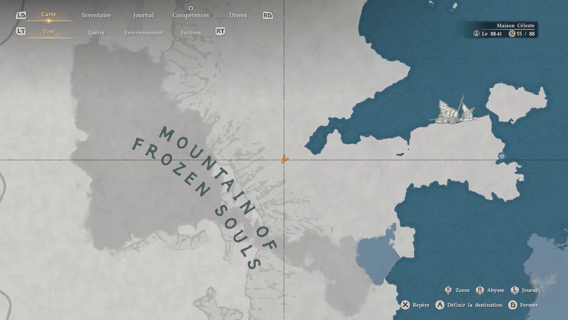L’armure en cuir des Roseaux du Couchant se situe derrière une cascade au nord de « Mountain of Frozen Souls », dans la « Grotte de l’Écho des Vagues », tout au sud-ouest de la carte. Une fois devant la cascade, à proximité d’une statuette composée de trois pierres, approchez-vous de l’eau et utilisez la compétence « Perforation » pour traverser le mur d’eau. Vous accéderez alors à une grotte cachée où se trouve le coffre contenant l’armure.