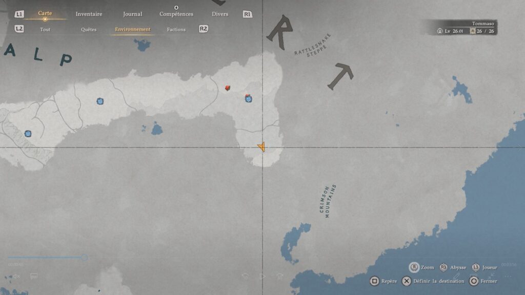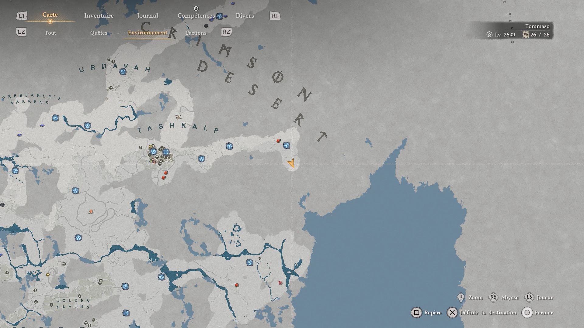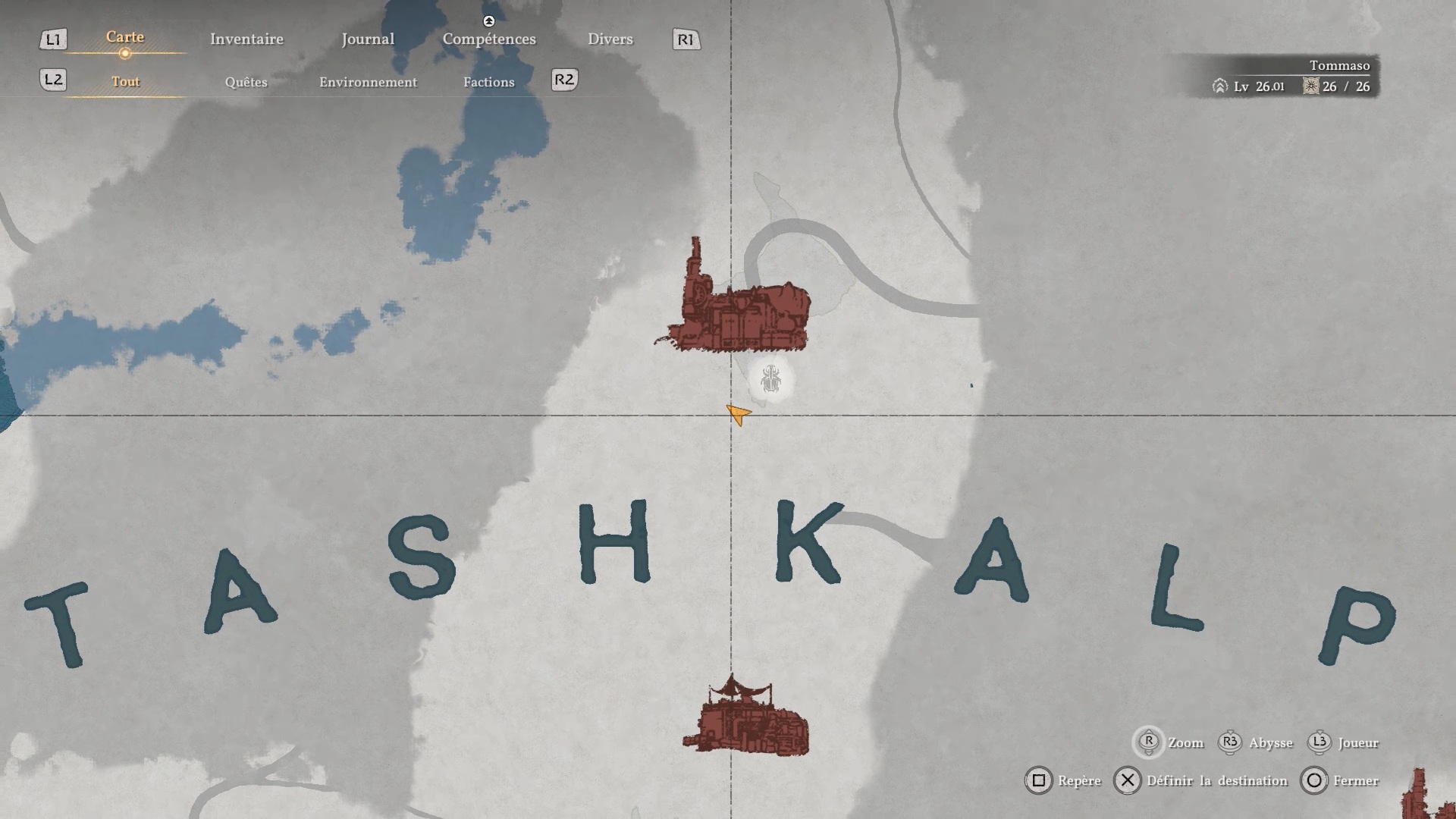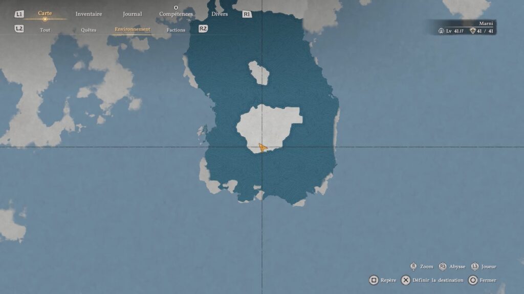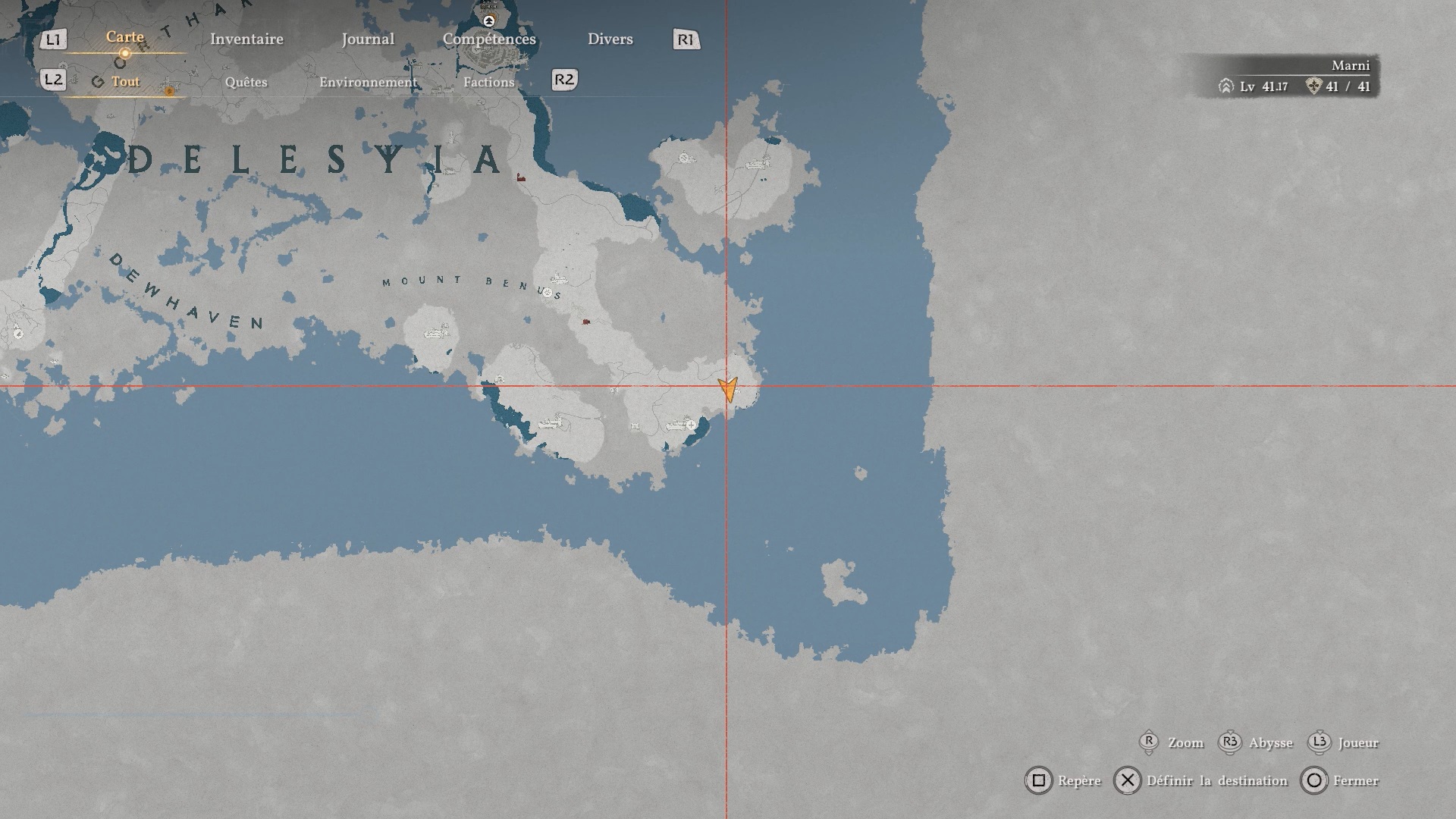 À cet emplacement, vous trouverez deux cascades : dirigez-vous vers celle de droite, près d’une statuette de pierre. Une fois devant, approchez-vous de l’eau et utilisez la compétence « Perforation » pour traverser le mur d’eau. Vous accéderez alors à une grotte cachée, où se trouve le coffre contenant le bouclier.