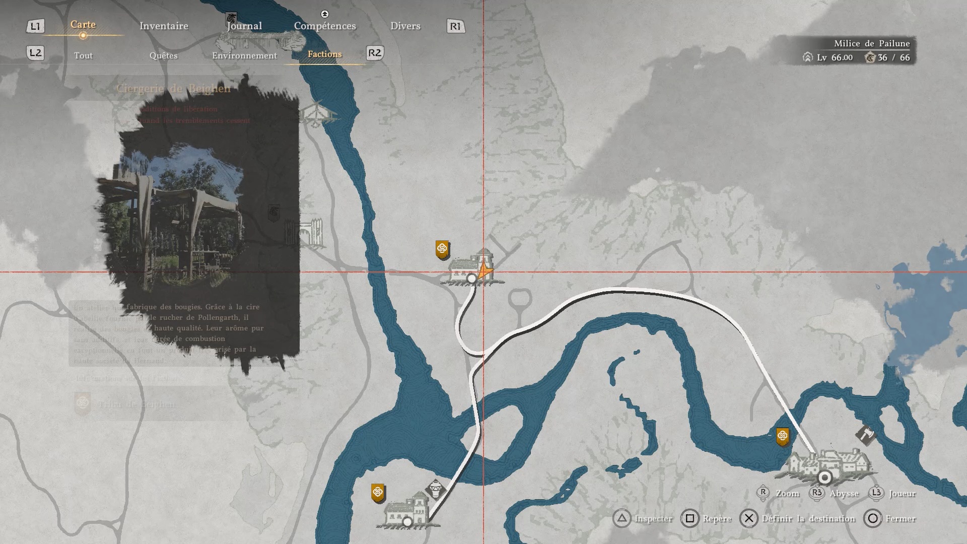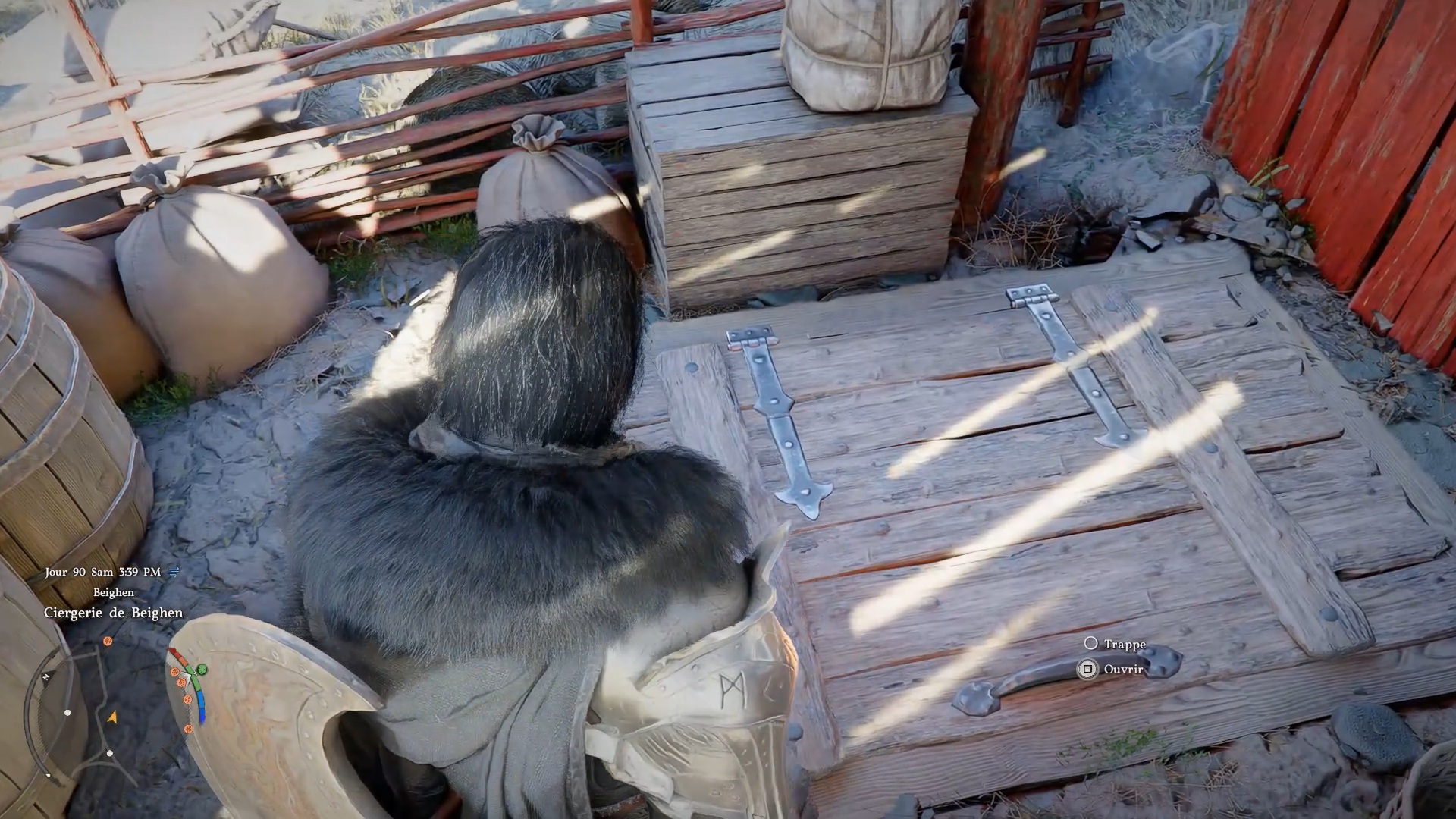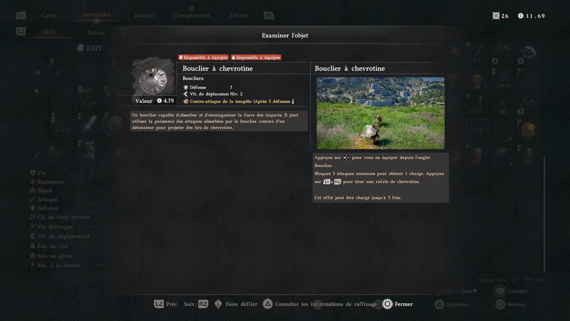 Le grand bouclier de Lucon se trouve sous la « Ciergerie de Beighen », au sud-est de « Pailune ». Au centre de la ciergerie, repérez une trappe au sol près d’un feu. Ouvrez-la pour accéder au sous-sol. Sur la droite, un trou dans le mur permet de passer : accroupissez-vous pour vous faufiler et atteindre la salle contenant le coffre.