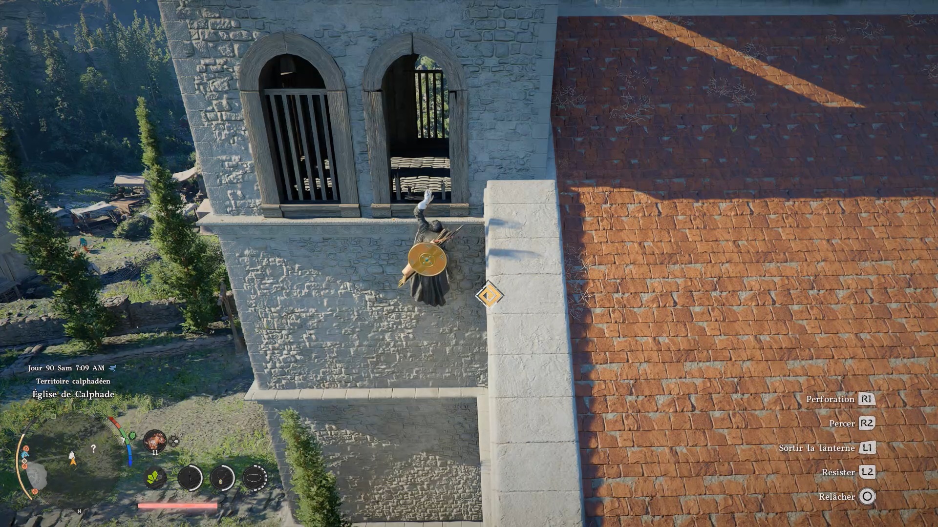 Le bouclier de la conviction se situe sous le clocher de l’élise de Calphade au nord d’hernand. L’église est situé au nord-ouest du bassin « Deepfog basin ». Une fois devant l’église repérez une fenetre ouverte sur le côté droit sous le clocher. Grimpez à la fe,êtrr et rentre sous le clocher poutr ouver le coffre contenant le bouclier.