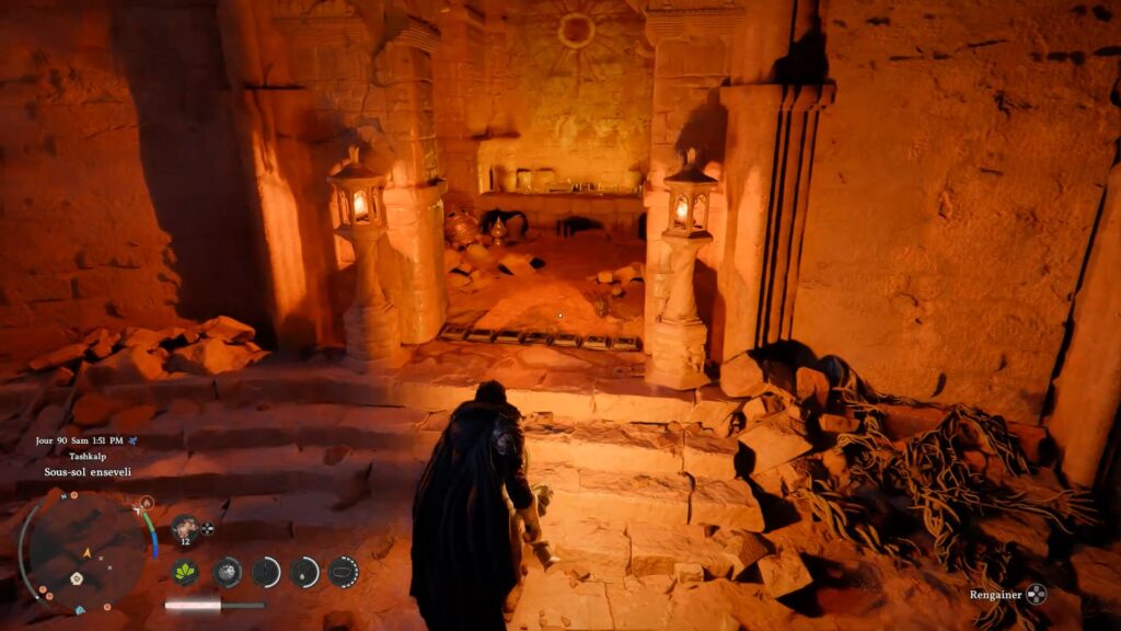 Le bouclier flamboyant se situe dans un sous-sol enseveli, au sud-est de Crimson Desert, à proximité d’un point de téléportation. Progressez dans le désert pour repérer une entrée en forme d’alcôve menant au sous-sol. Avancez à l’intérieur et éliminez les ennemis présents. Vous pourrez ensuite récupérer le bouclier dans une salle éclairée par deux lanternes, de part et d’autre.