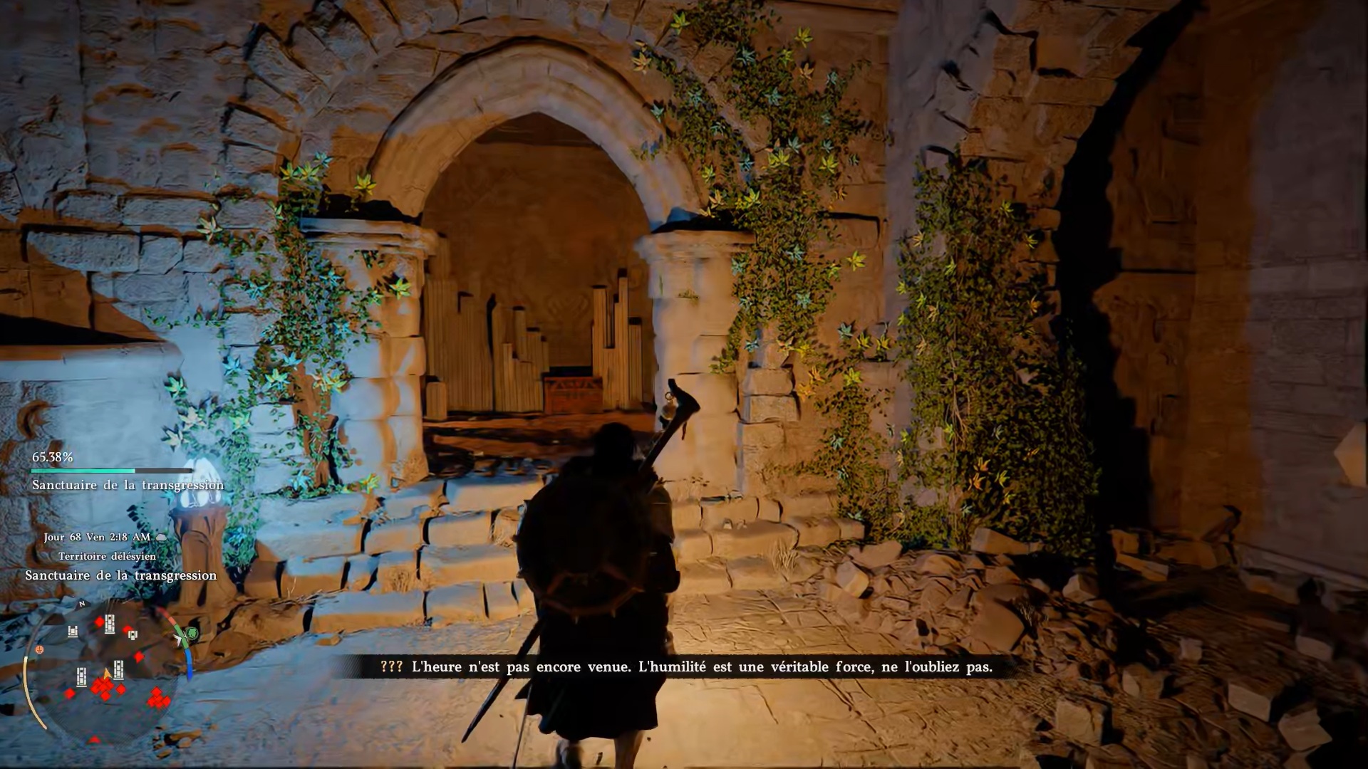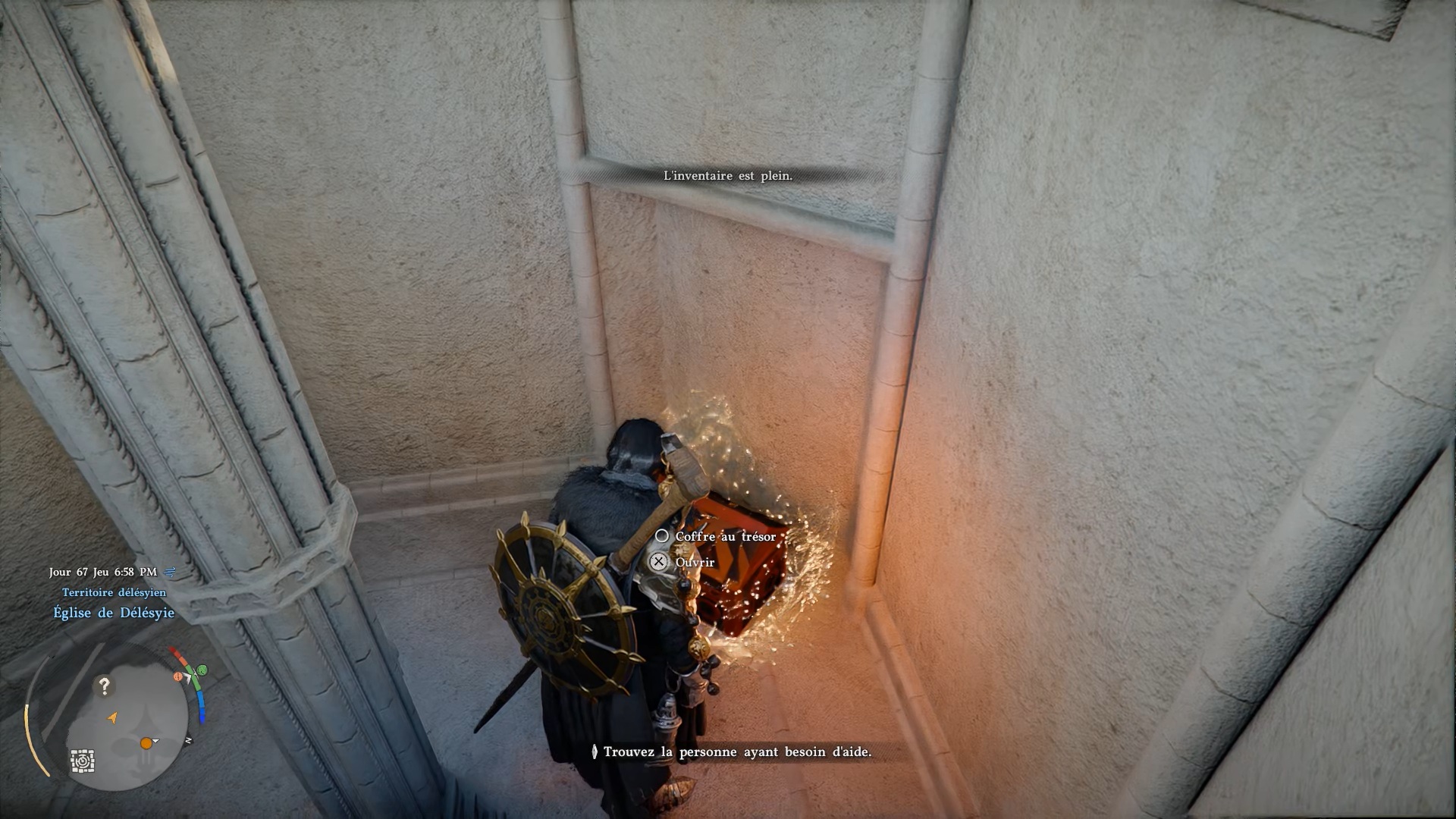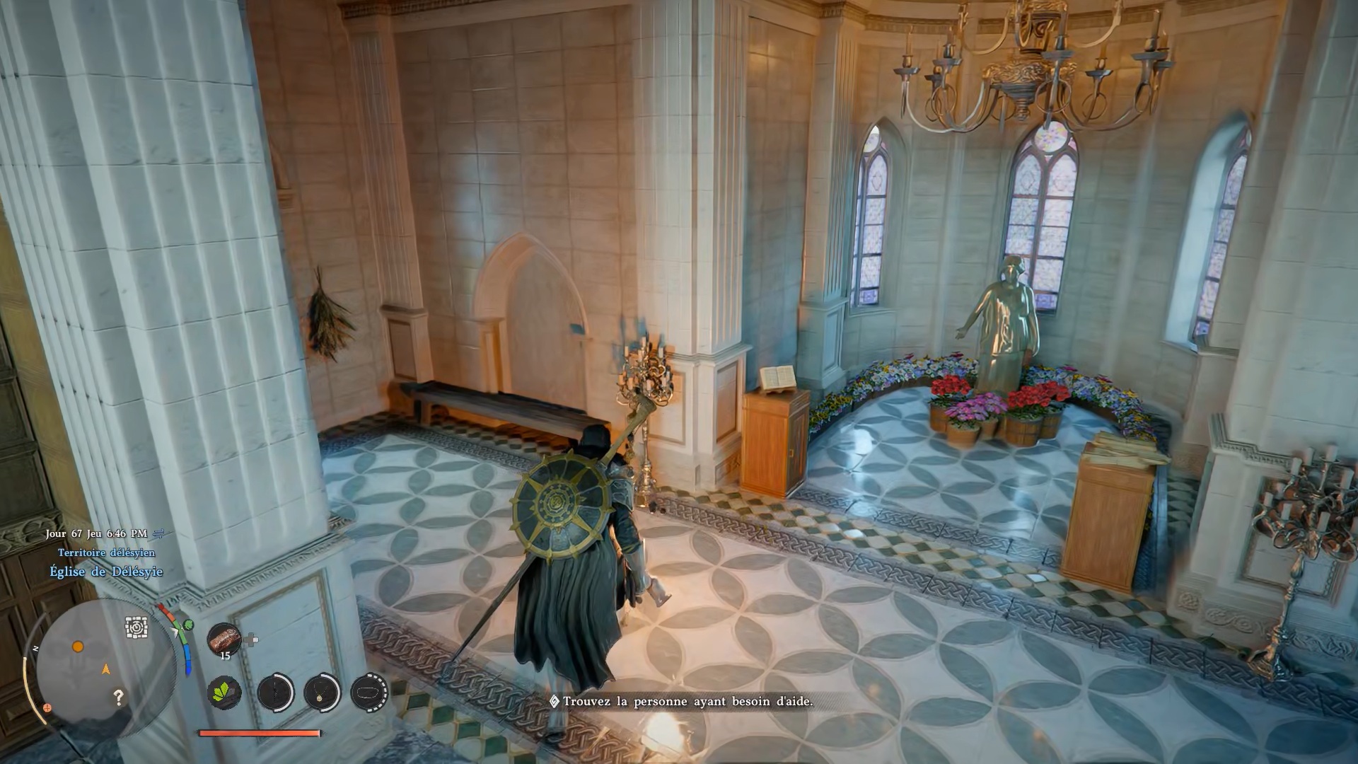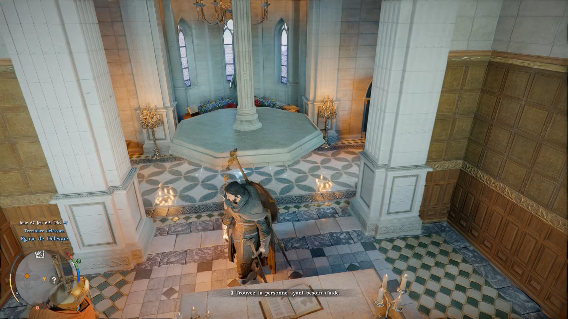 Une fois dans l’église, dirigez-vous à l’est pour faire face à une statue entourée de deux chandeliers. Allumez les bougies des deux chandeliers afin de faire apparaître un ascenseur qui vous mènera au coffre contenant l’épée de Nask.