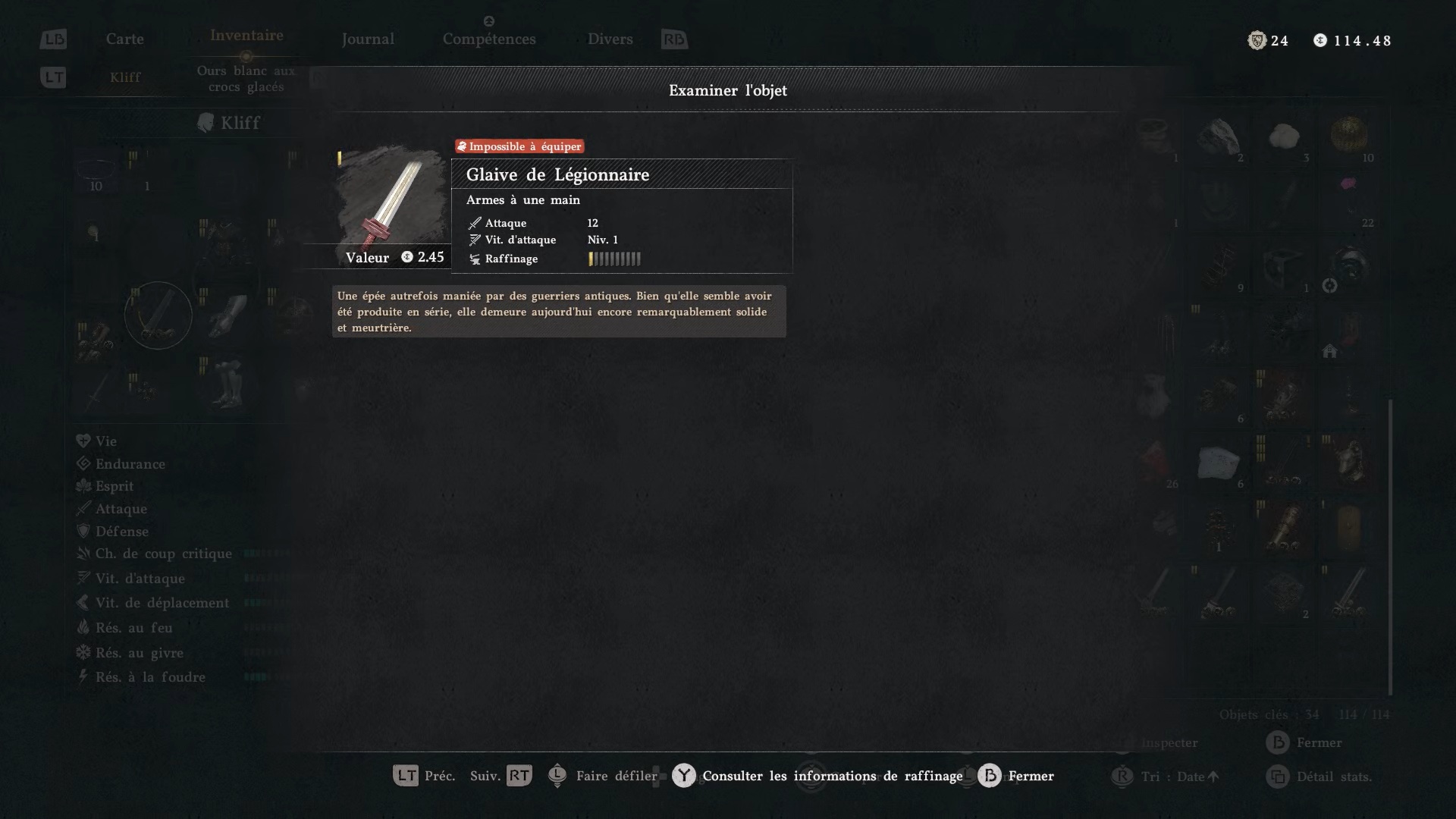 Le glaive de légionnaire se situe dans un coffre au niveau des cascades de la zone « Three Saints Falls », située au nord-est de « Hernand », près de la lettre « D » sur la carte.