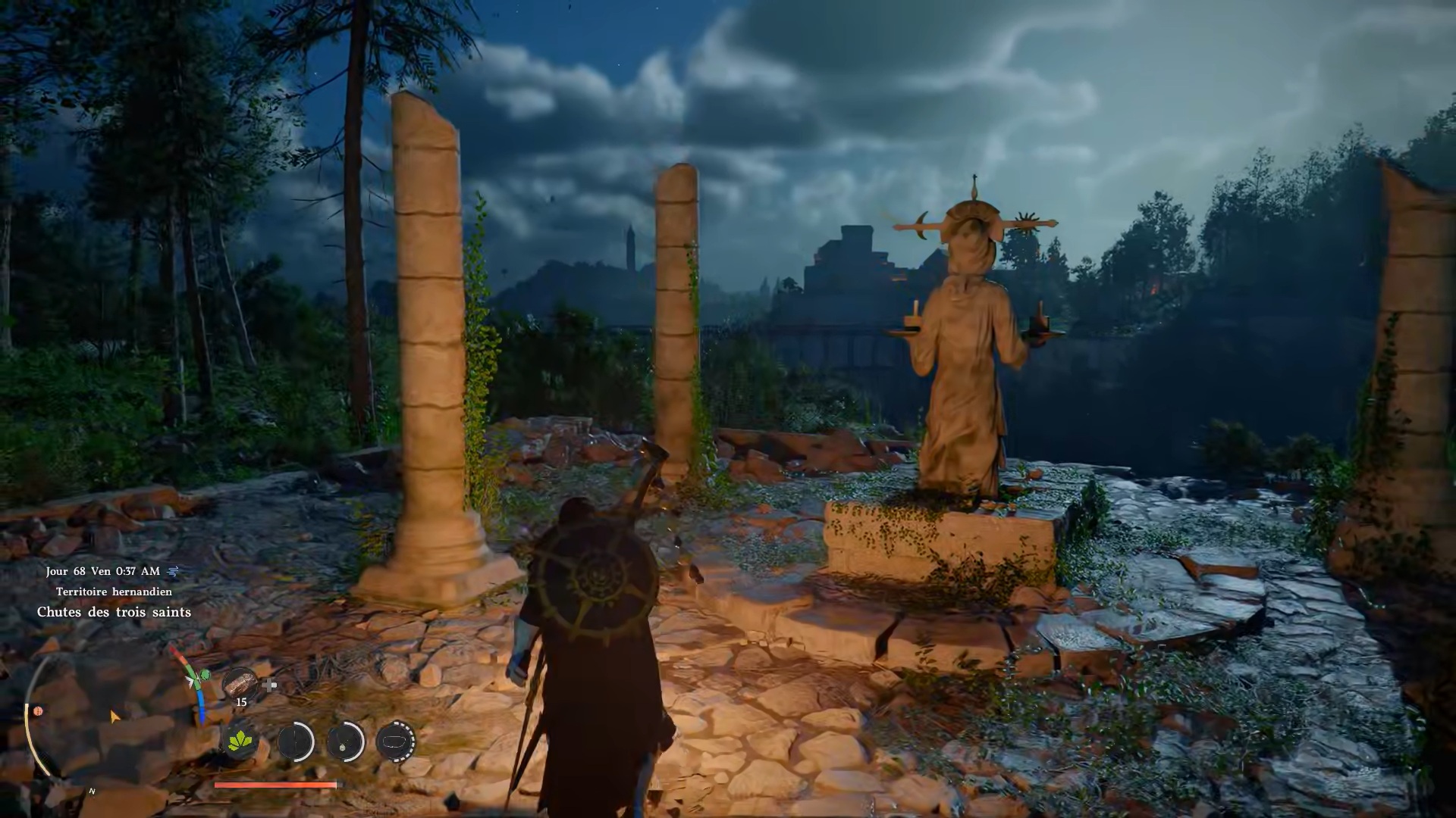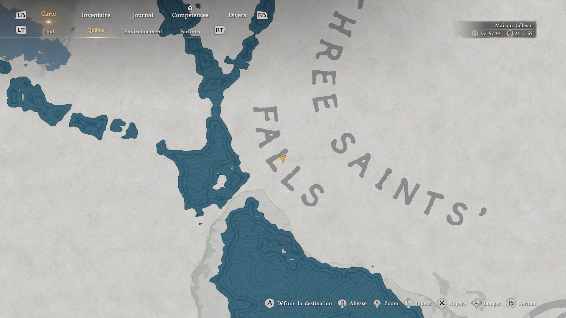 Dirigez-vous au niveau de la lettre « L » de gauche de « Falls » sur la carte pour trouver une statue surplombant l’étendue d’eau des cascades. Allumez les deux bougies de la statue afin de déverrouiller une grille menant au coffre situé derrière celle-ci.