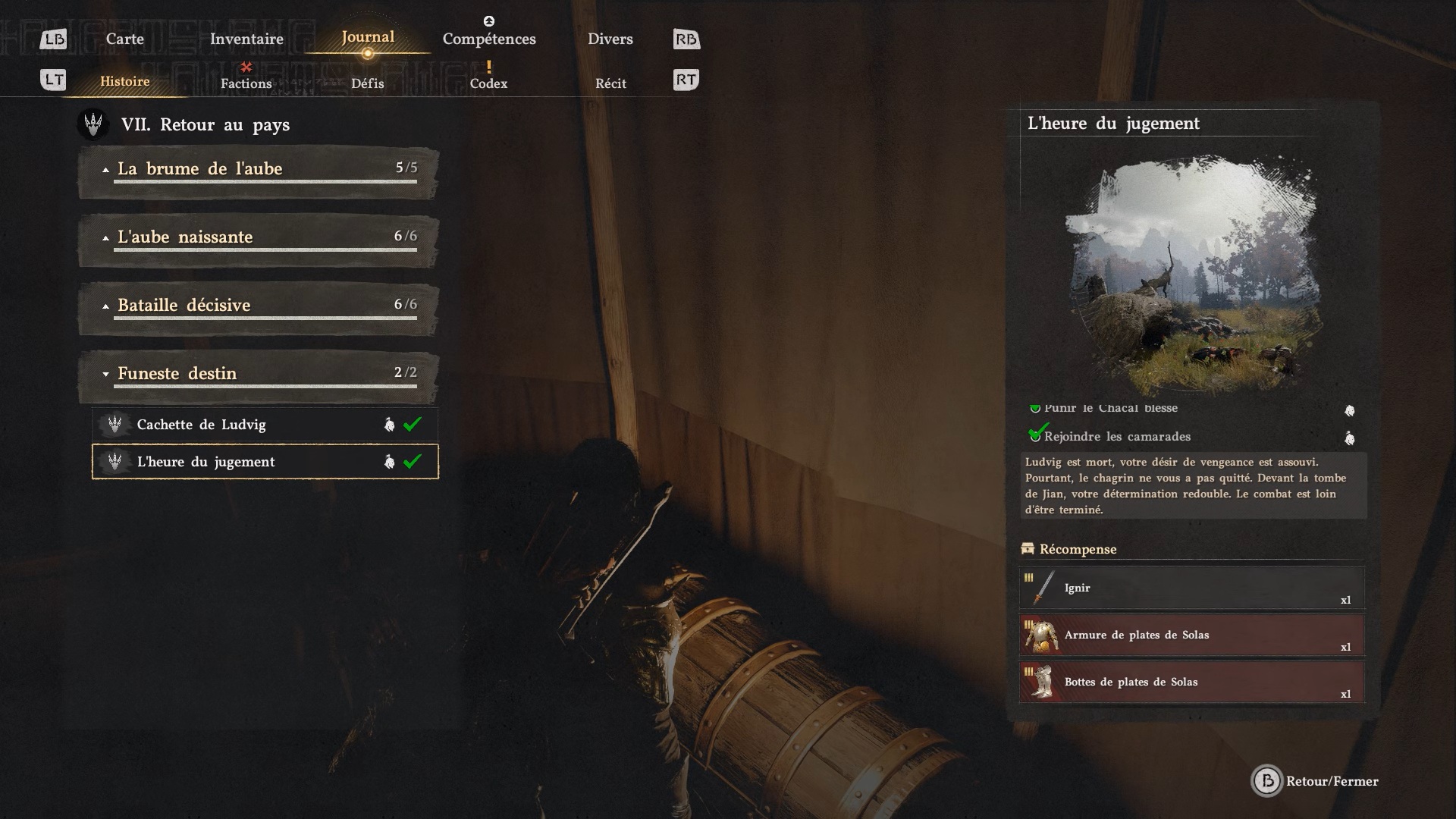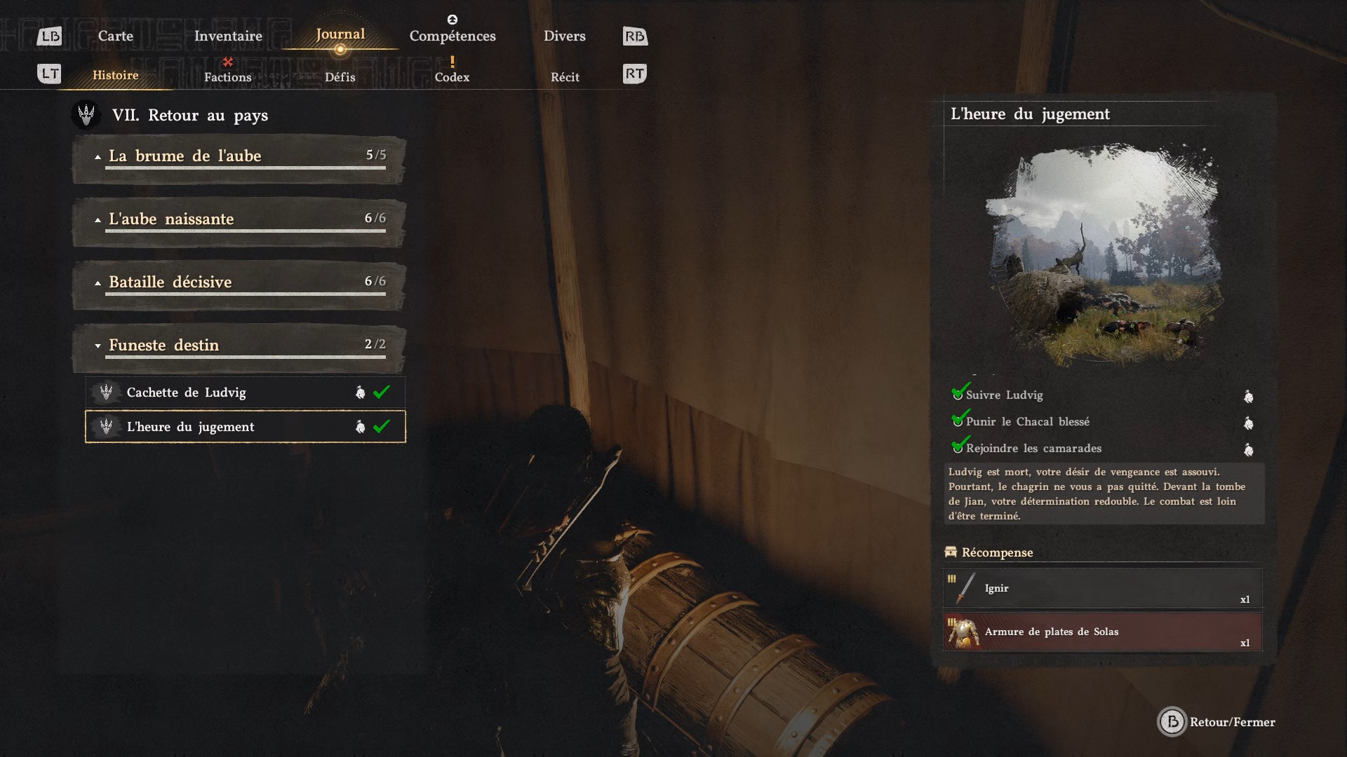 Vous obtenez l‘amure de plates de Solas en récompense de la quête « Funeste destin », durant le chapitre 7 « Retour au pays ».