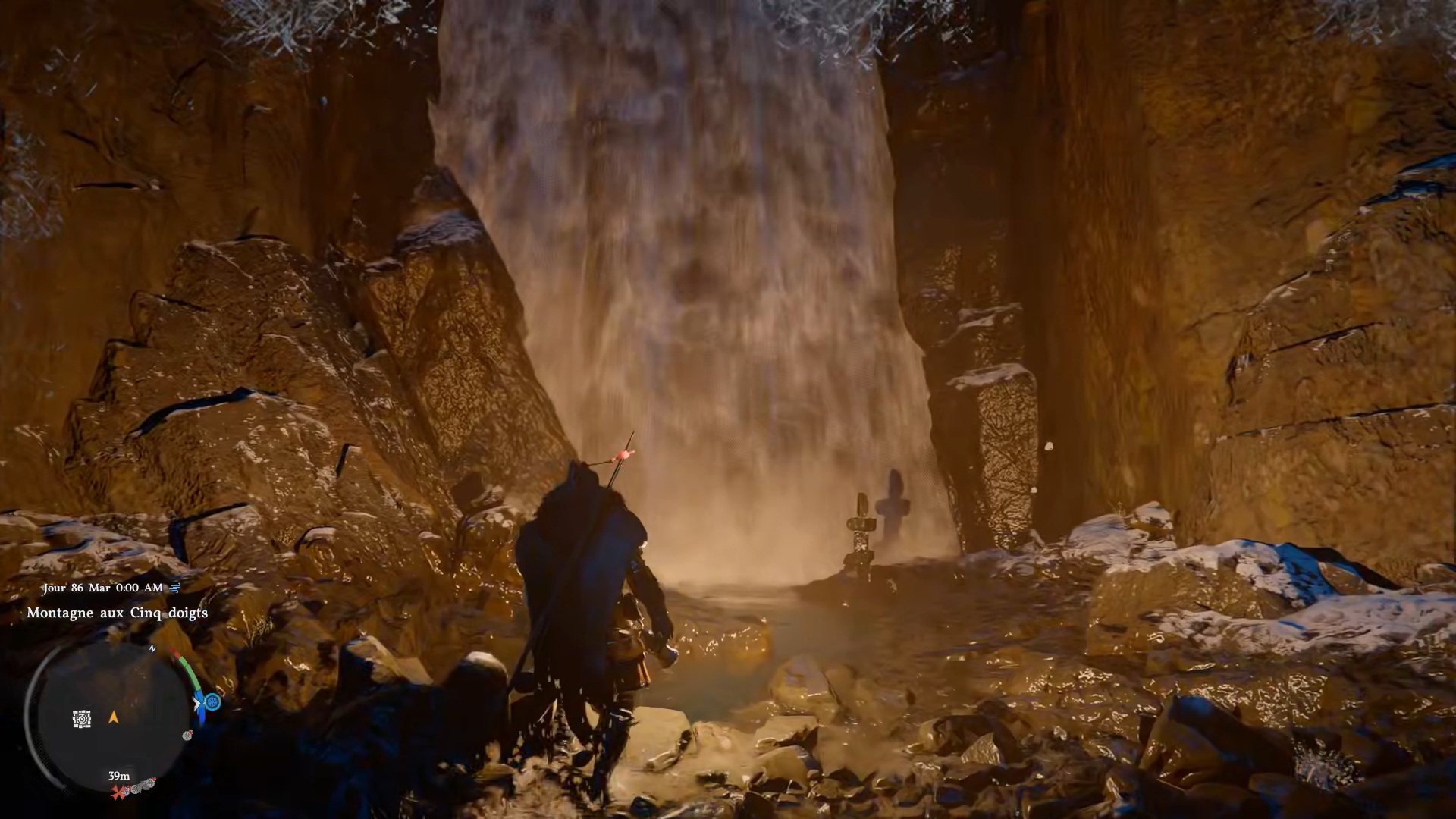 Les bottes de plates d’Ashad se situent derrière une cascade, en contrebas du point de téléportation tout au nord-ouest de « Pailune », à l’ouest de « Silver Wolf Mountain ». Depuis le point de téléportation, avancez puis sautez depuis la falaise en face de vous pour rejoindre une cascade. Une fois devant, approchez-vous de l’eau et utilisez la compétence « Perforation » pour traverser le mur d’eau. Vous accéderez alors à une grotte cachée, où se trouve le coffre contenant ces bottes.