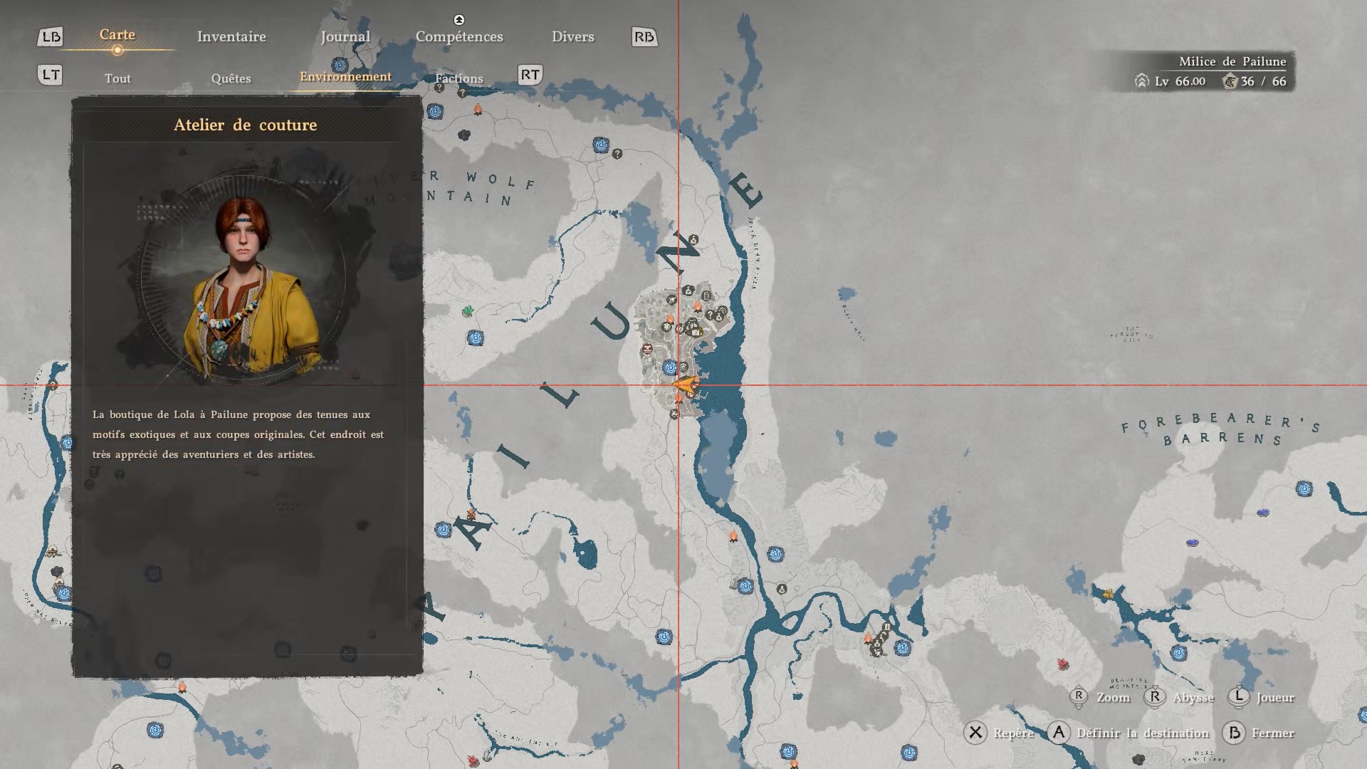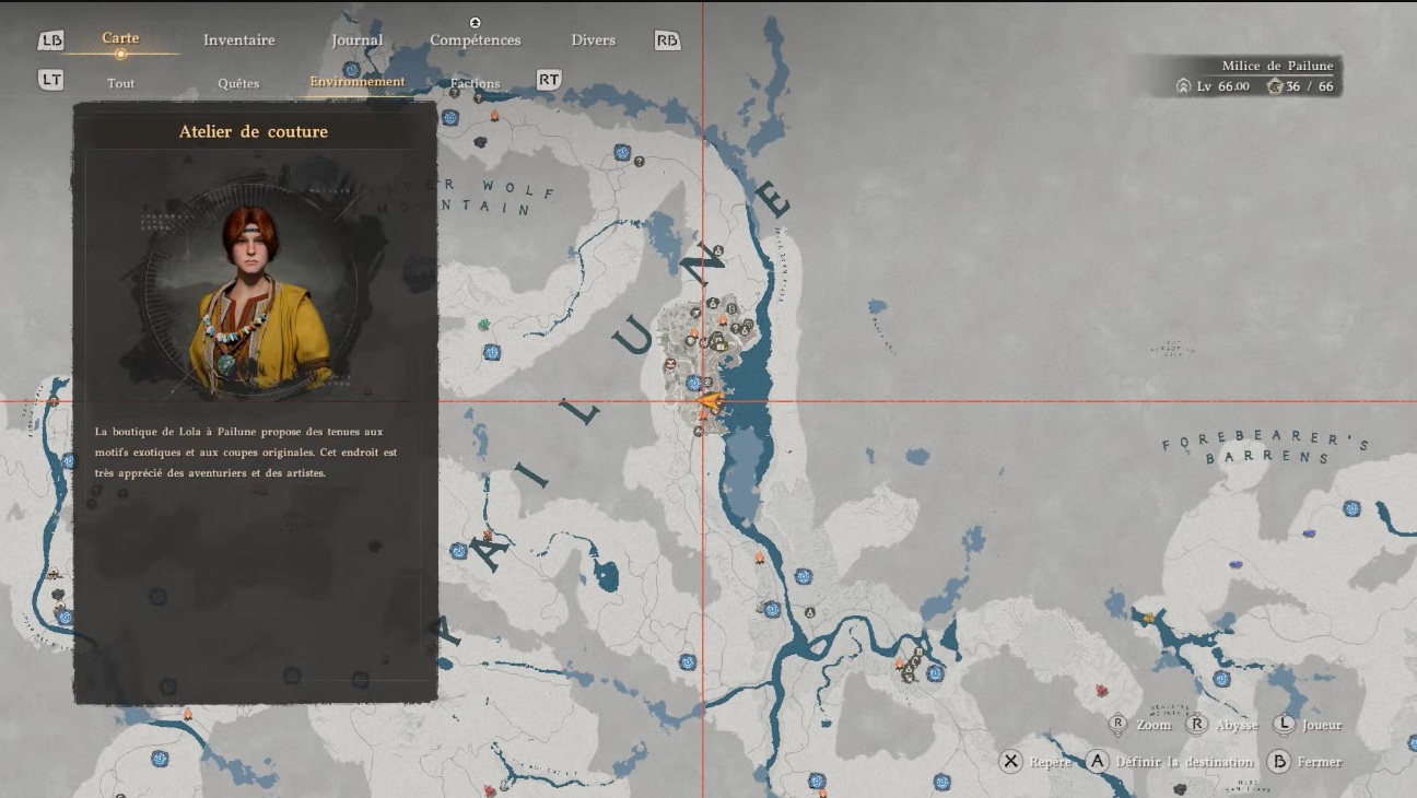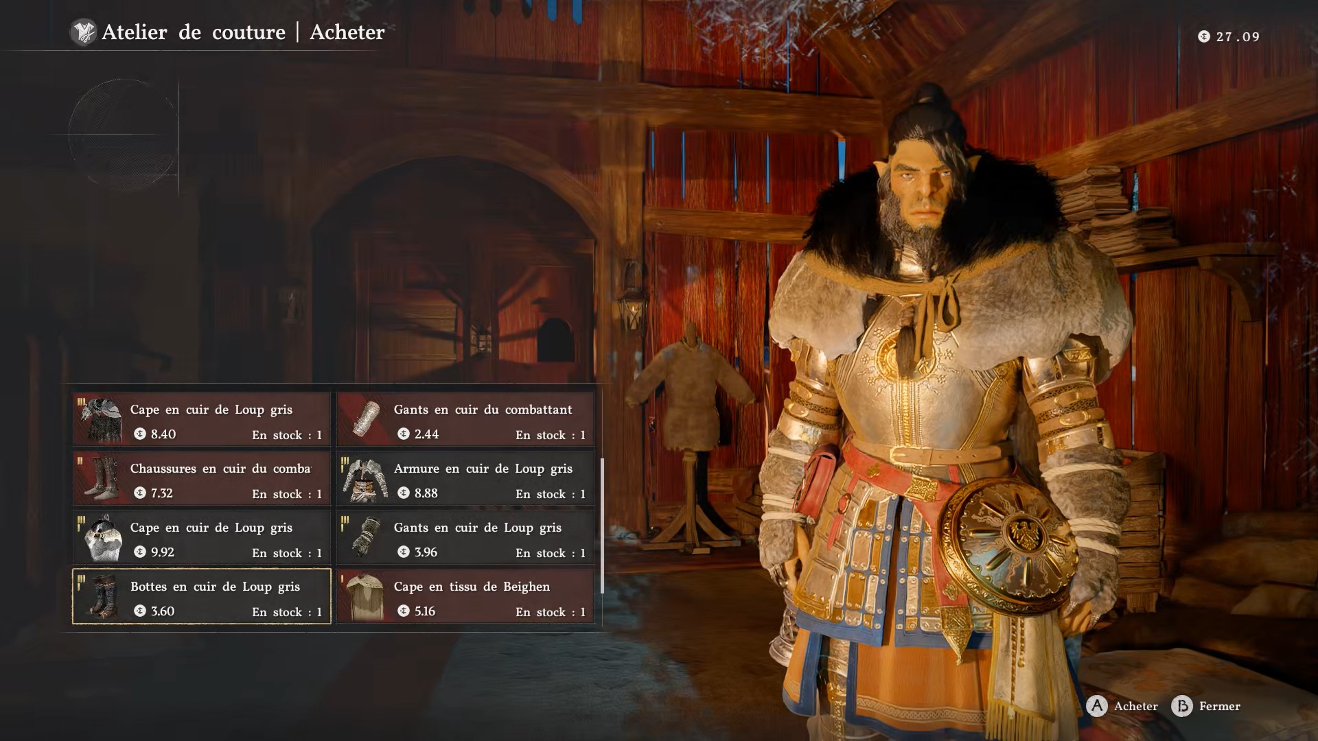 Vous pouvez acheter directement les bottes en cuir de loup gris à l’atelier de couture de Lola, dans la ville de « Pailune ». Vous devez atteindre un niveau de relation de 100 avec ce marchand pour qu’il vous propose cet équipement à la vente