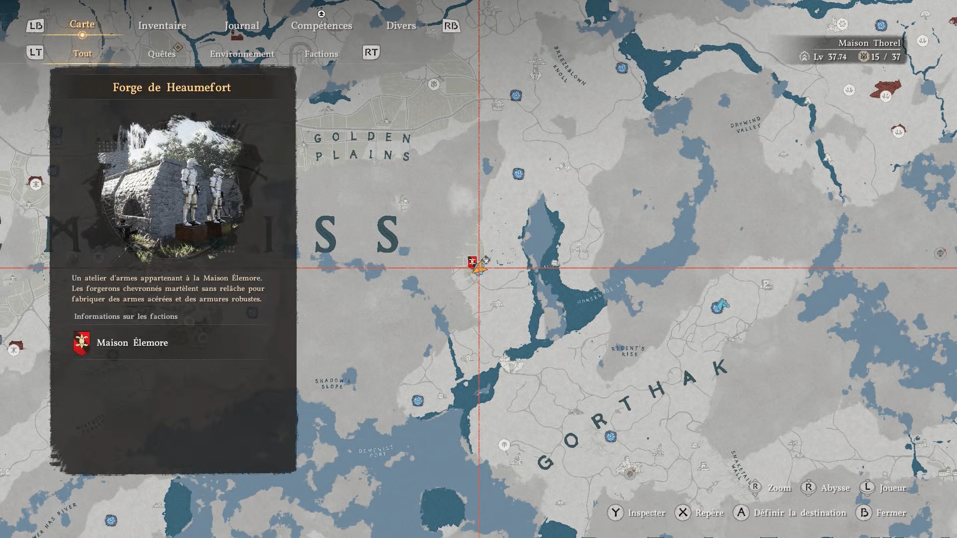 Le heaume de plates de Belkandor s’obtient en achetant son plan de fabrication auprès du marchand de la boutique du couvre-chef de « La forge de Heaumefort ». La forge se situe au sud-est de Demeniss. Vous devez atteindre un niveau de relation de 100 avec ce marchand pour qu’il vous propose ce plan. Une fois obtenu, lisez le plan, récupérez les matériaux requis, puis rendez-vous chez un forgeron pour fabriquer les gants.