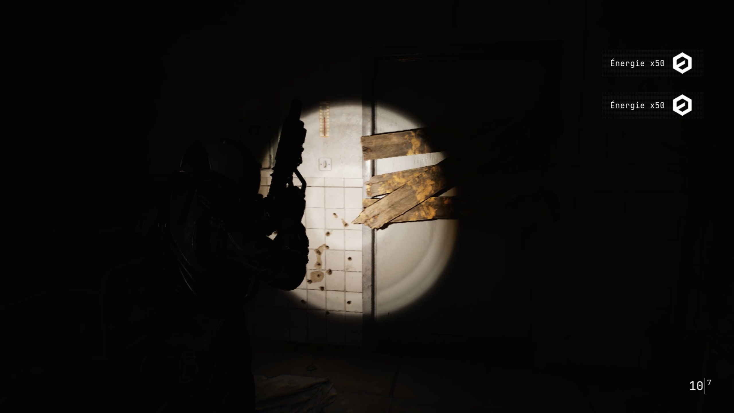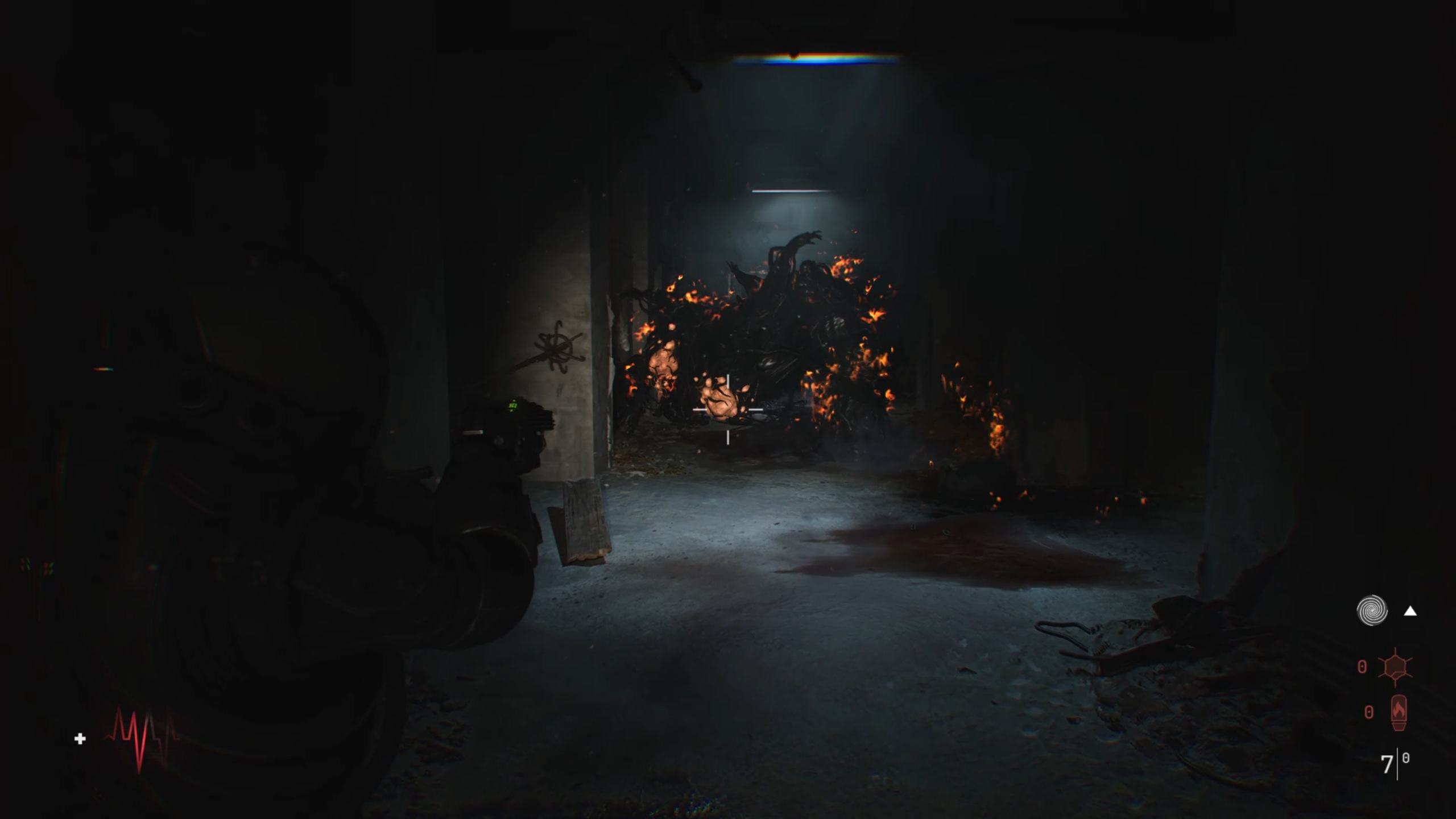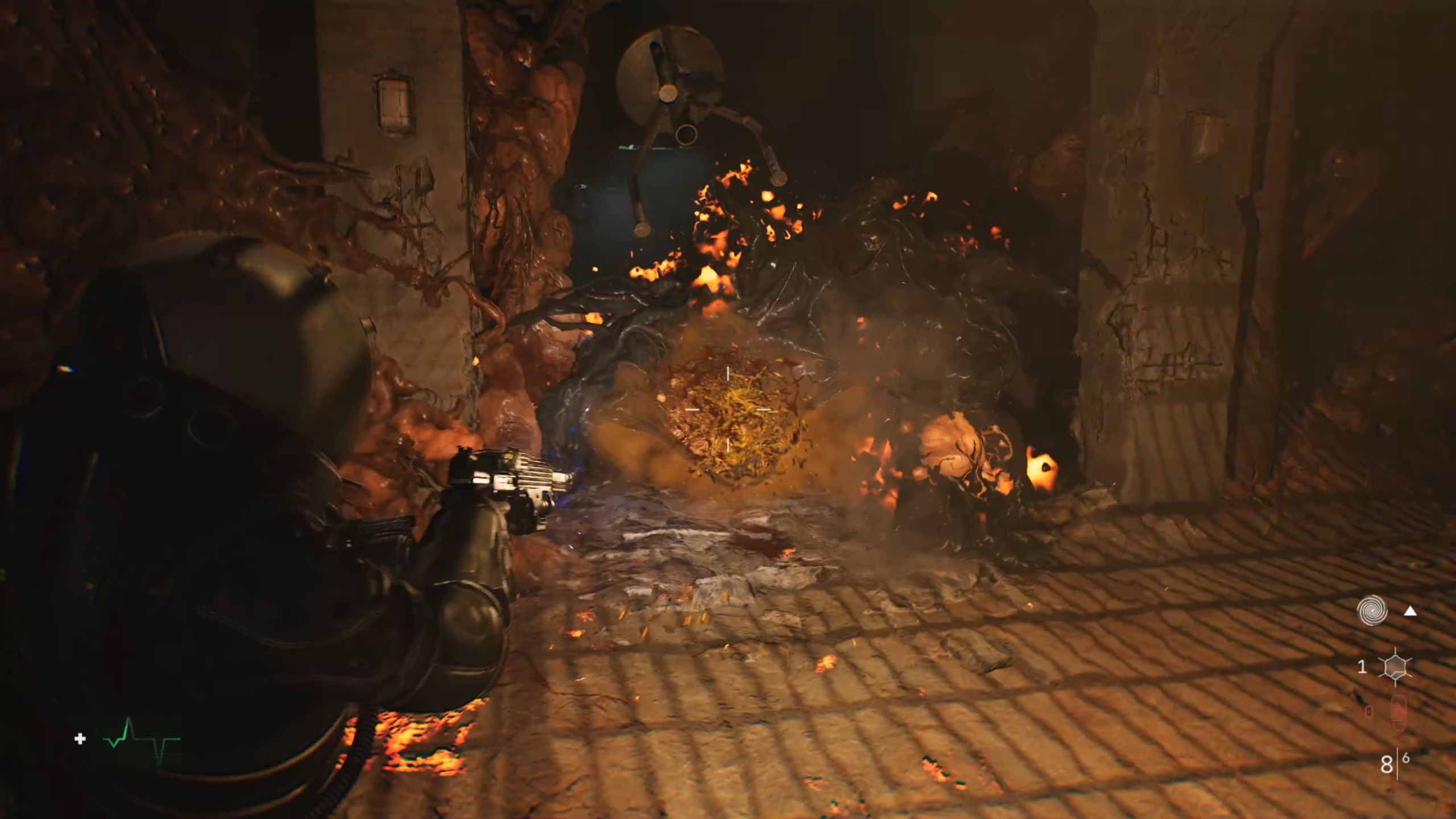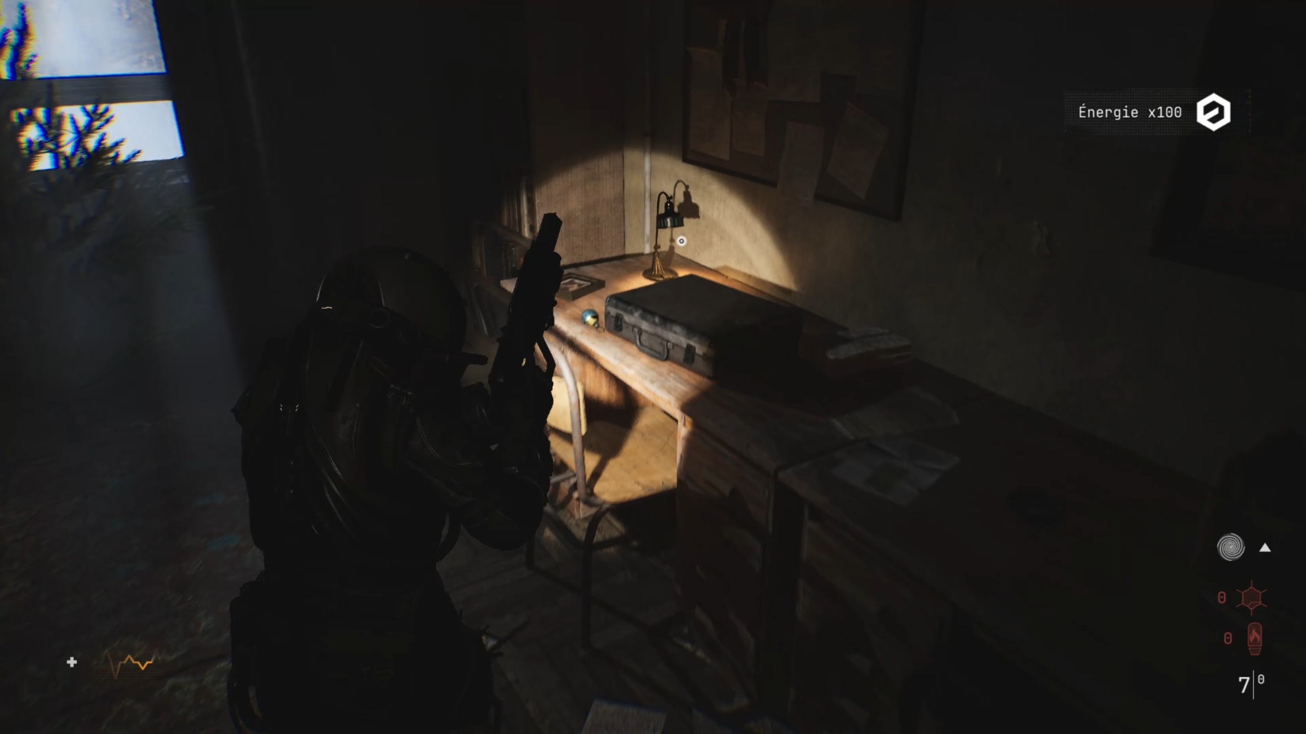 Passez ensuite les doubles portes pour trouver une ouverture dans une fenêtre. De l’autre côté, brisez les planches de bois pour revenir dans le couloir. Descendez ensuite les escaliers au bout et utilisez la torchère en bas pour éliminer la matière organique.