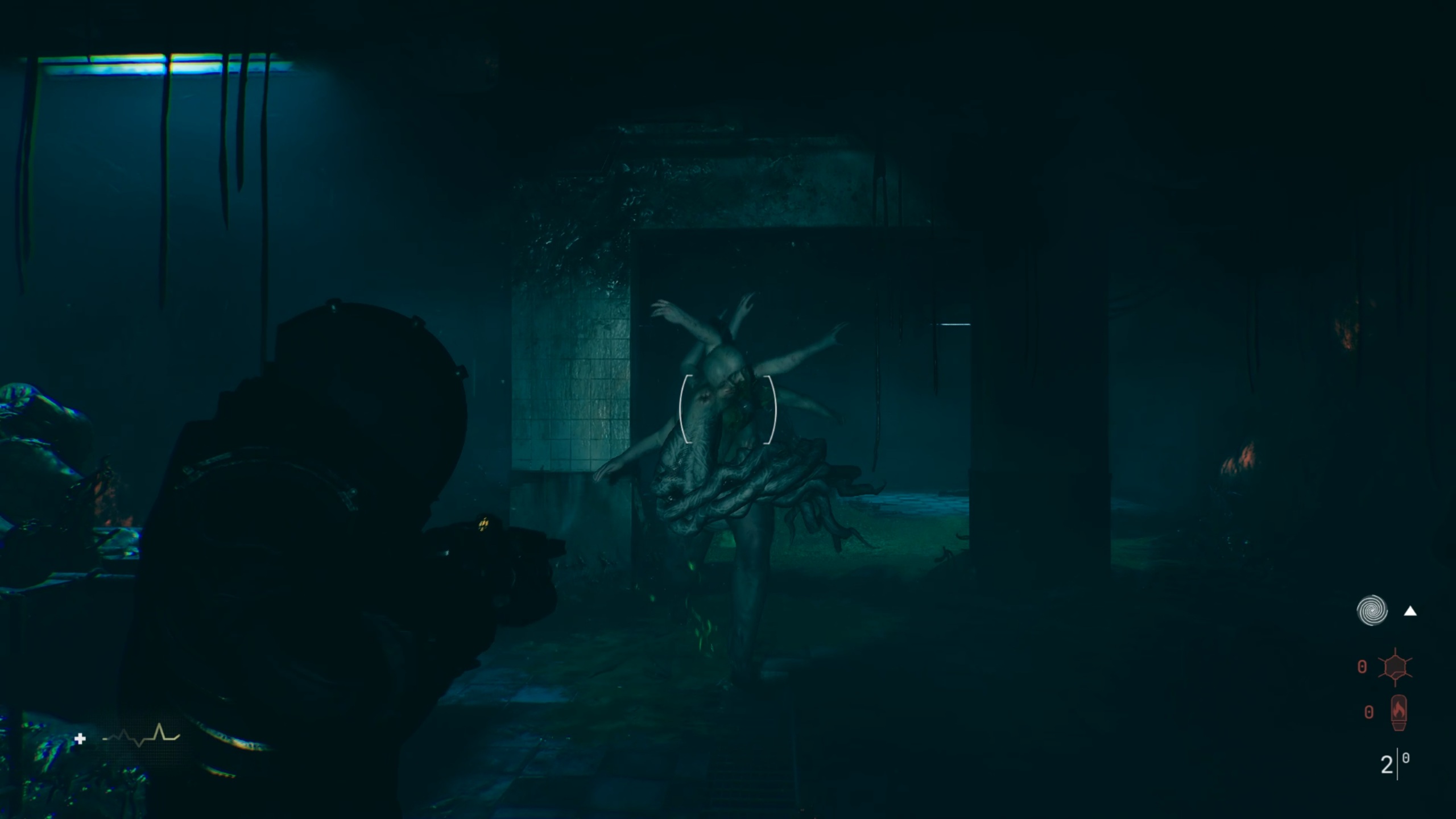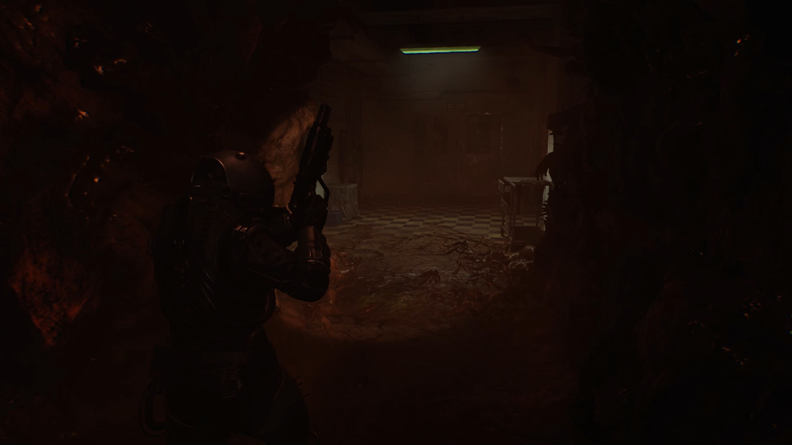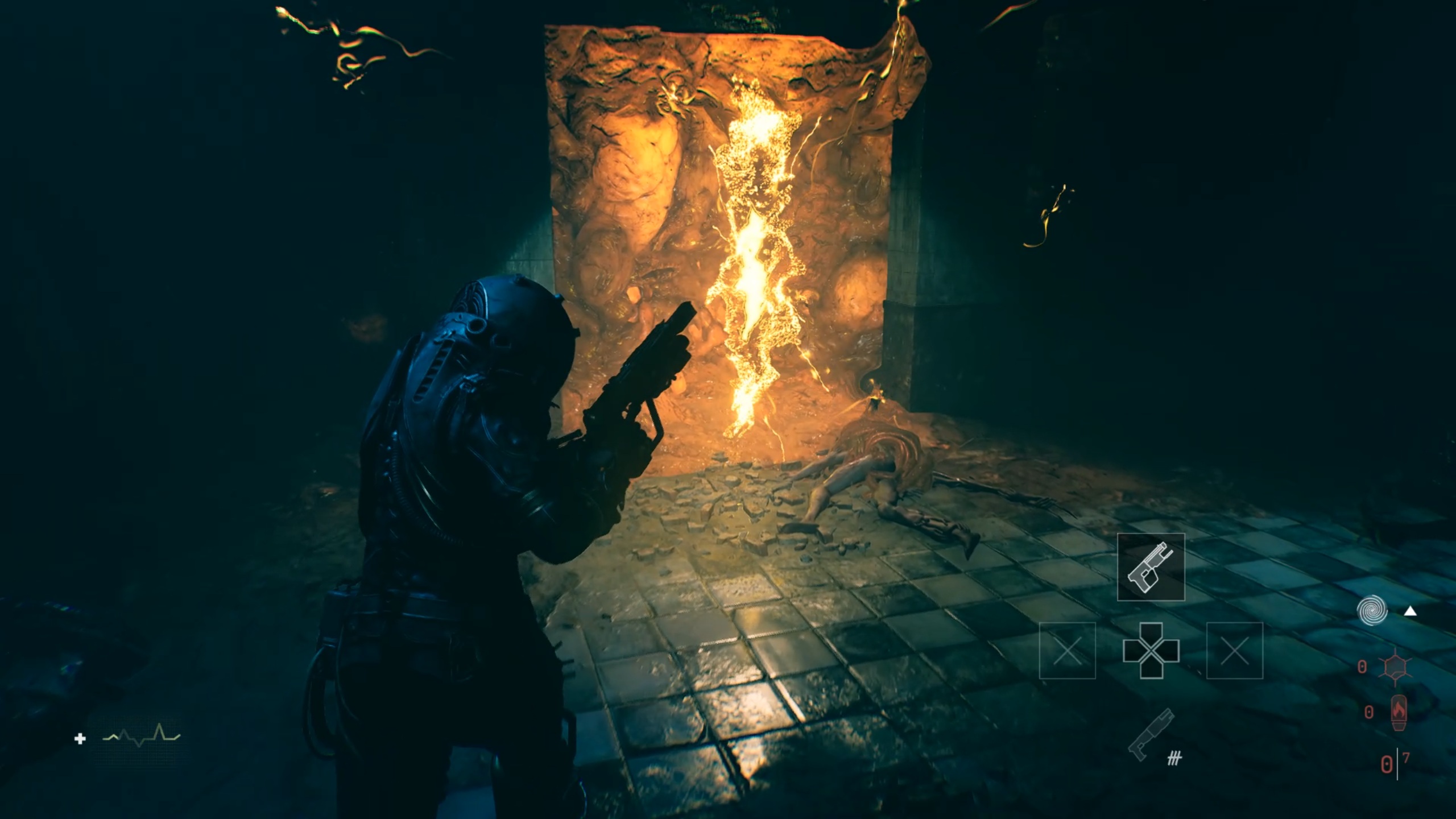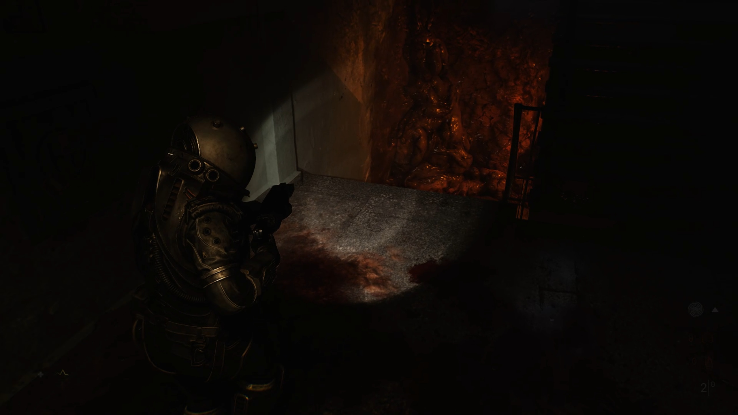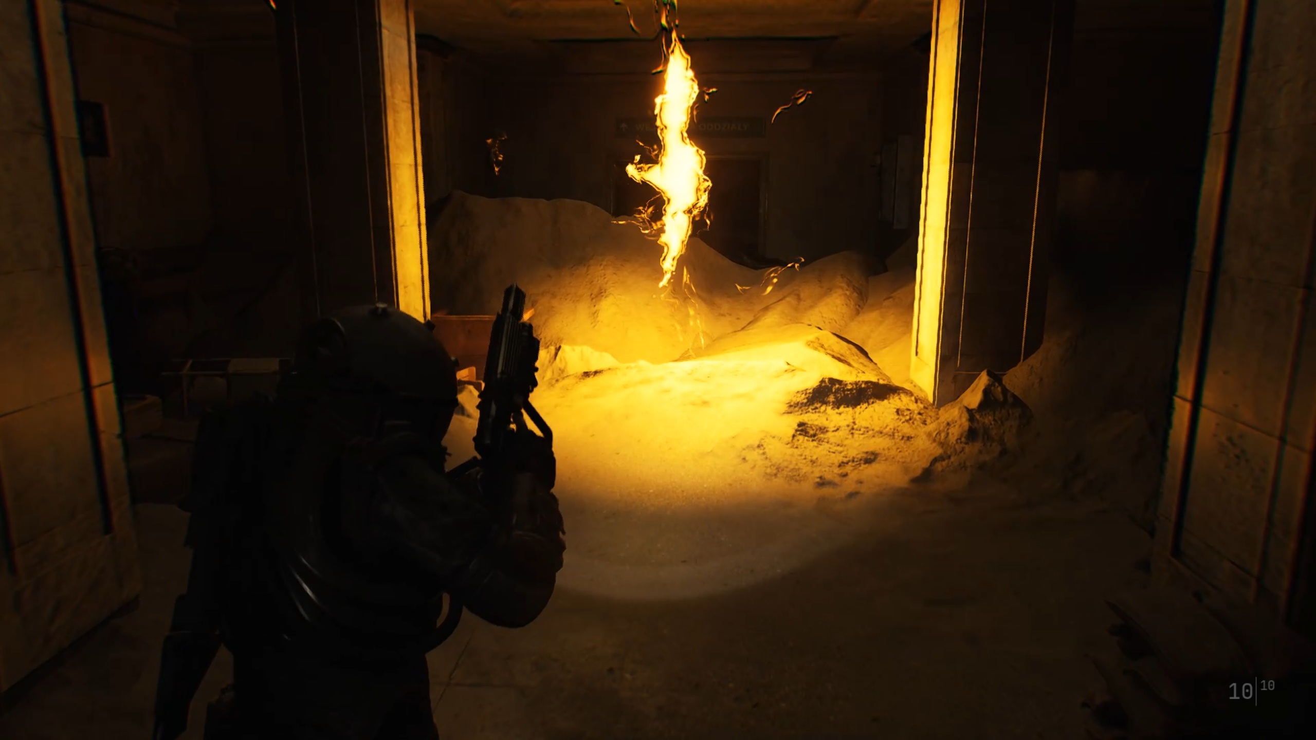 Passez ensuite les doubles portes pour trouver une ouverture dans une fenêtre. De l’autre côté, brisez les planches de bois pour revenir dans le couloir. Descendez ensuite les escaliers au bout et utilisez la torchère en bas pour éliminer la matière organique.