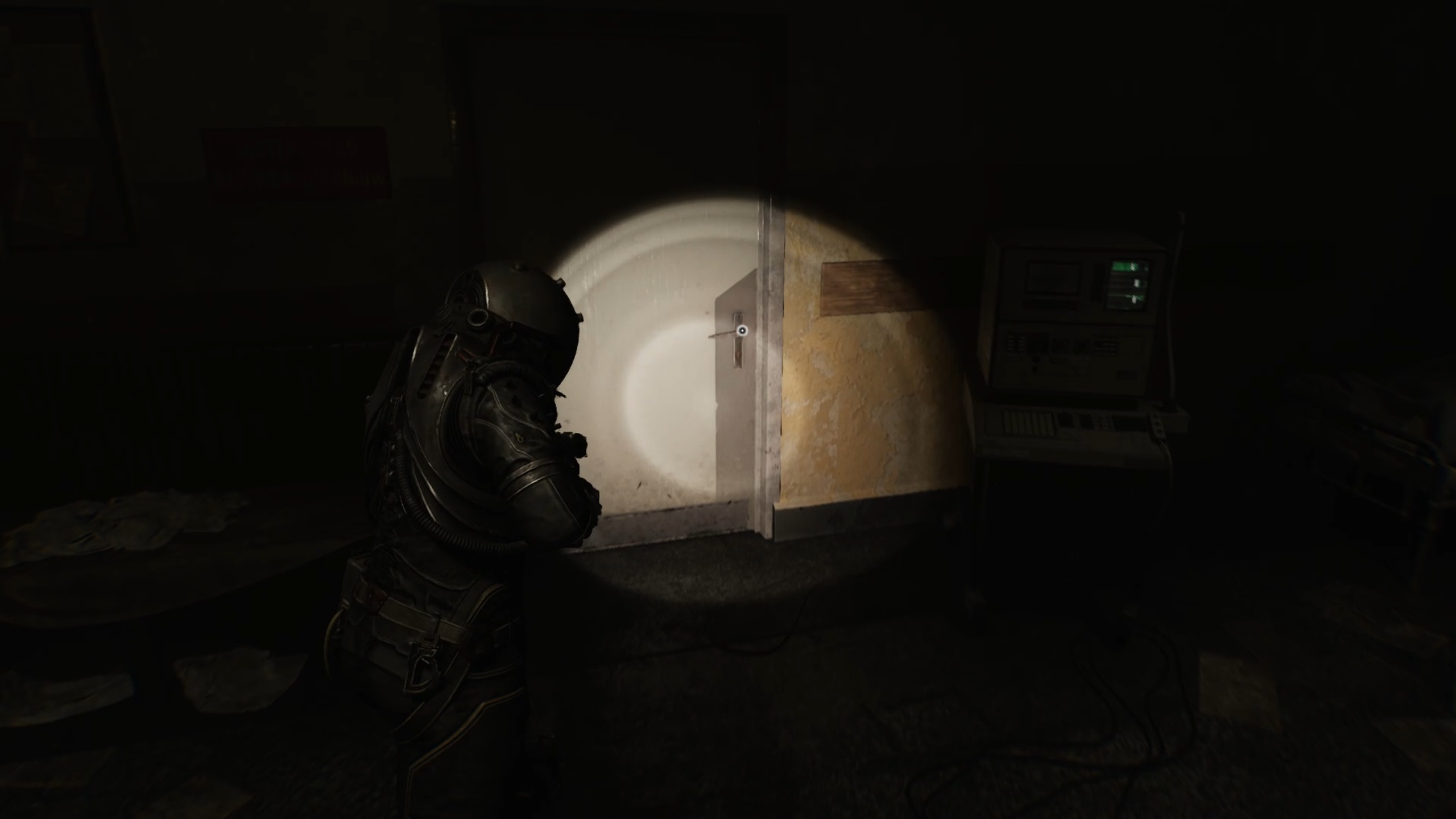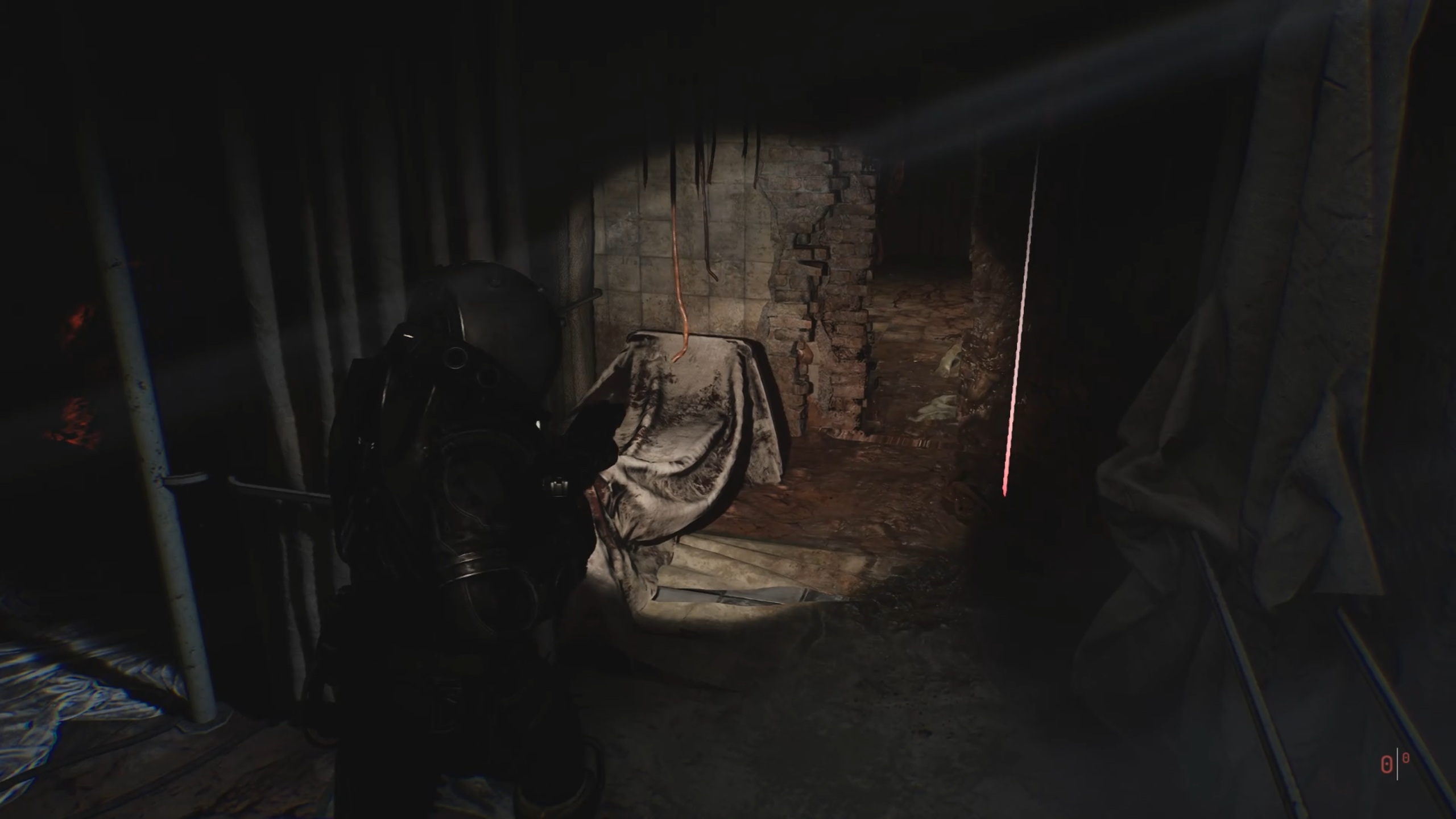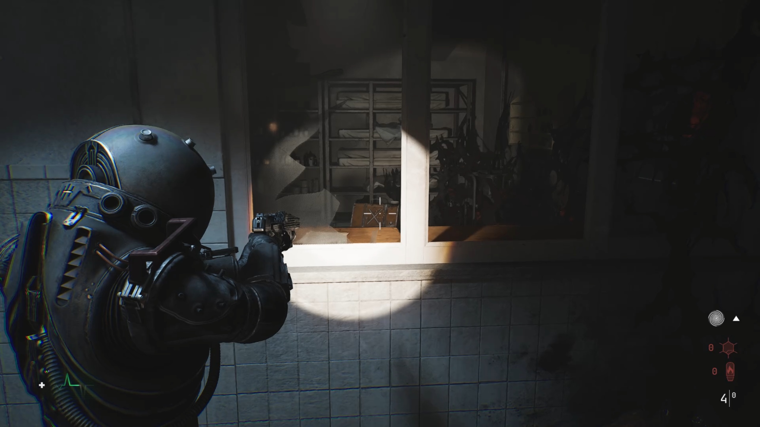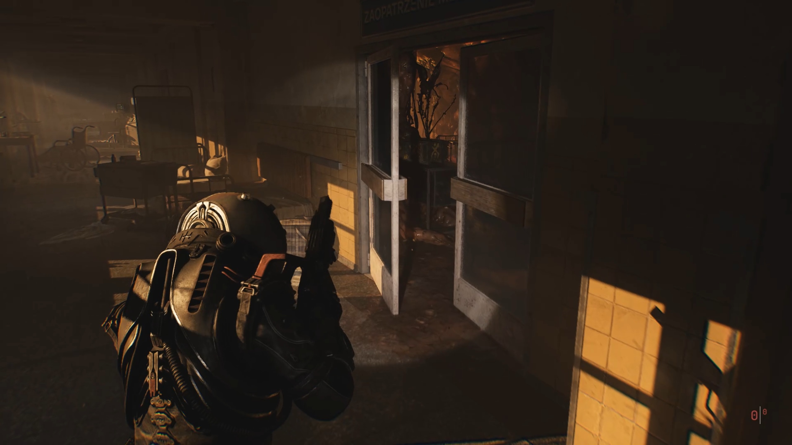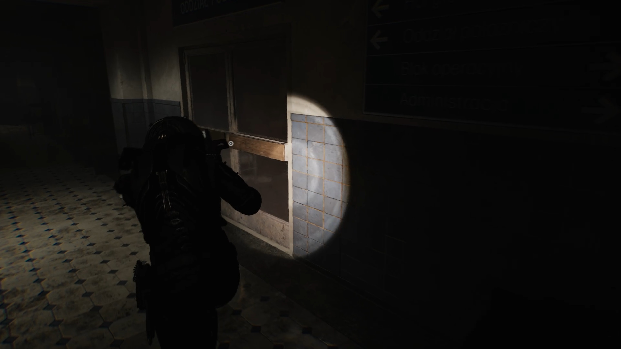 Avec la clé en main, passez la double porte du sous-sol pour entrer dans un couloir. Dirigez-vous vers une pièce sur la gauche pour déplacer un casier et accéder à un escalier. Au-dessus, vous trouverez la porte fermée du bloc opératoire.