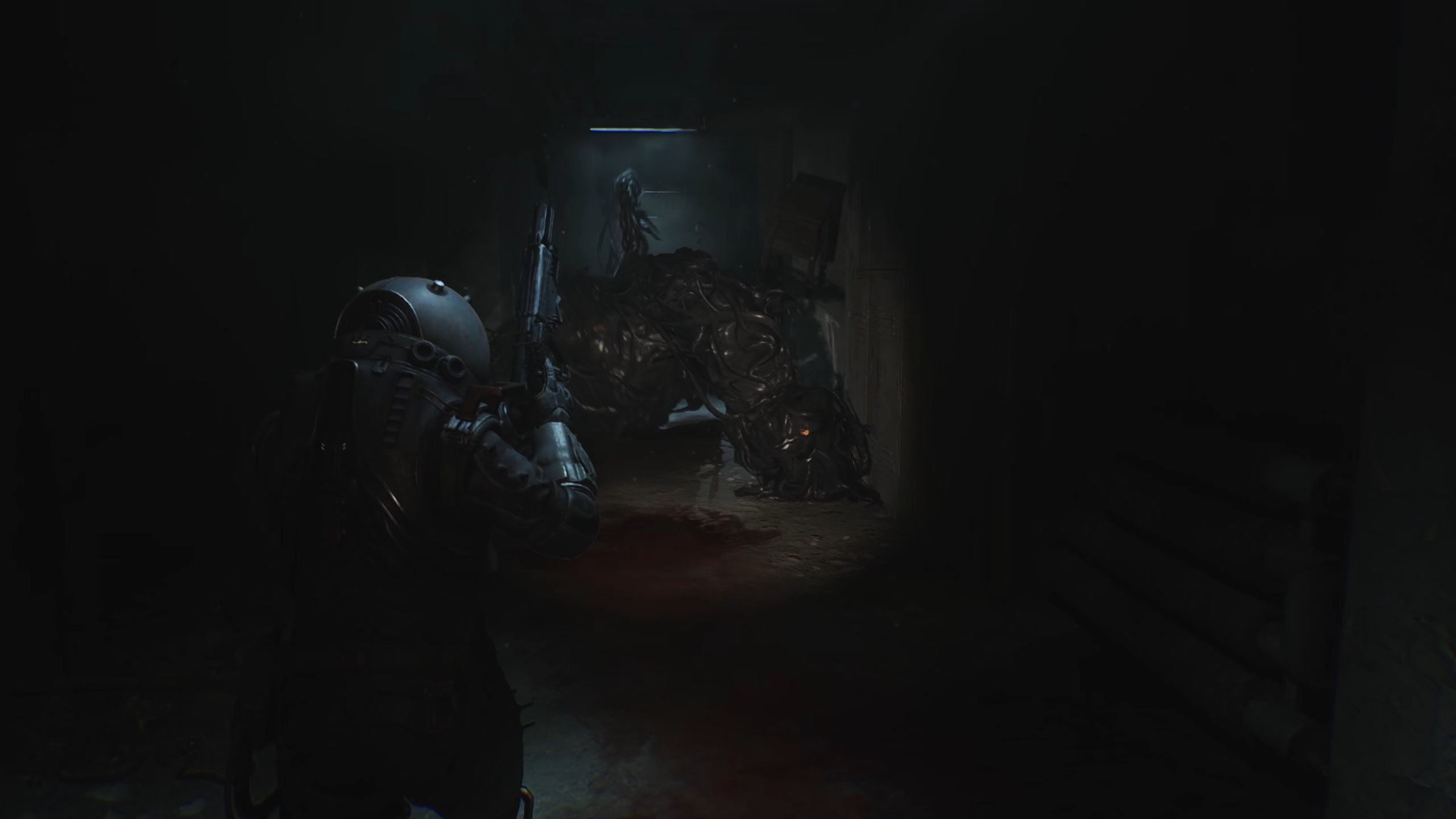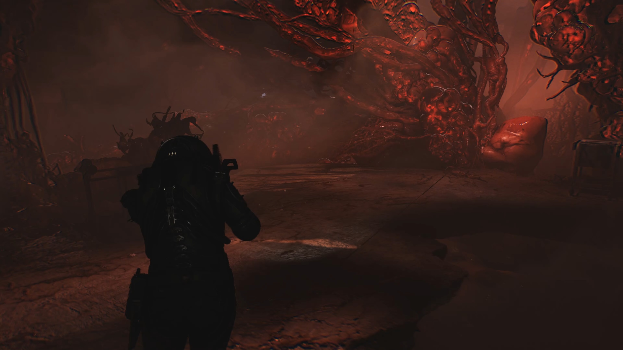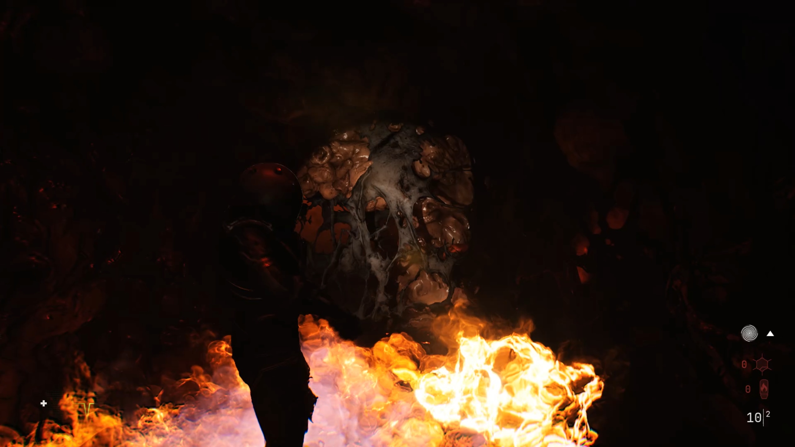 Enfoncez-vous dans les tunnels pour déclencher un nouveau combat de boss. Comme vous l’aurez compris, ce boss combine les caractéristiques des deux précédents, y compris leurs points faibles. Utilisez vos armes inflammables et les éléments environnants pour rendre le monstre vulnérable et exposer ses points faibles sous forme d’excroissances. Une fois exposées, tirez dessus pour le vaincre. Servez-vous des munitions à proximité pour vous ravitailler et des noyaux pour reconstituer les éléments inflammables. Après le combat, continuez d’avancer pour rejoindre la station.