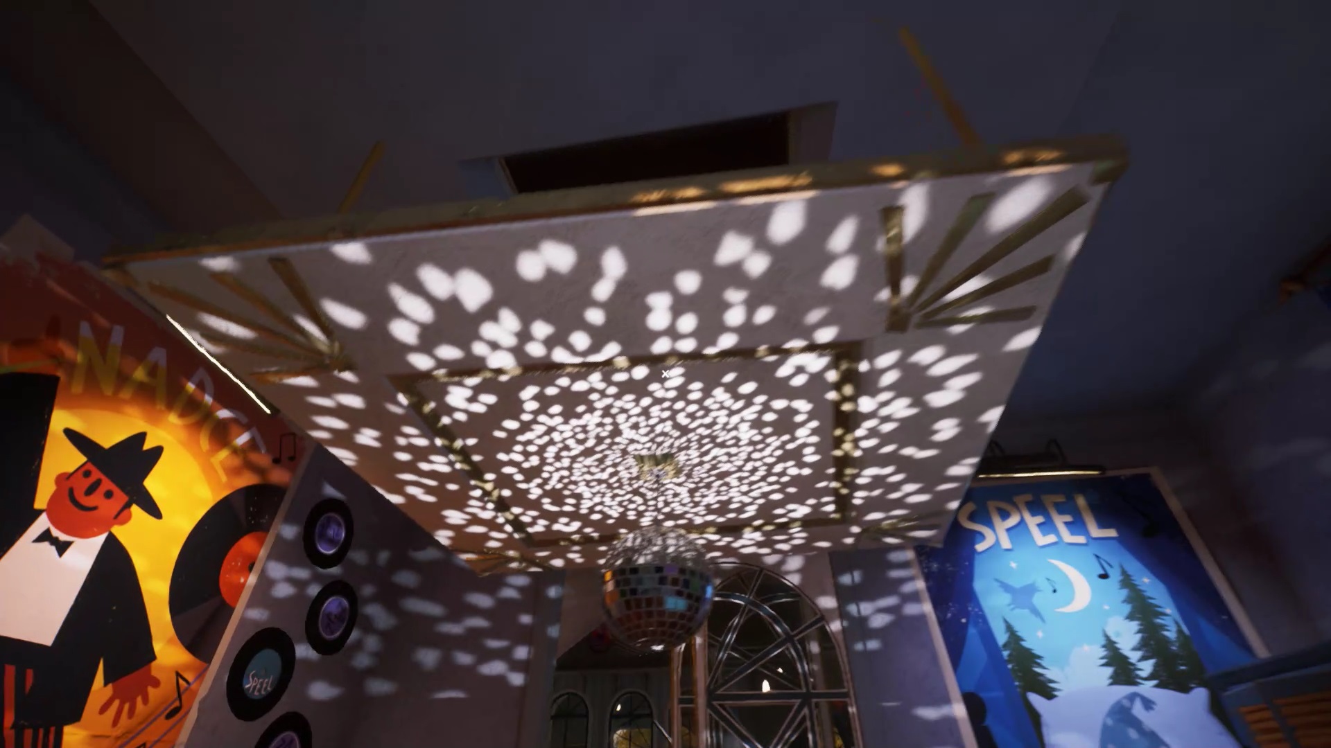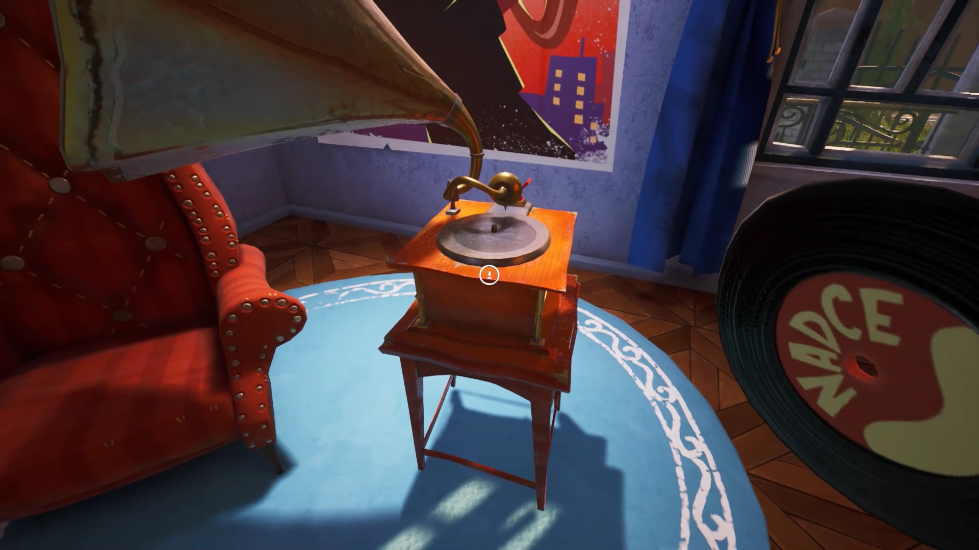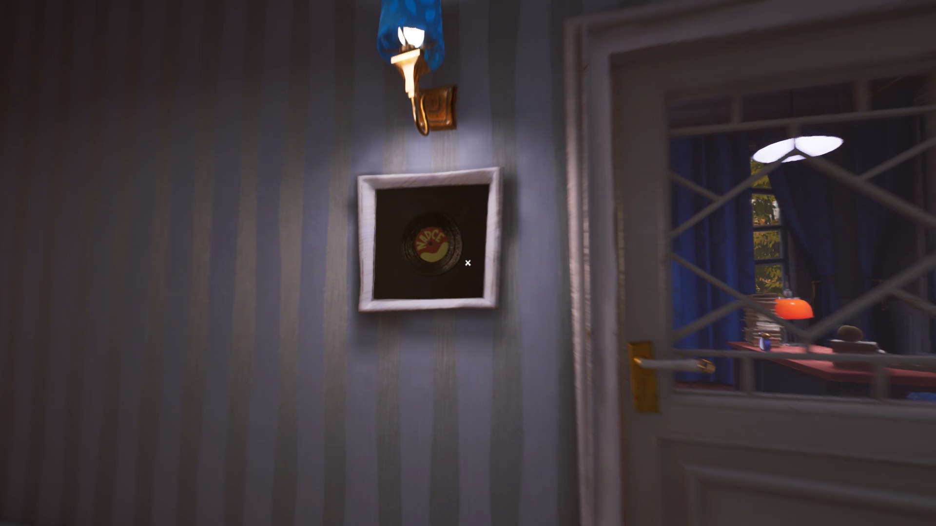 Montez les escaliers et dirigez-vous sur la droite pour entrer dans une pièce. Vous trouvez un présentoir à trophée vide. Vous devez retrouver les 5 trophées et les positionner dans l’ordre du tableau sur la droite. Sortez de la salle. Sur le mur face à l’escalier, vous trouvez un vinyle dans un tableau. Utilisez votre pied-de-biche pour casser le tableau. Récupérez le vinyle et descendez au rez-de-chaussée.